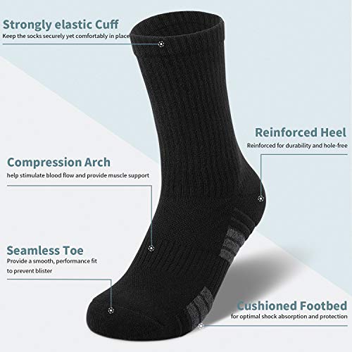 coskefy Cotton Sports Socks Cushioned Running Socks Trainer Socks for Men Women Walking Hiking Trekking Socks, 6 Pairs x black