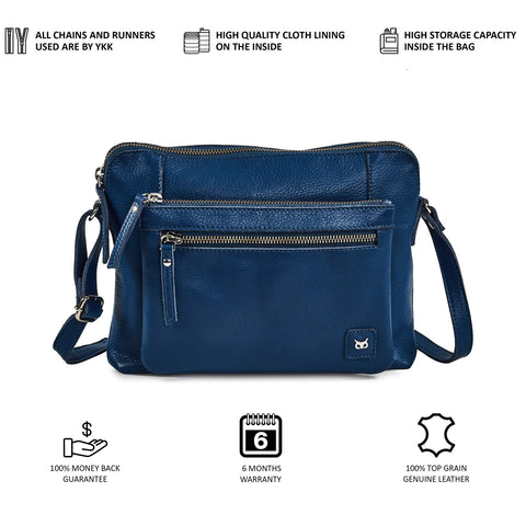 Accessories Small Soft Pebbled Real Leather Crossbody Handbags Purses Triple Zip Premium Sling Crossover Shoulder Bag for Women Gift (Cognac Nappa)