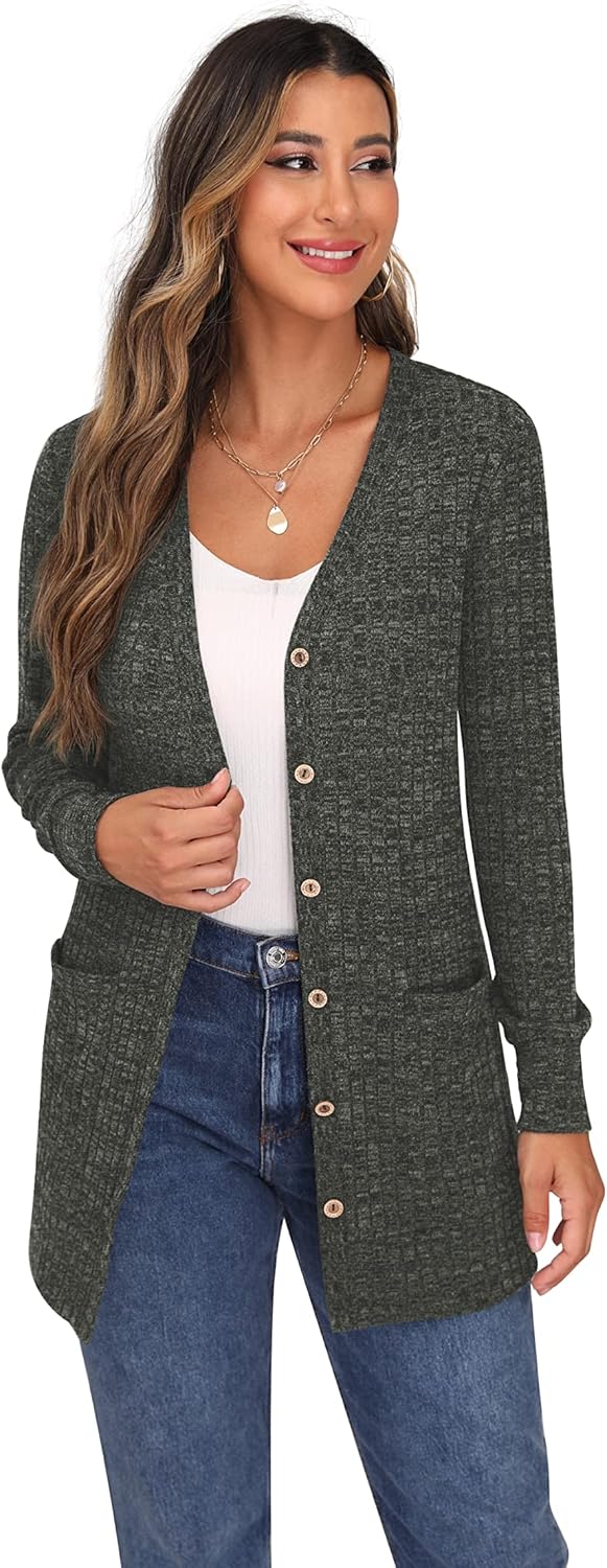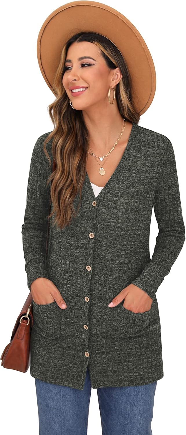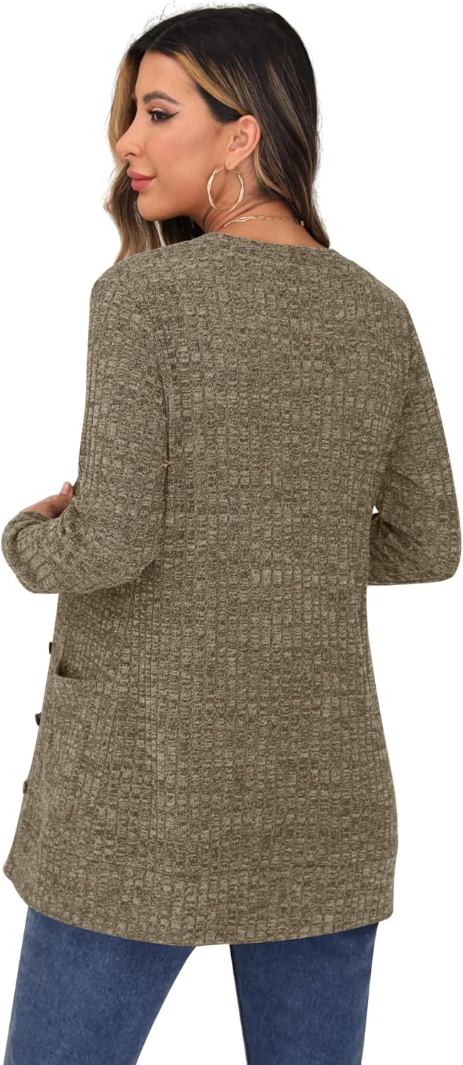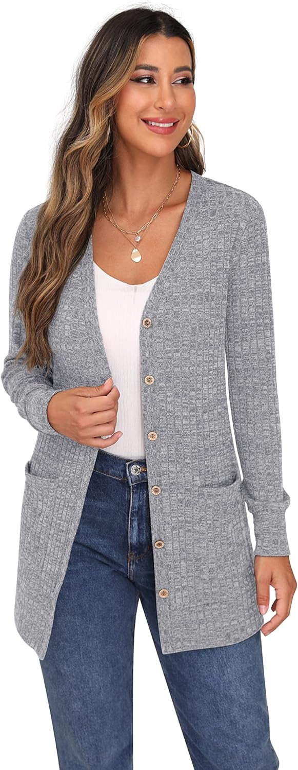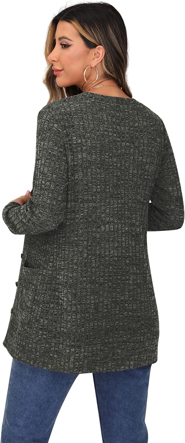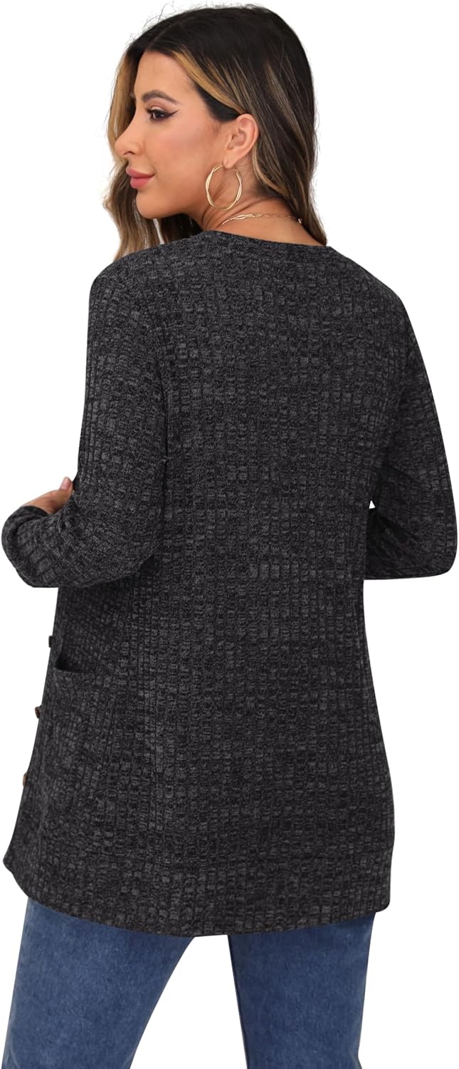 Cardigan Long Sleeve Open Front Cardigans Button Down V Neck Ribbed Knit Lightweight Outerwear with Pocket