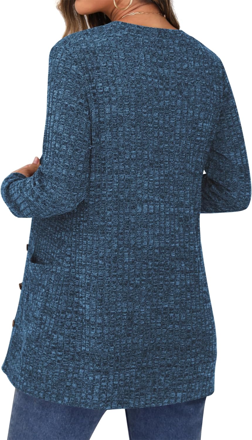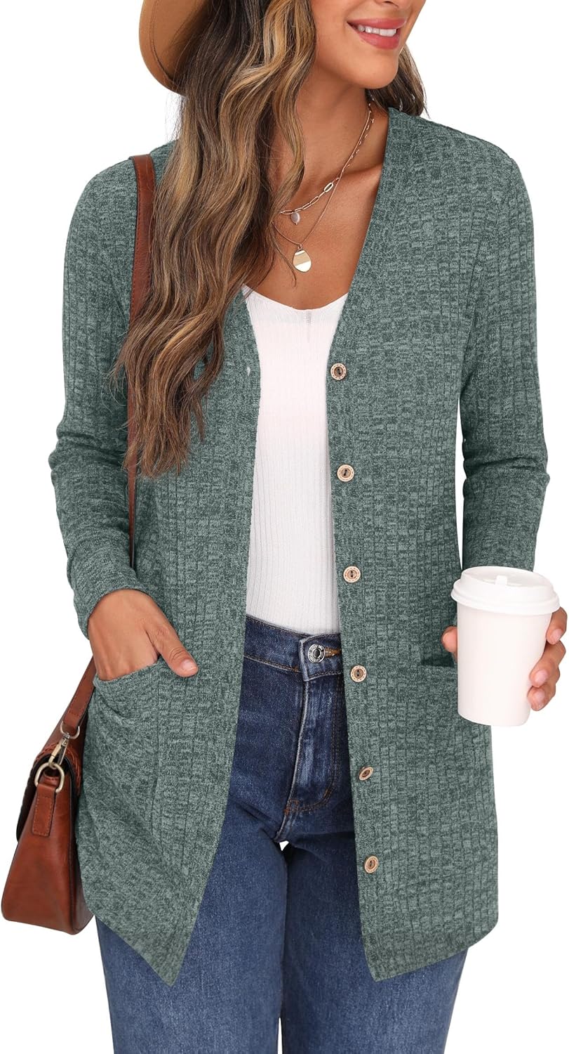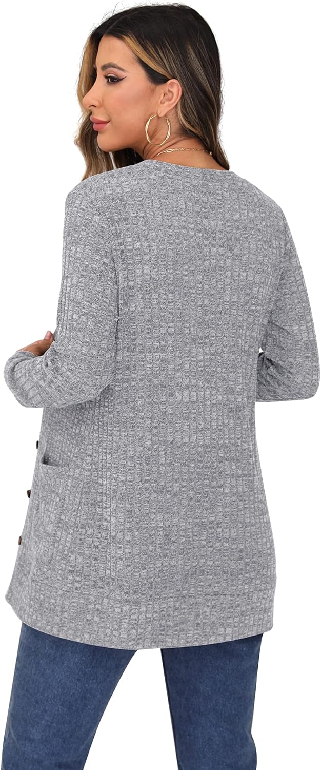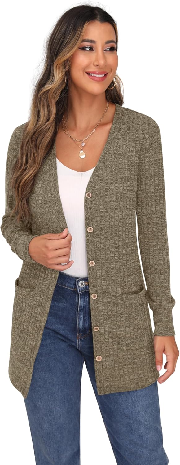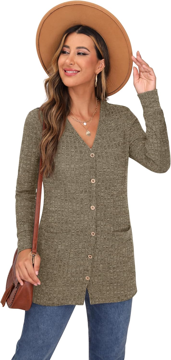 Cardigan Long Sleeve Open Front Cardigans Button Down V Neck Ribbed Knit Lightweight Outerwear with Pocket