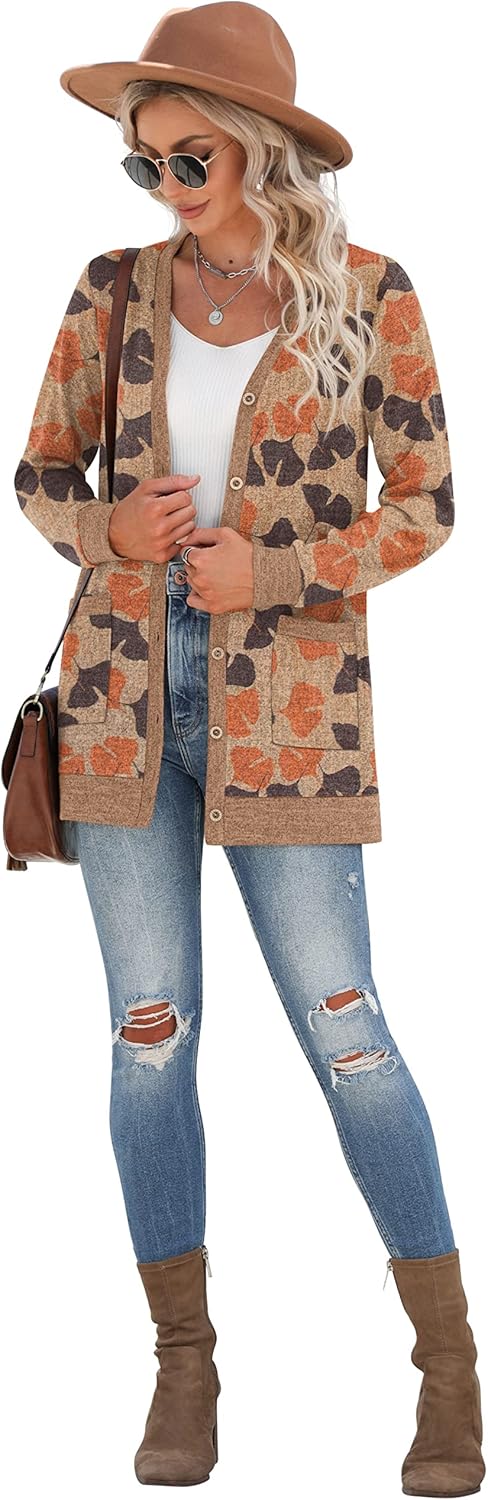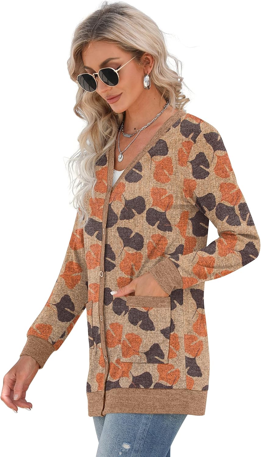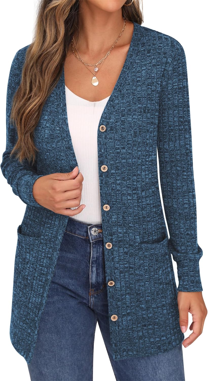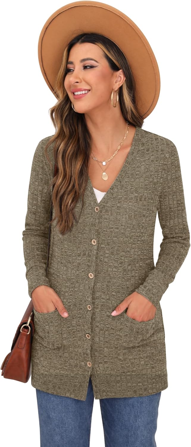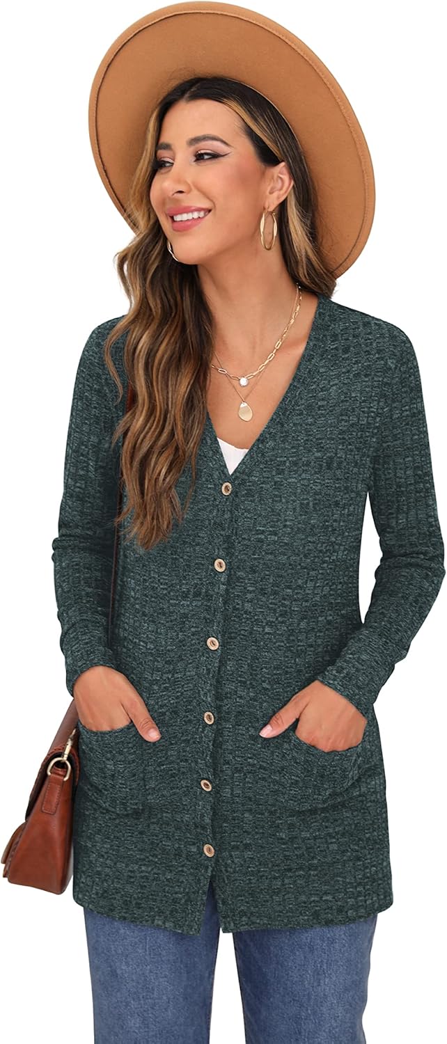 Cardigan Long Sleeve Open Front Cardigans Button Down V Neck Ribbed Knit Lightweight Outerwear with Pocket