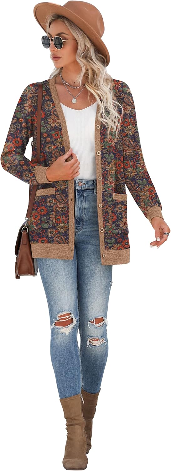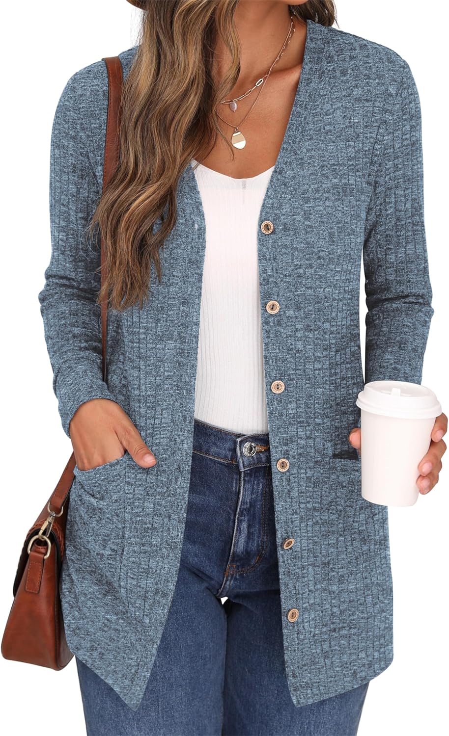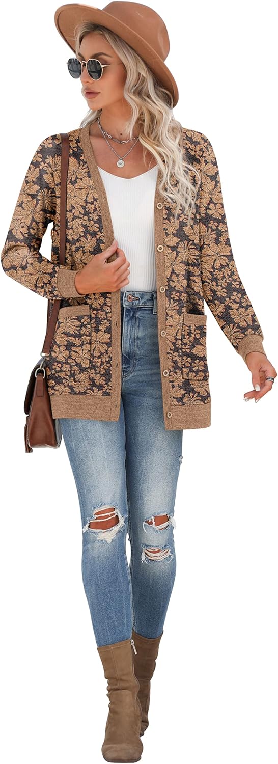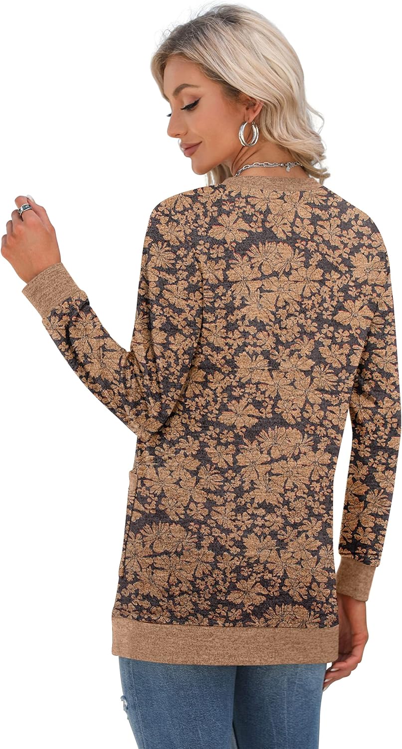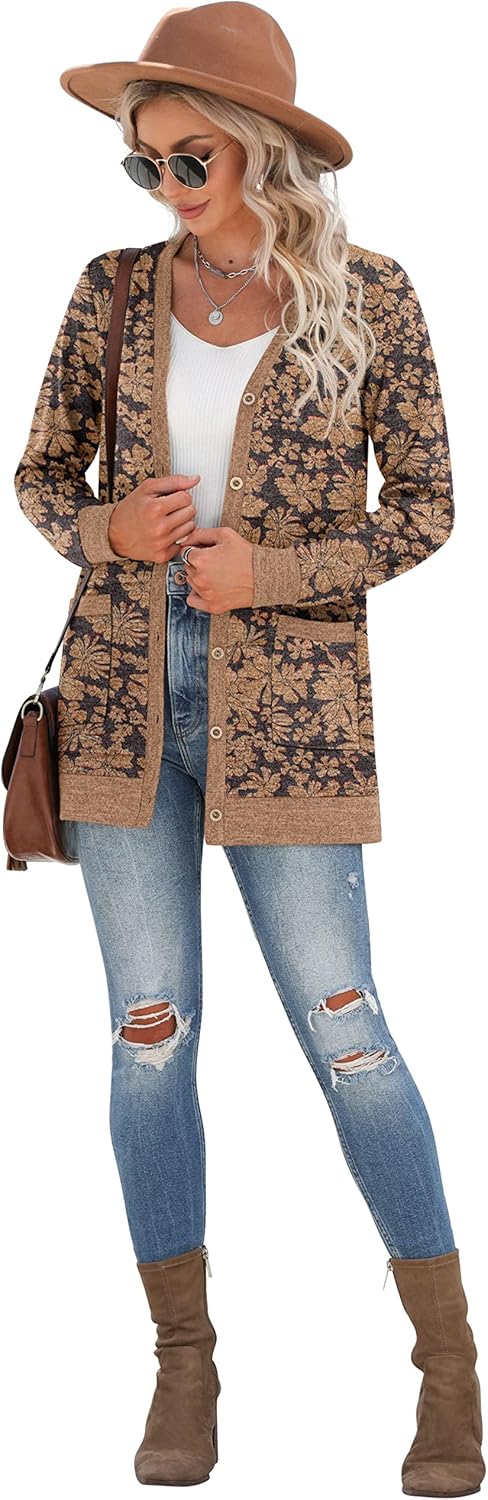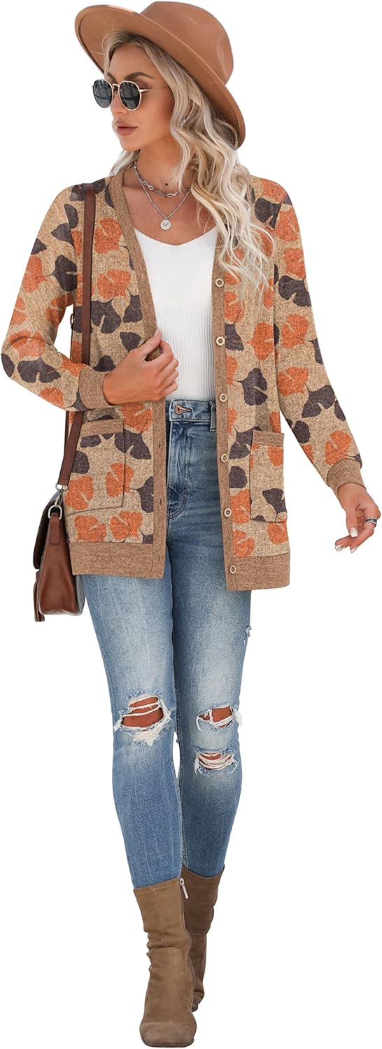 Cardigan Long Sleeve Open Front Cardigans Button Down V Neck Ribbed Knit Lightweight Outerwear with Pocket