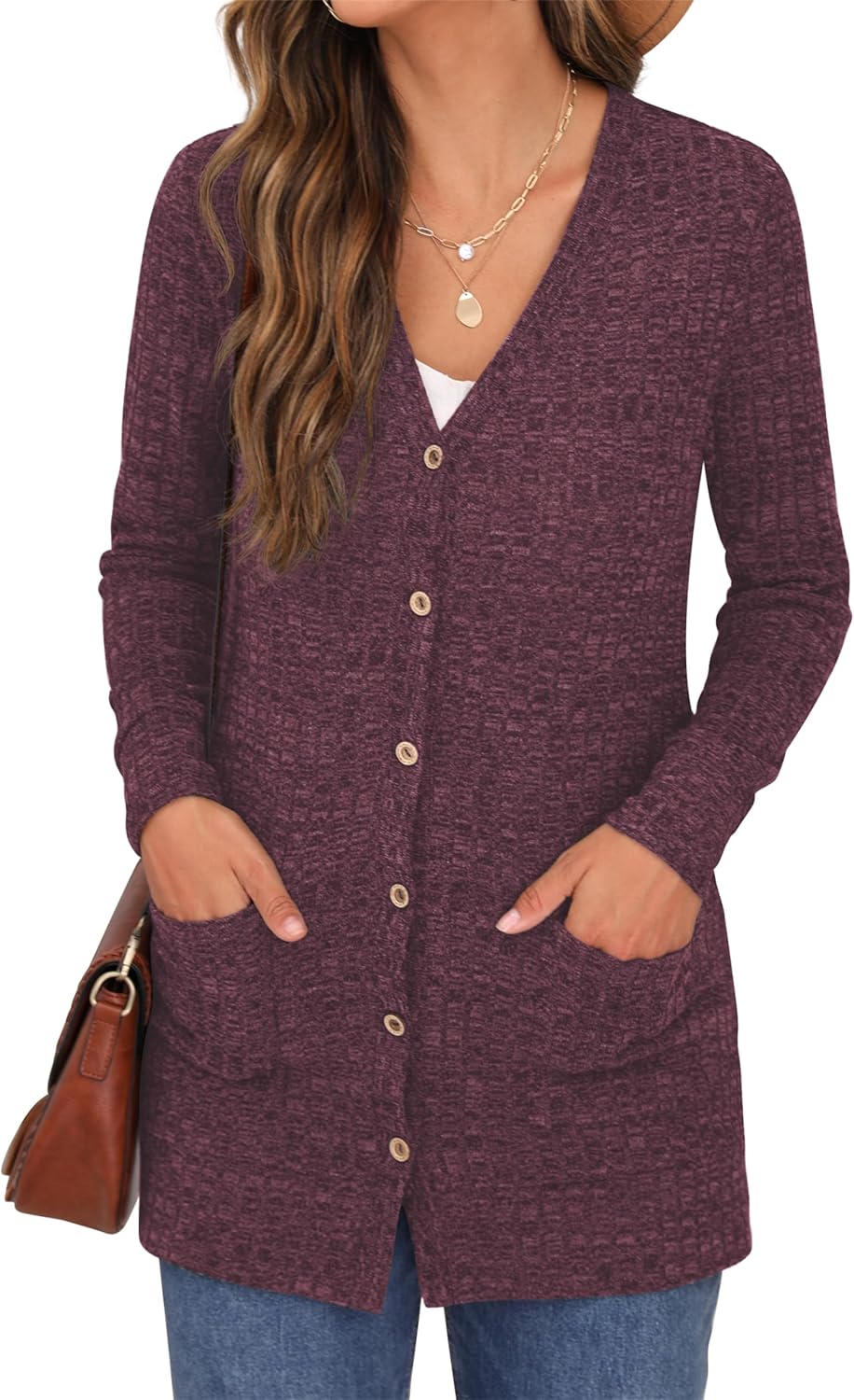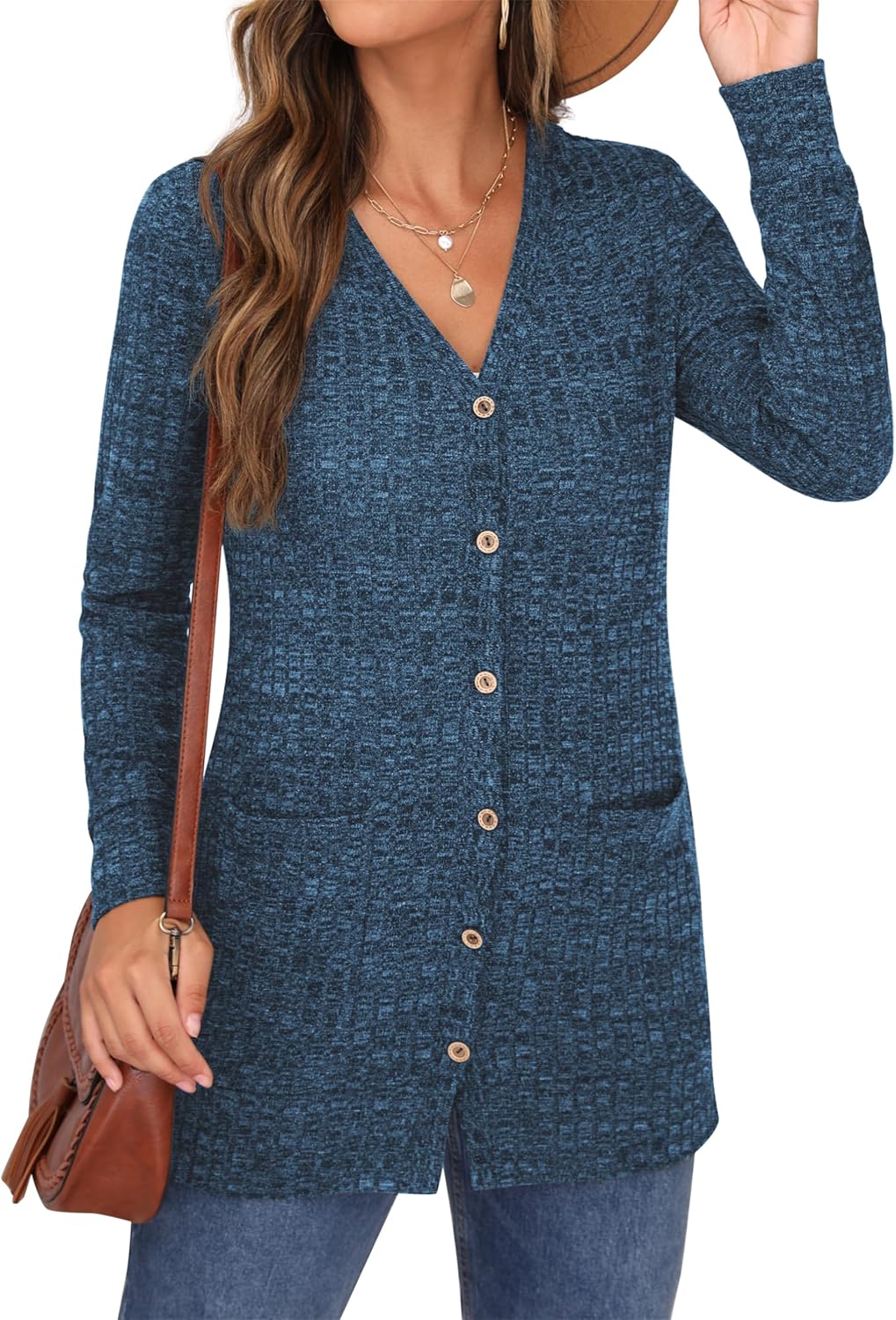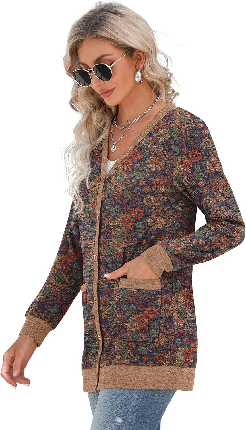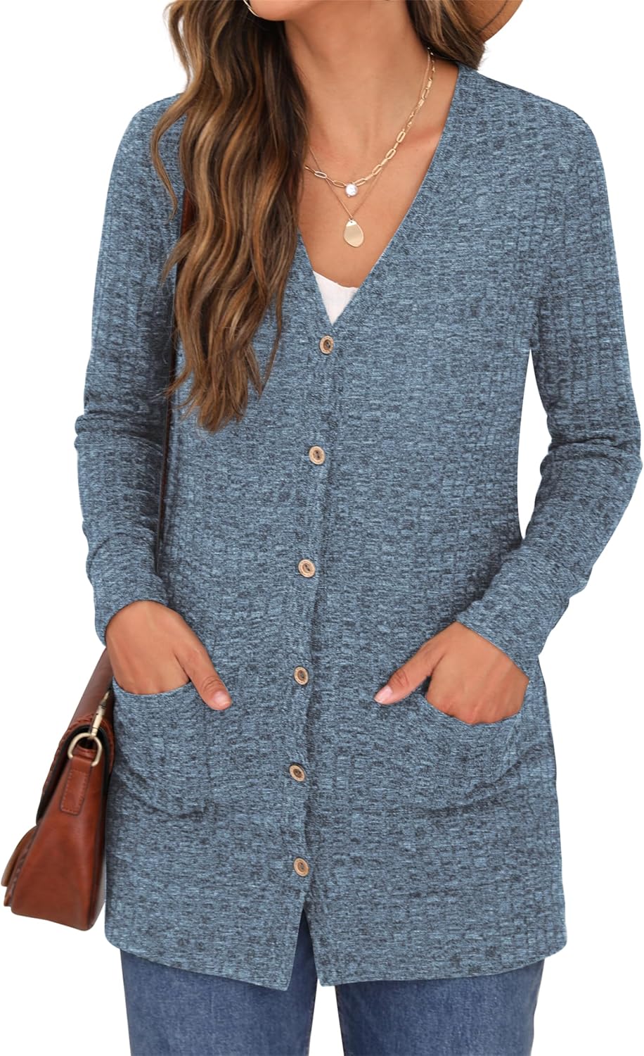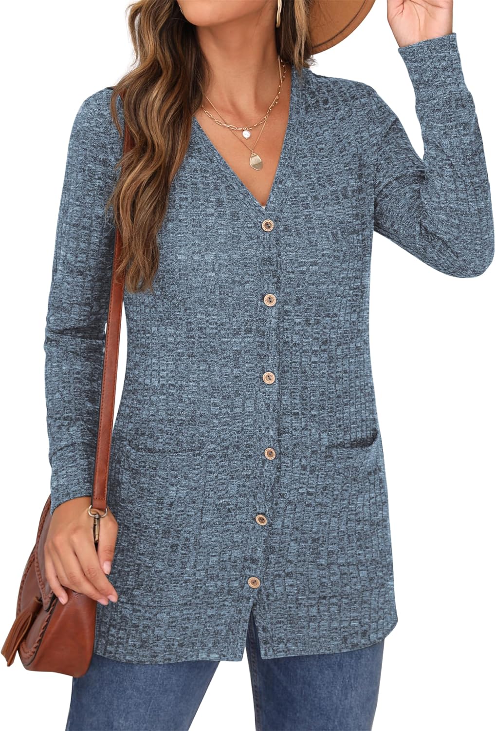 Cardigan Long Sleeve Open Front Cardigans Button Down V Neck Ribbed Knit Lightweight Outerwear with Pocket