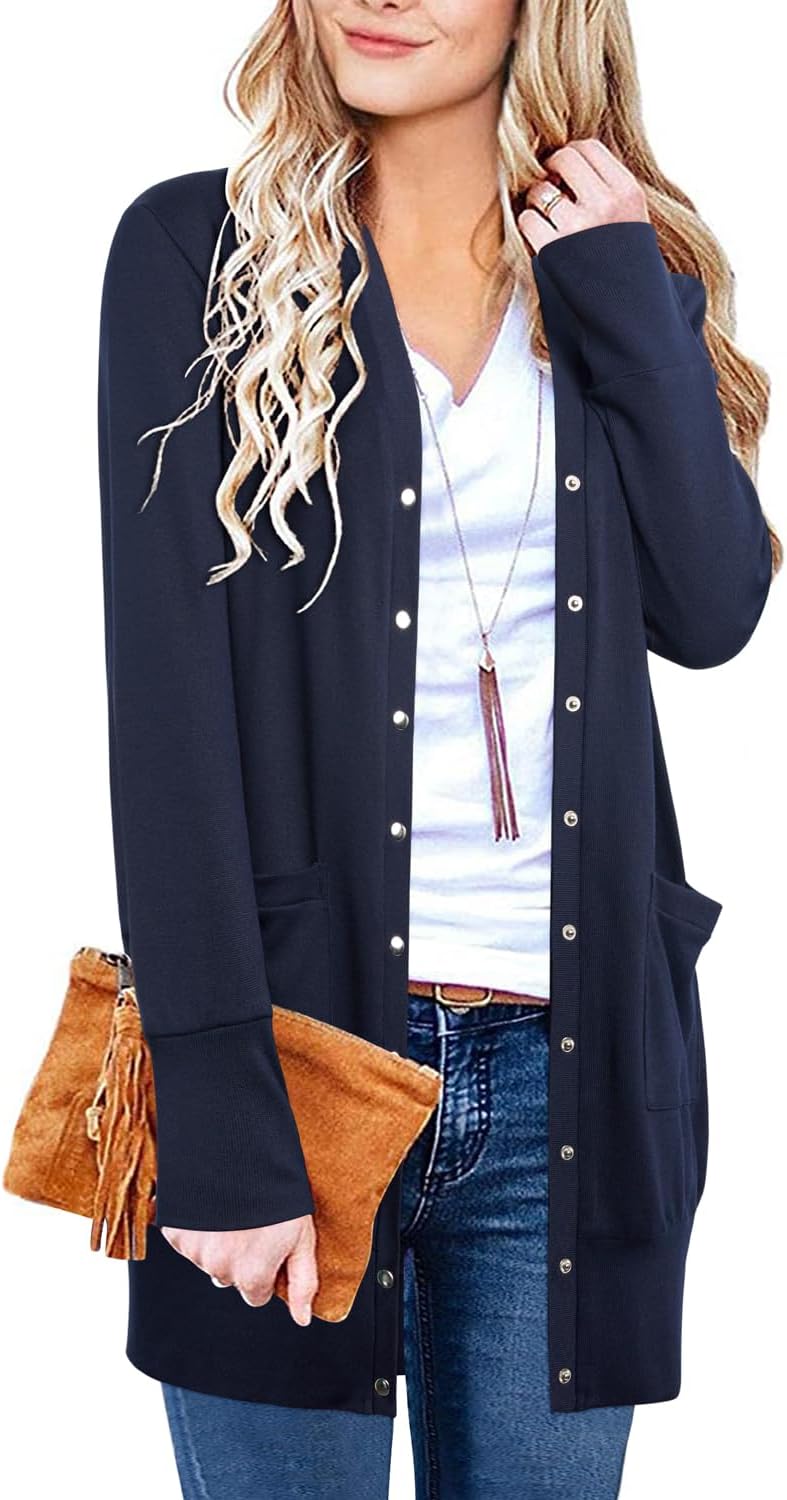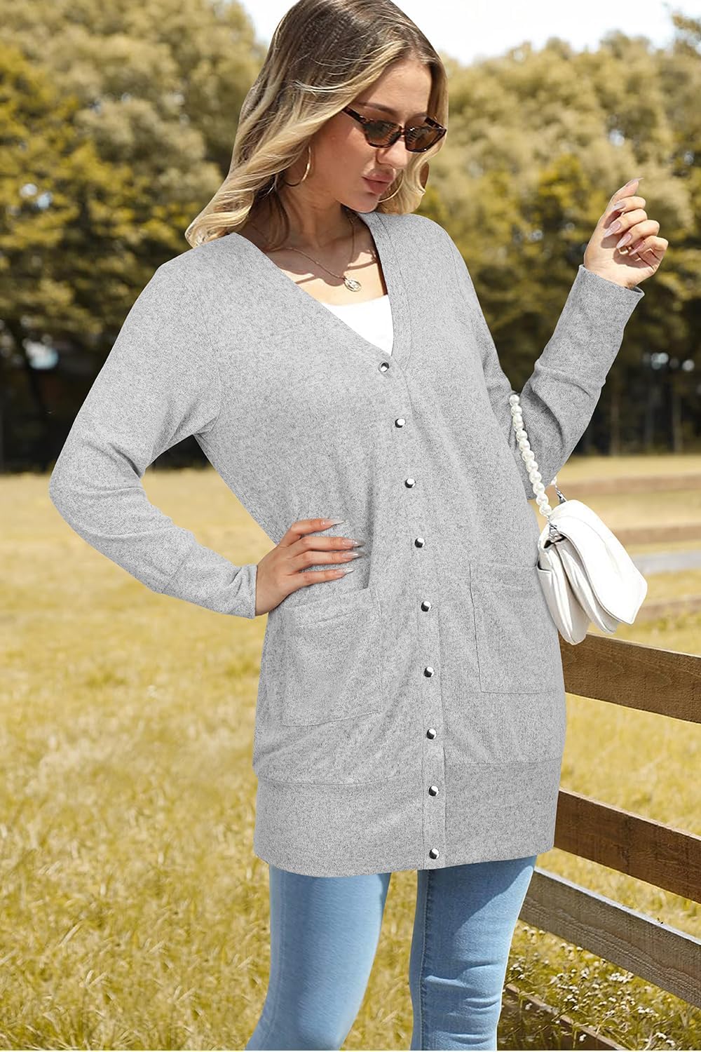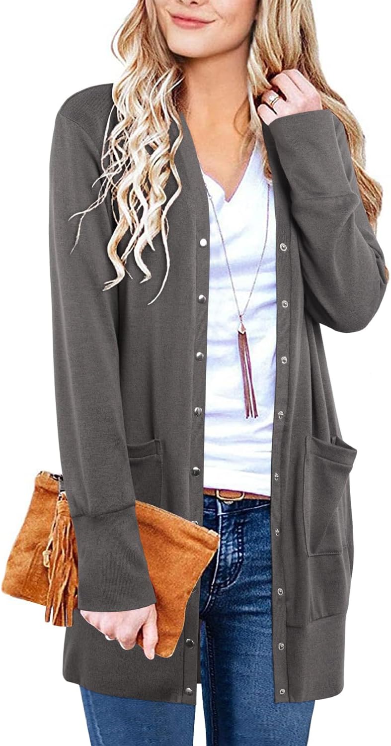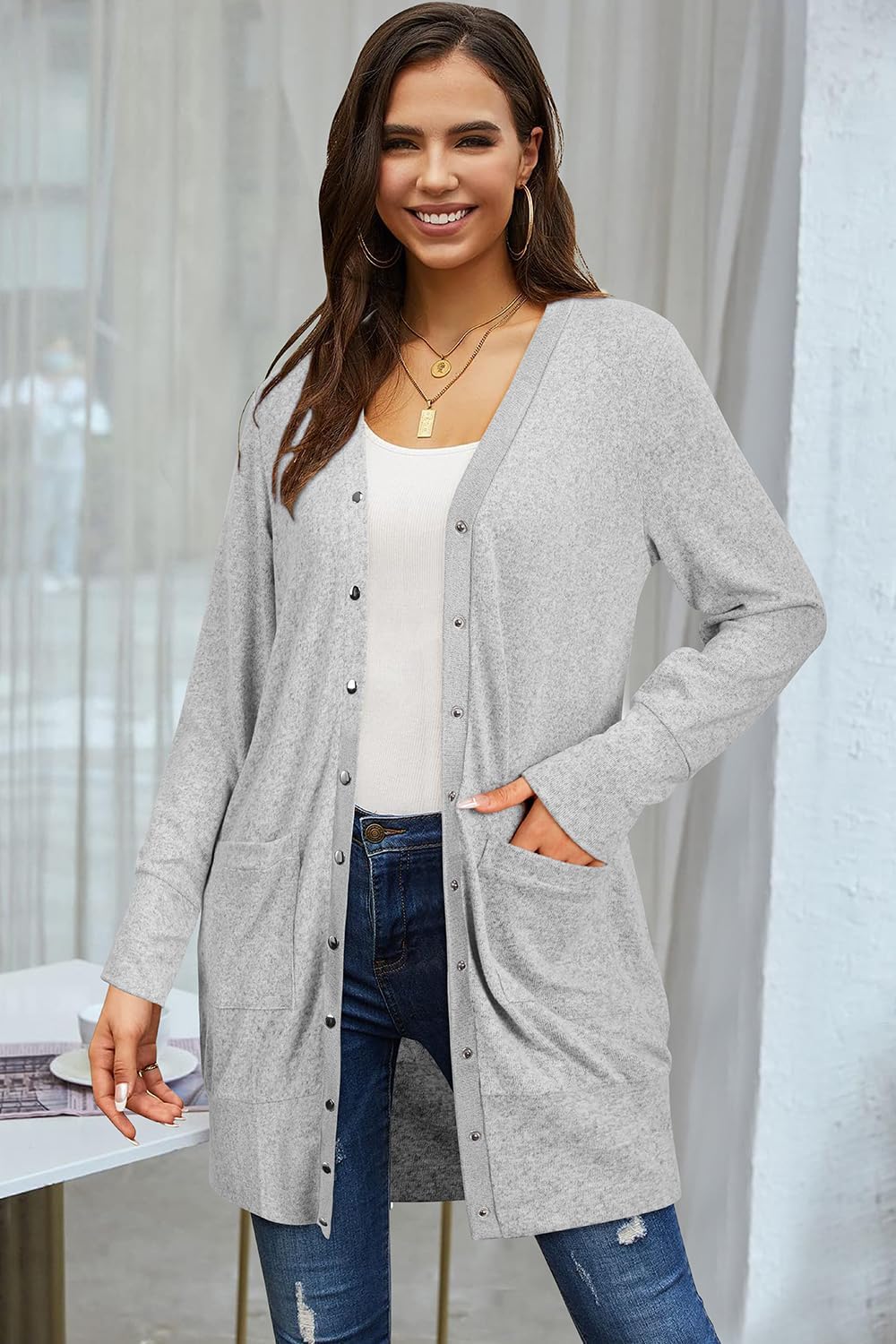 Cardigans for Women UK Fall Ladies Long Cardigan Button Down Lightweight Knit Cardigan with Pocket