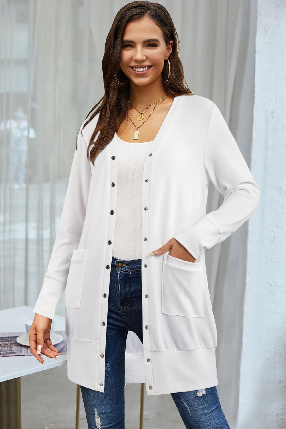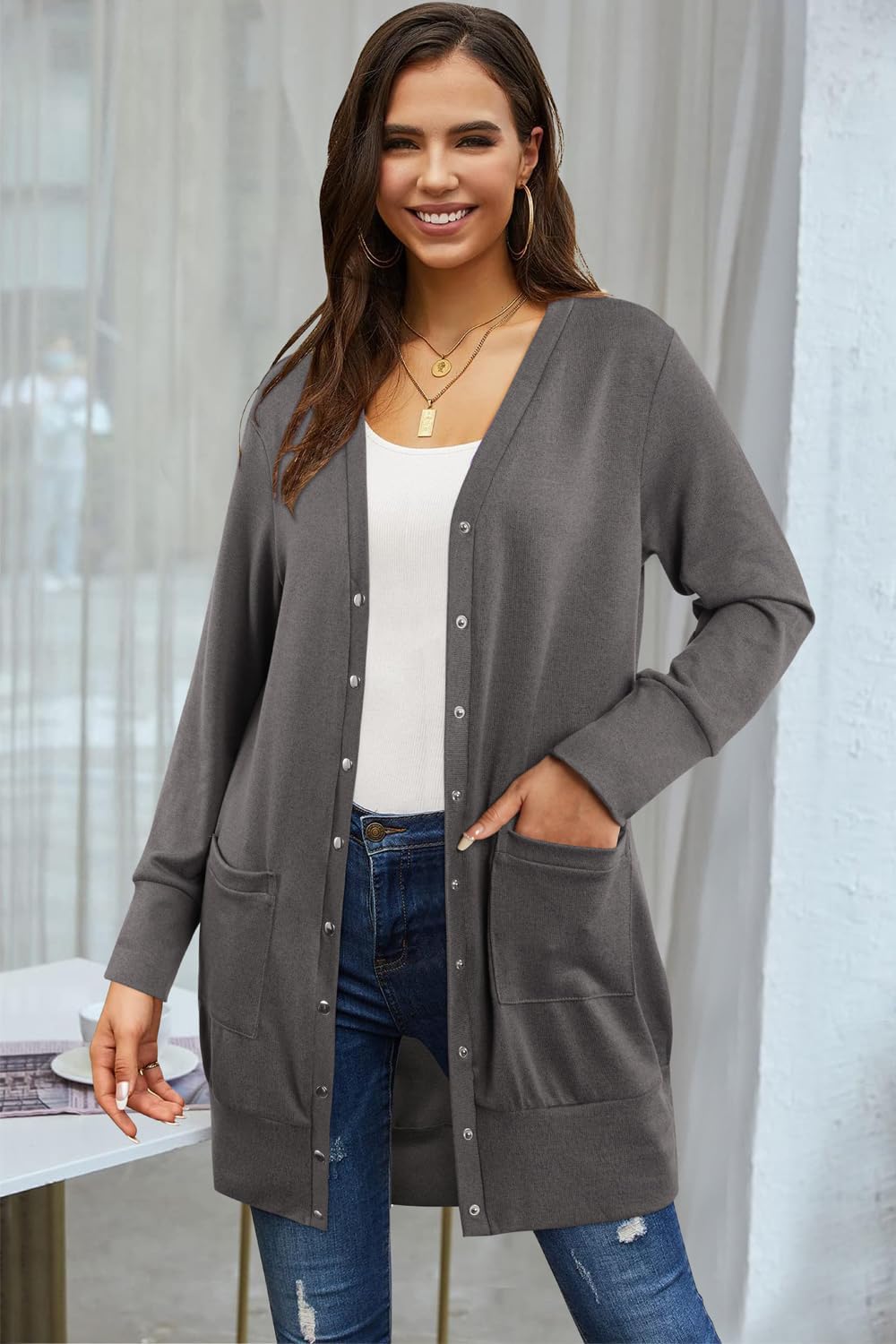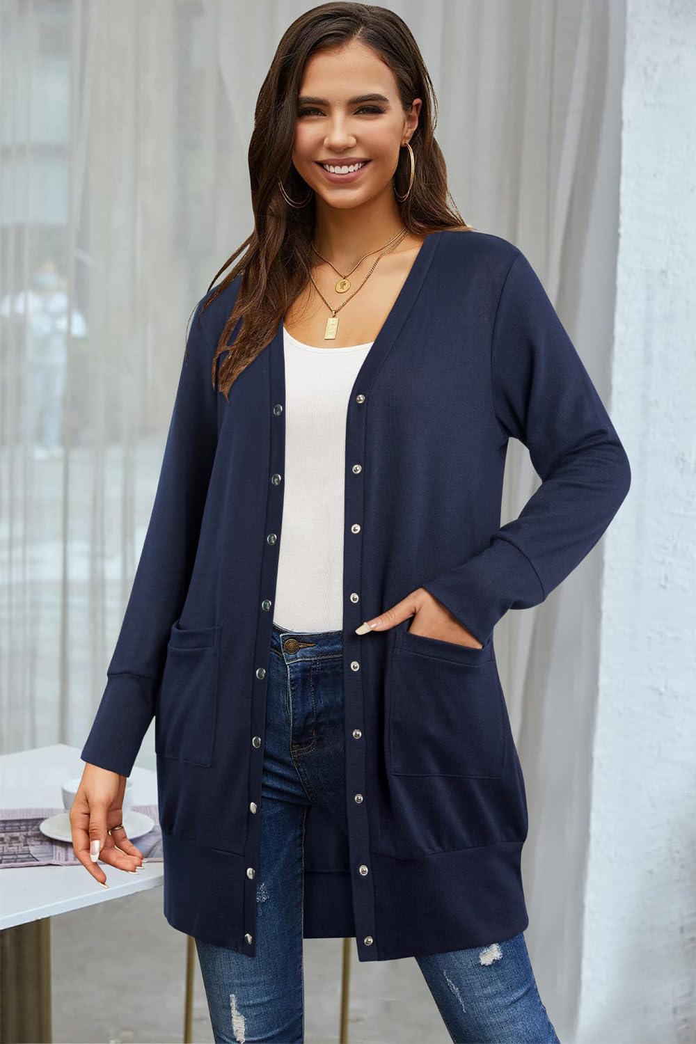 Cardigans for Women UK Fall Ladies Long Cardigan Button Down Lightweight Knit Cardigan with Pocket