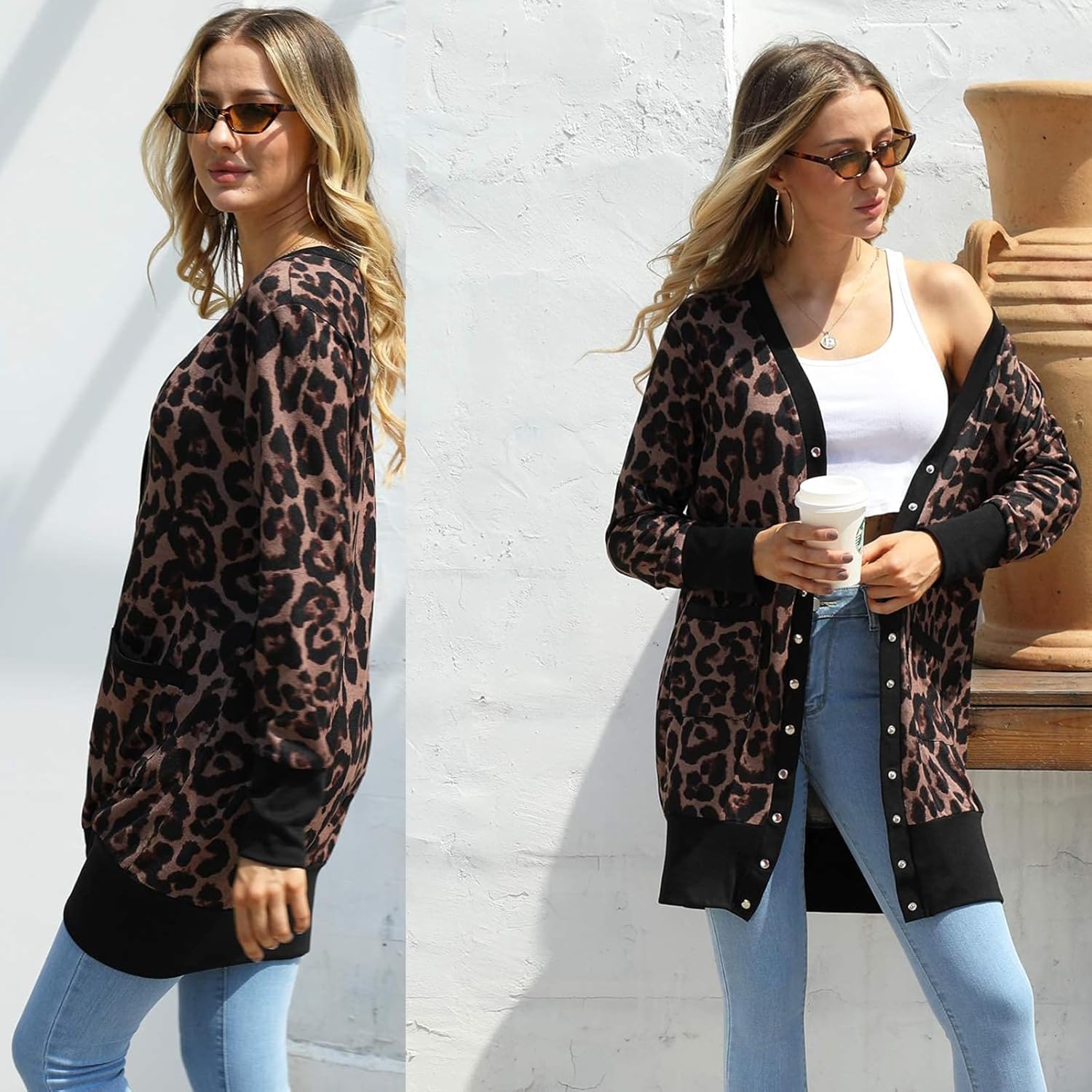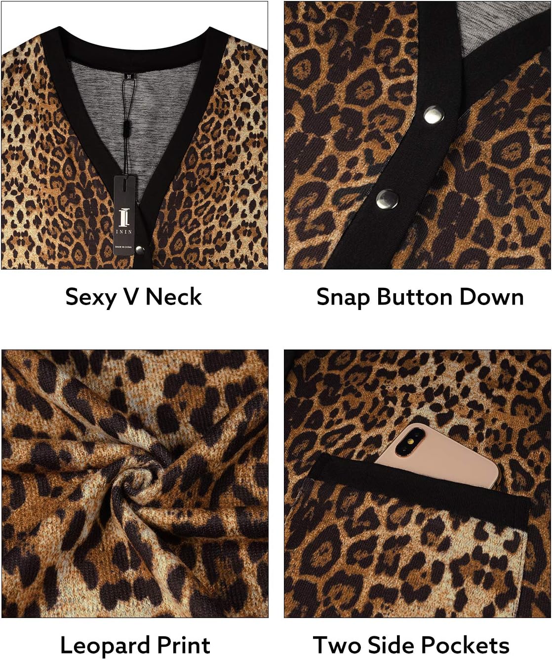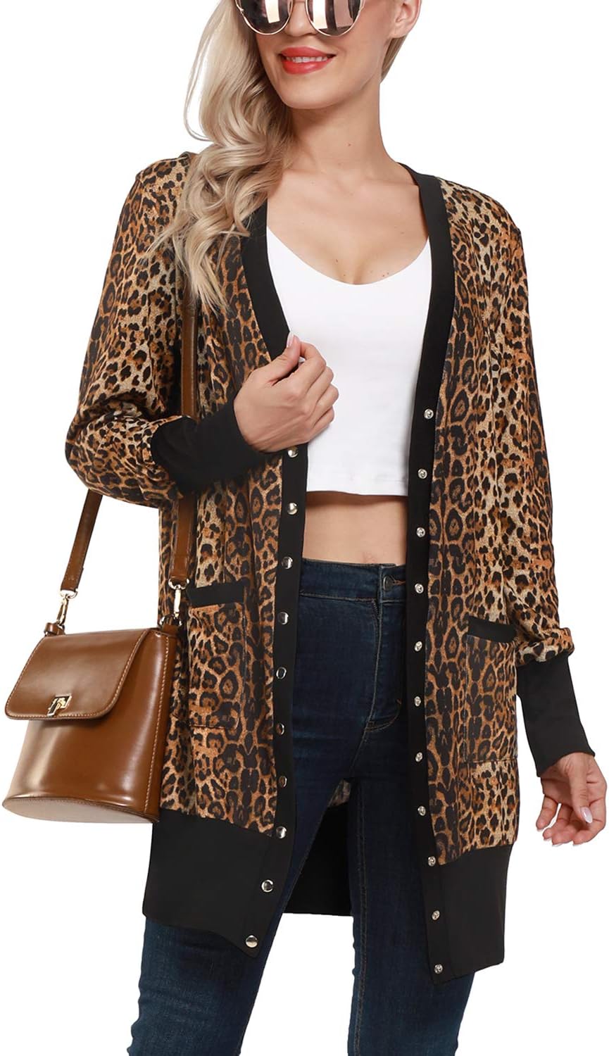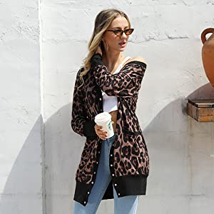 Solid colours and leopard print design is gorgeous and bold, v neck, snap button is easy for you to switch between coat and cardigan, making you shine in the crowd. Gift idea for friends and family