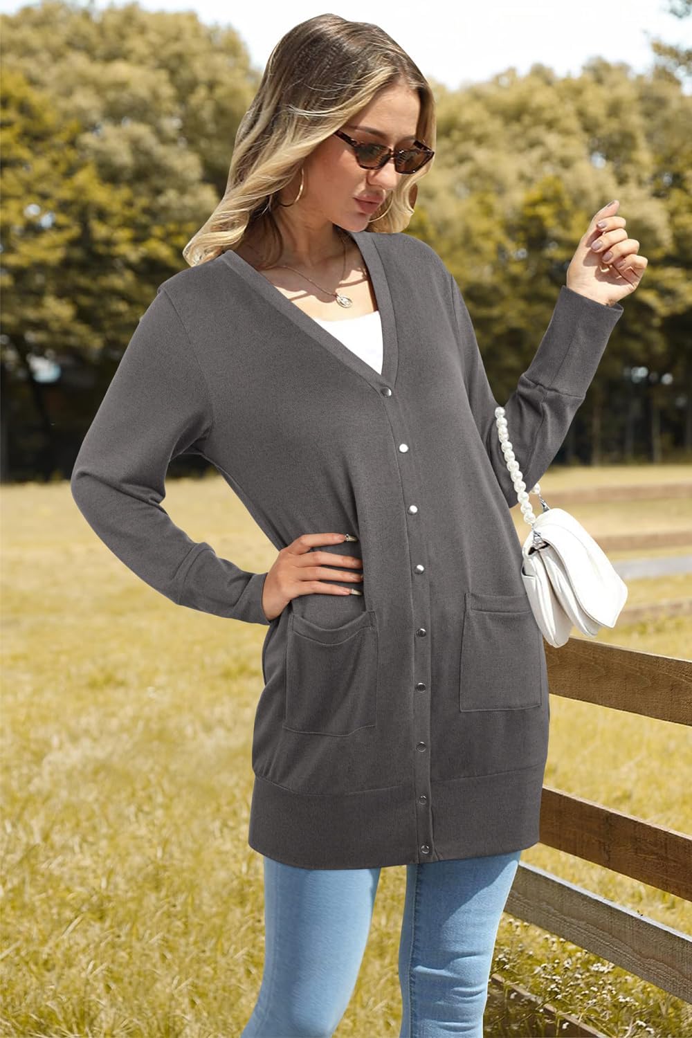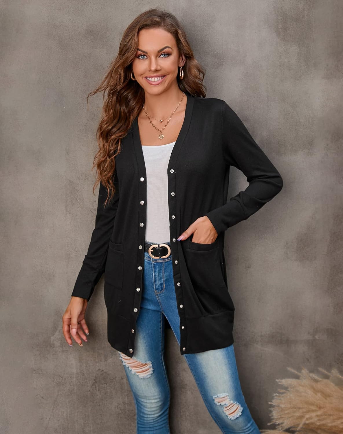 Cardigans for Women UK Fall Ladies Long Cardigan Button Down Lightweight Knit Cardigan with Pocket - S / Black is backordered. It will be shipped when back in stock.