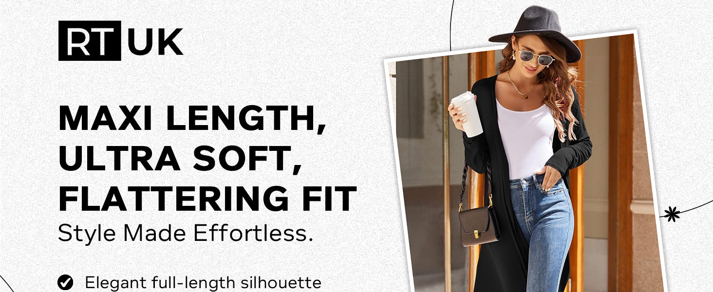LIGHTWEIGHT & SOFT - Skin friendly cardigans for women uk, with long sleeves and an open front, Soft and comfortable fabric that drapes beautifully in sizes 8/10, 12/14, 16/18, 20/22 and 24/26.