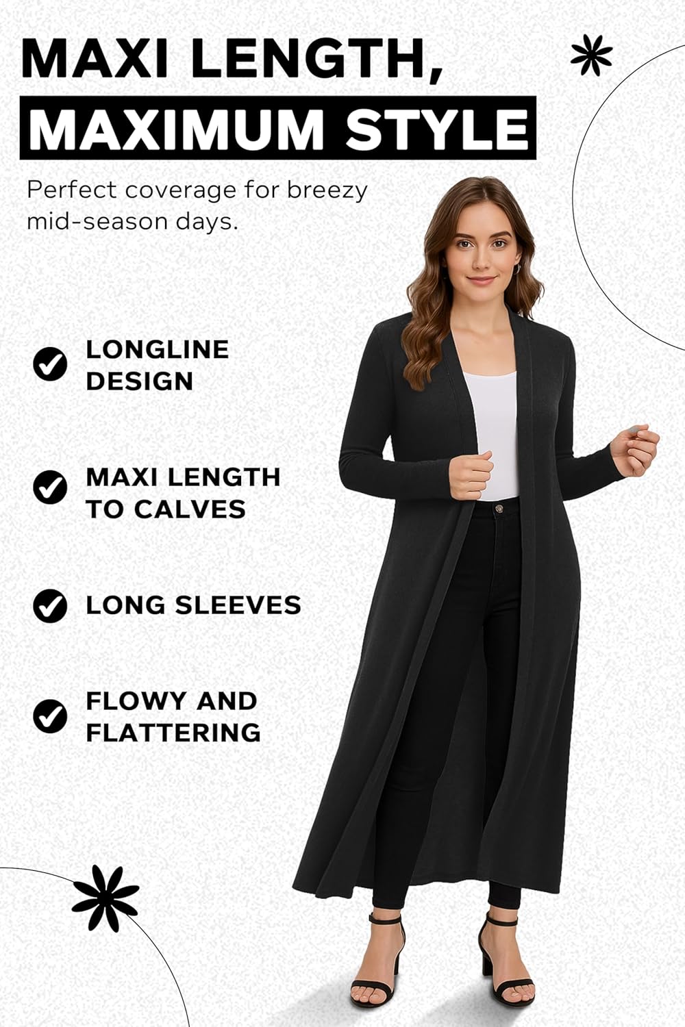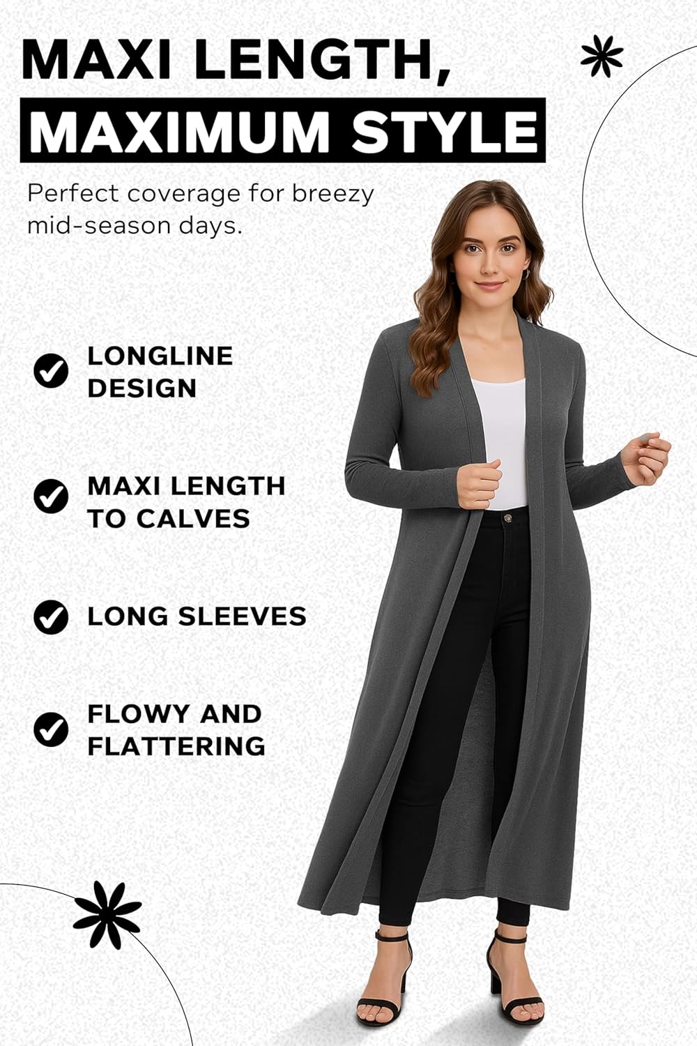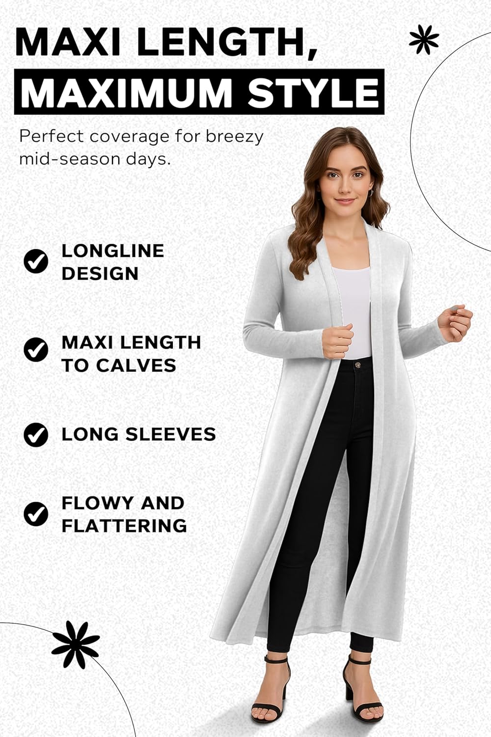 LOVELY & SOFT FABRIC - The perfect coatigan for women uk for all seasons, made from a soft, lightweight fabric. Everyone loves a good white cardigan or a long line black cardigan to hang up in the wardrobe.