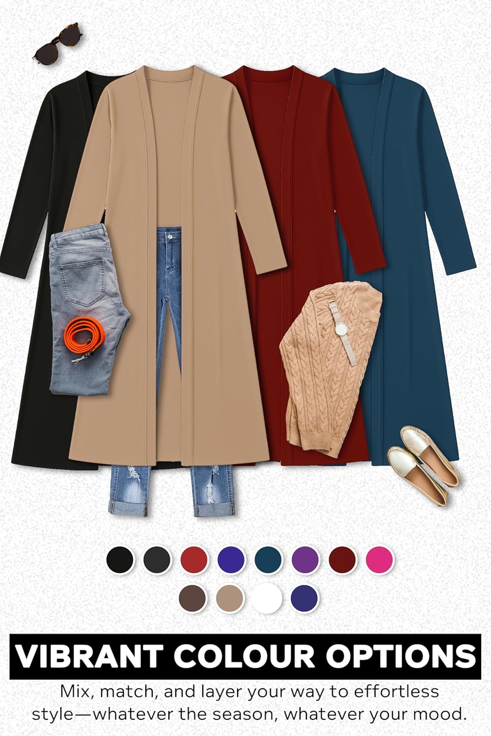 COMFORTABLE & AVAILABLE IN MANY COLOURS - Available with the finest shades of grey, green, navy blue, brown, white, red, pink, burgundy, khaki or teal. Long black cardigans for women uk will look great with a pair of jeans and your favourite shoes.