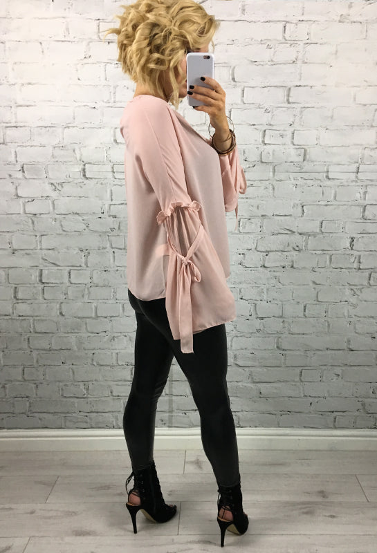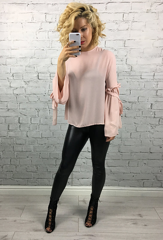 Our Saskia top is so ridiculously pretty with its bell sleeves and tie detailing. Perfect over jeans and our leather look Serena leggings. Perfect for date night or drinks with the girls.  - Bell Sleeves - Tie Detailing - Round Neck - Fits True To Size.