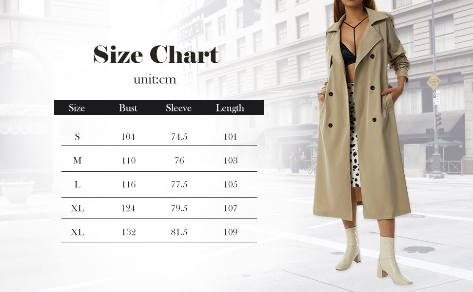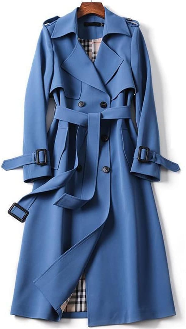 Classic Long Trench Coat Double-Breasted Lapel Long Sleeve Windproof Overcoat with Belt