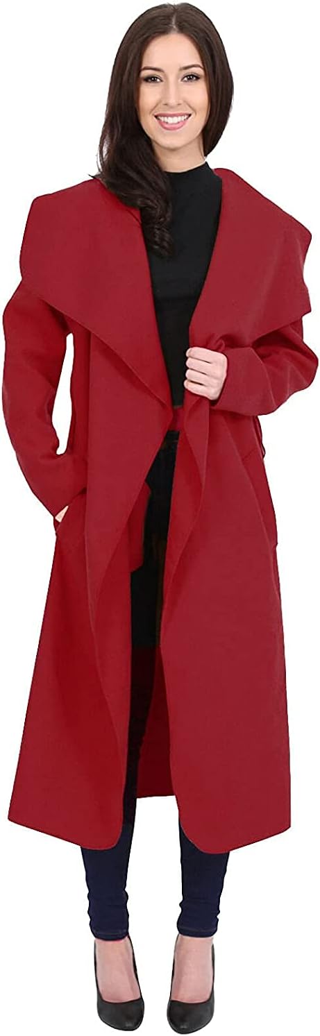 Italian Long Duster Coat Ladies Long Sleeve French Belted Trench Waterfall Jacket | UK One Size 8-14/16-22 |