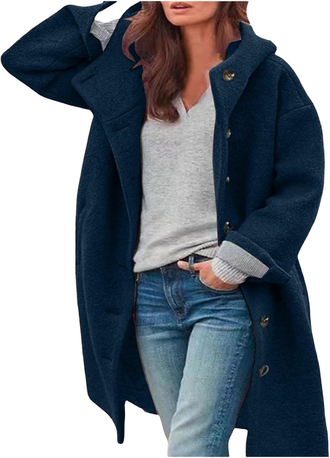 Trench Coats for Women Winter Casual Pea Coat Ladies Casual Loose Fit Jackets Windproof Windbreaker Outwear with Pockets