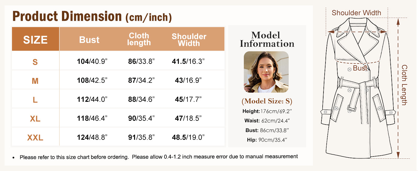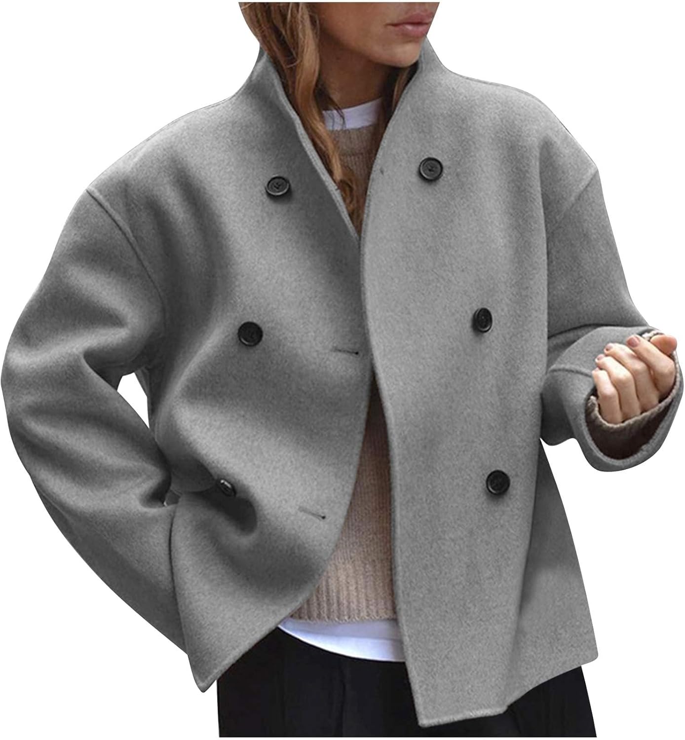Trench Coat Fashion Short Jackets Wool-Blend Casual Button Double Breasted Pea Coat Winter Outerwear Overcoat
