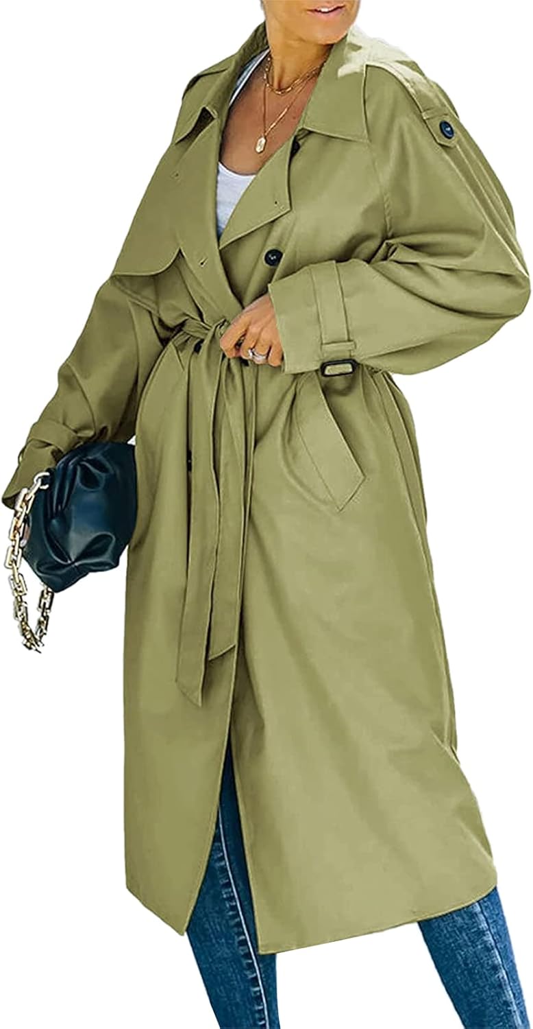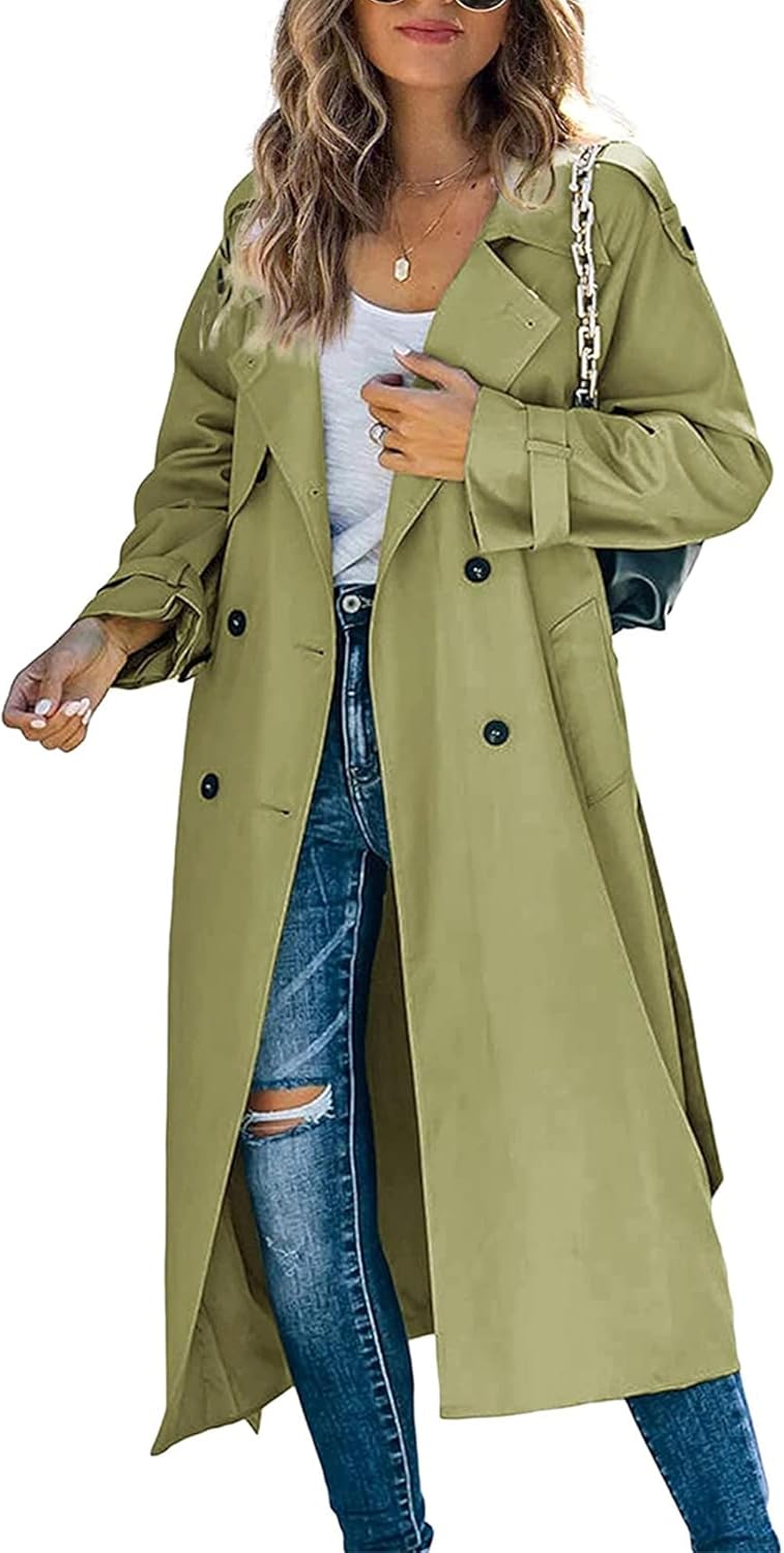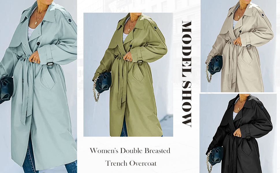 Match: Women's Double Breasted Trench Overcoat Slim Outerwear Coat with Belt, Women's double breasted trench overcoat Slim outerwear coat with belt, easy to wear with shirts, tank tops, dresses, suits, sweaters, leggings, skirts, jeans, heels, boots, sneakers or heels, Make you elegant in autumn and winter. The polyester fabric of this windproof long jacket can also withstand wrinkles, so you can wear it straight to work!