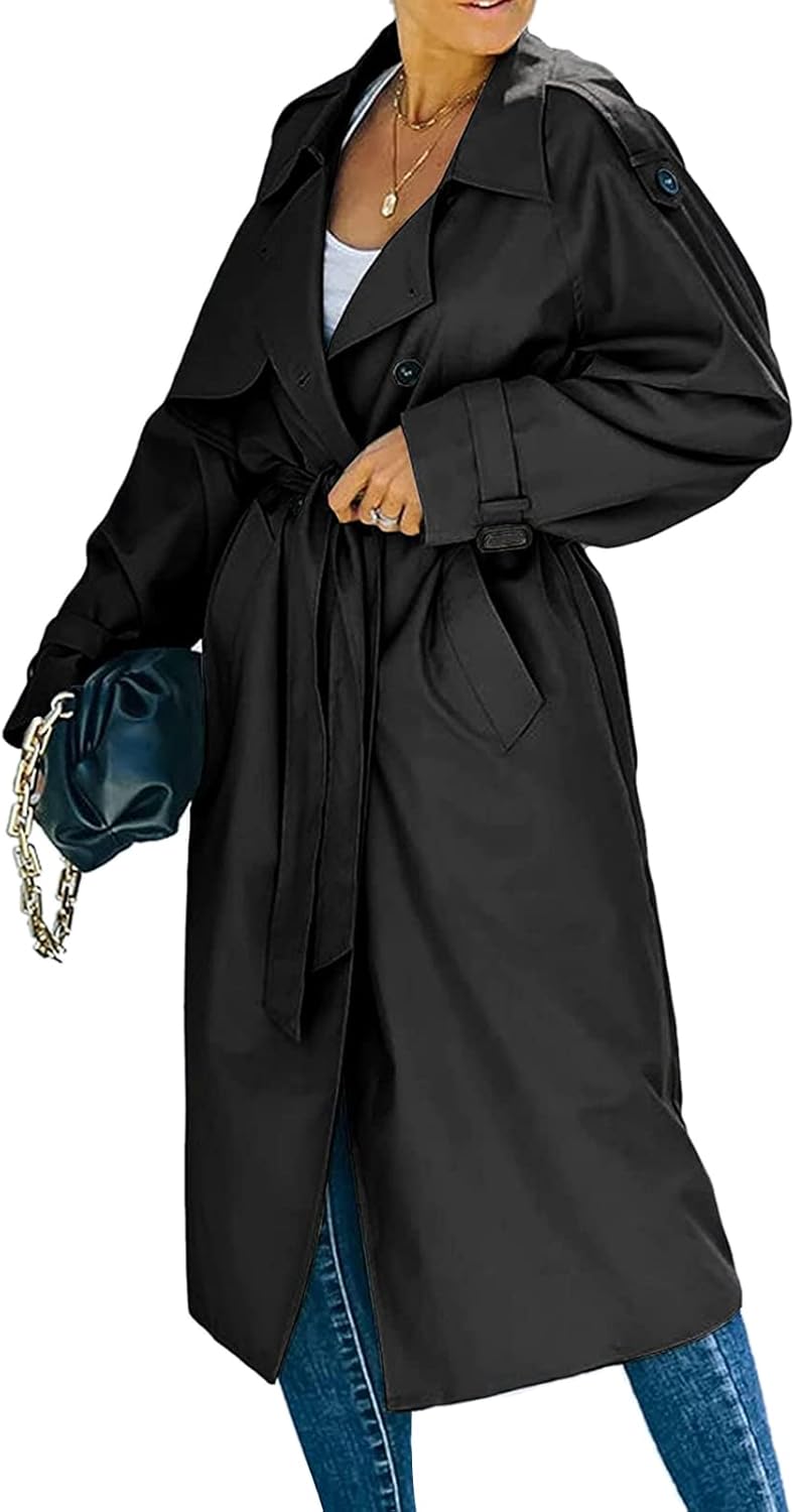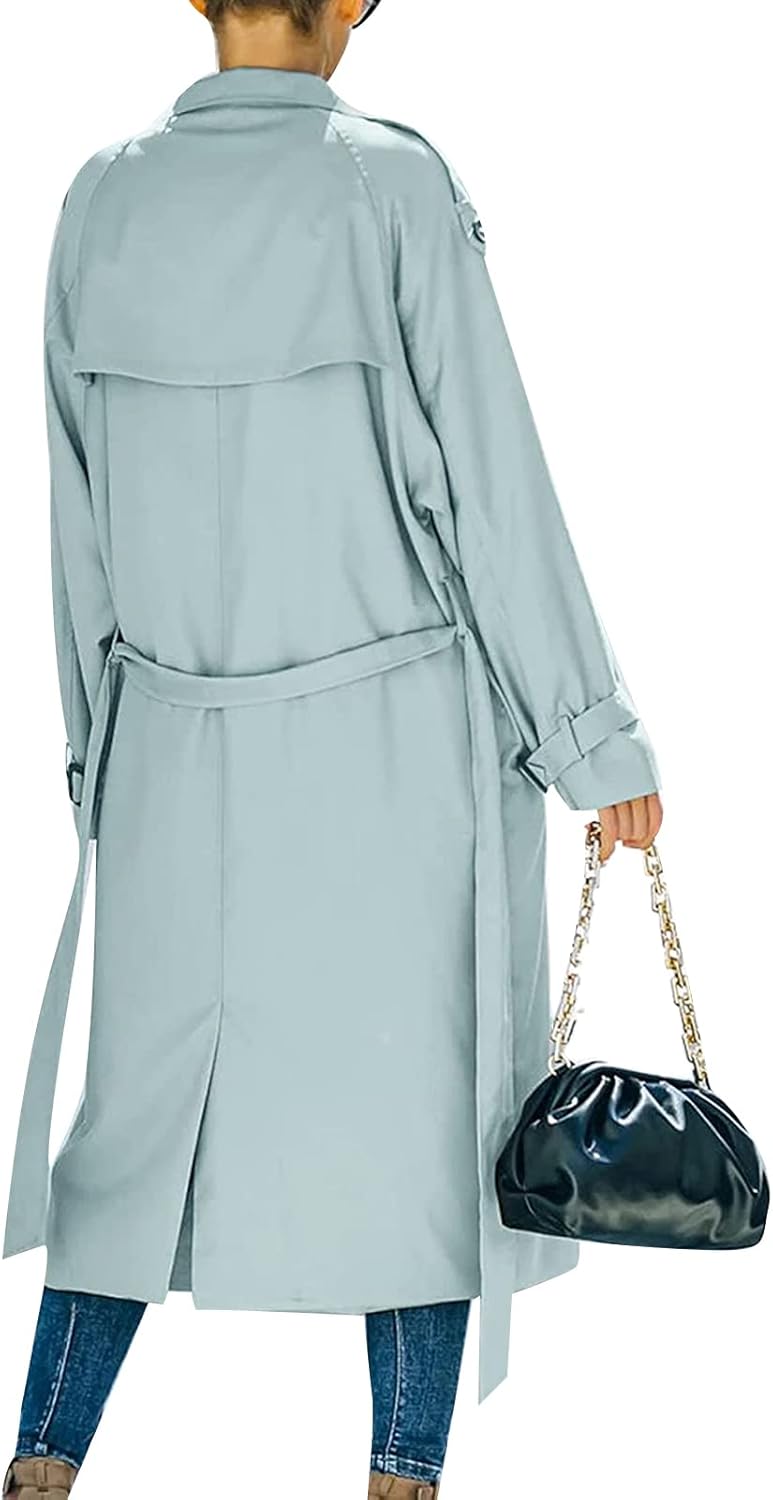 Classic Long Trench Coat Double-Breasted Lapel Long Sleeve Windproof Overcoat with Belt