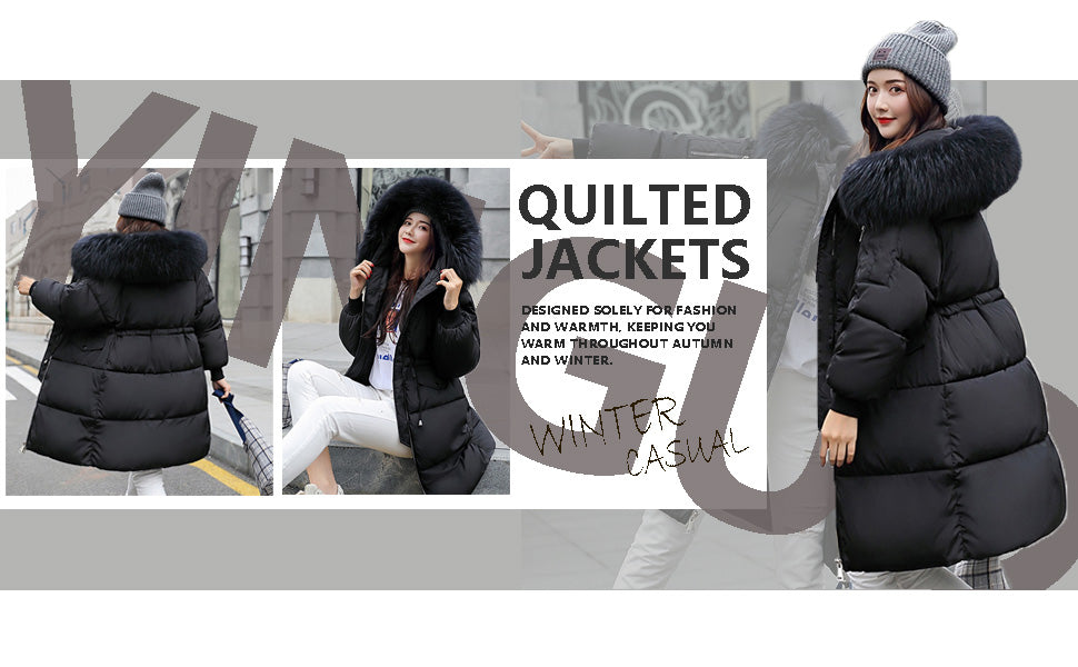 Winter Jackets for Women UK Quilted Down Long-Lenght Puffer Coats Ladies Lightweight Waterproof Jacket with Fur Hood Plus Size Slim Trench Coat Warm Outwear - S / Black is backordered. It will be shipped when back in stock.