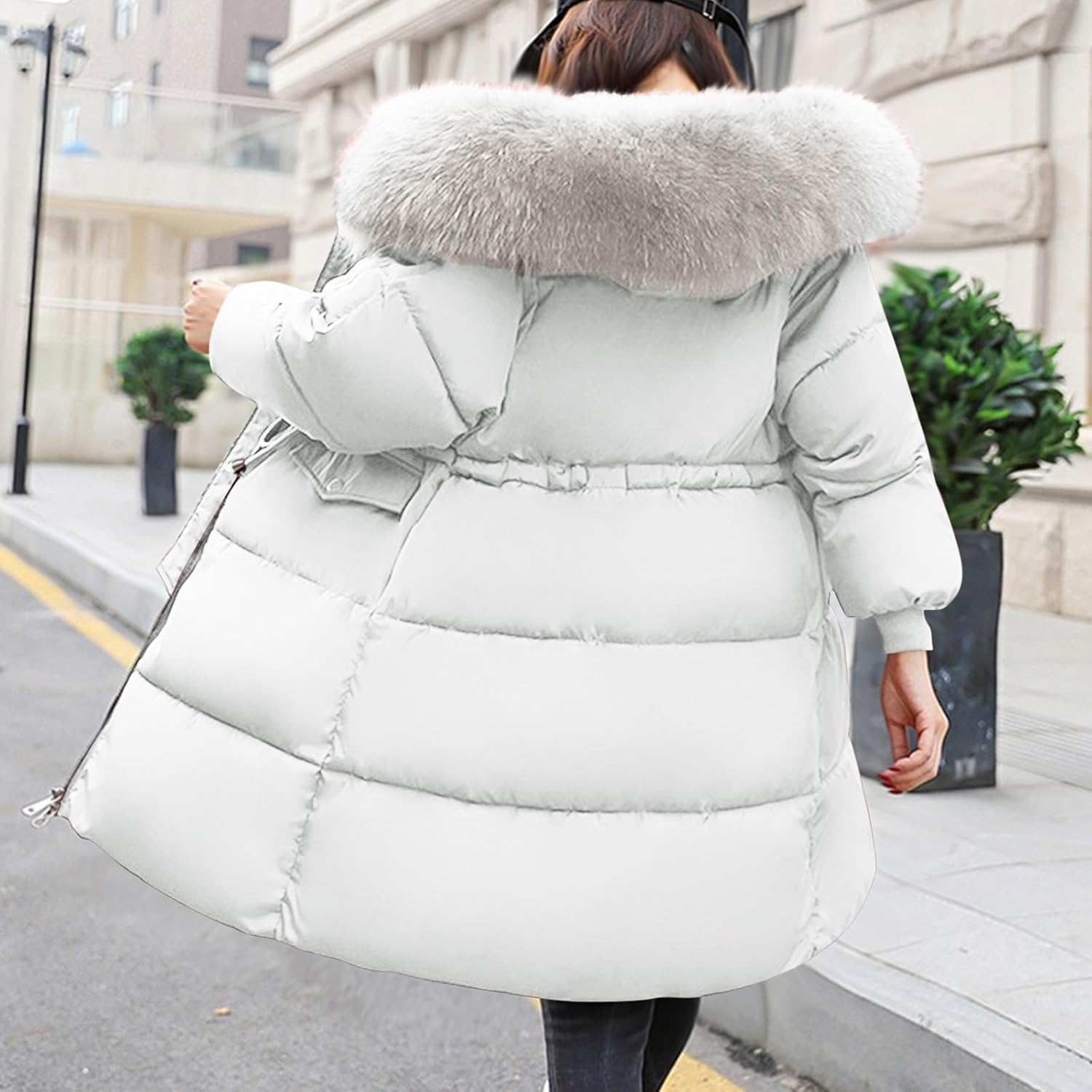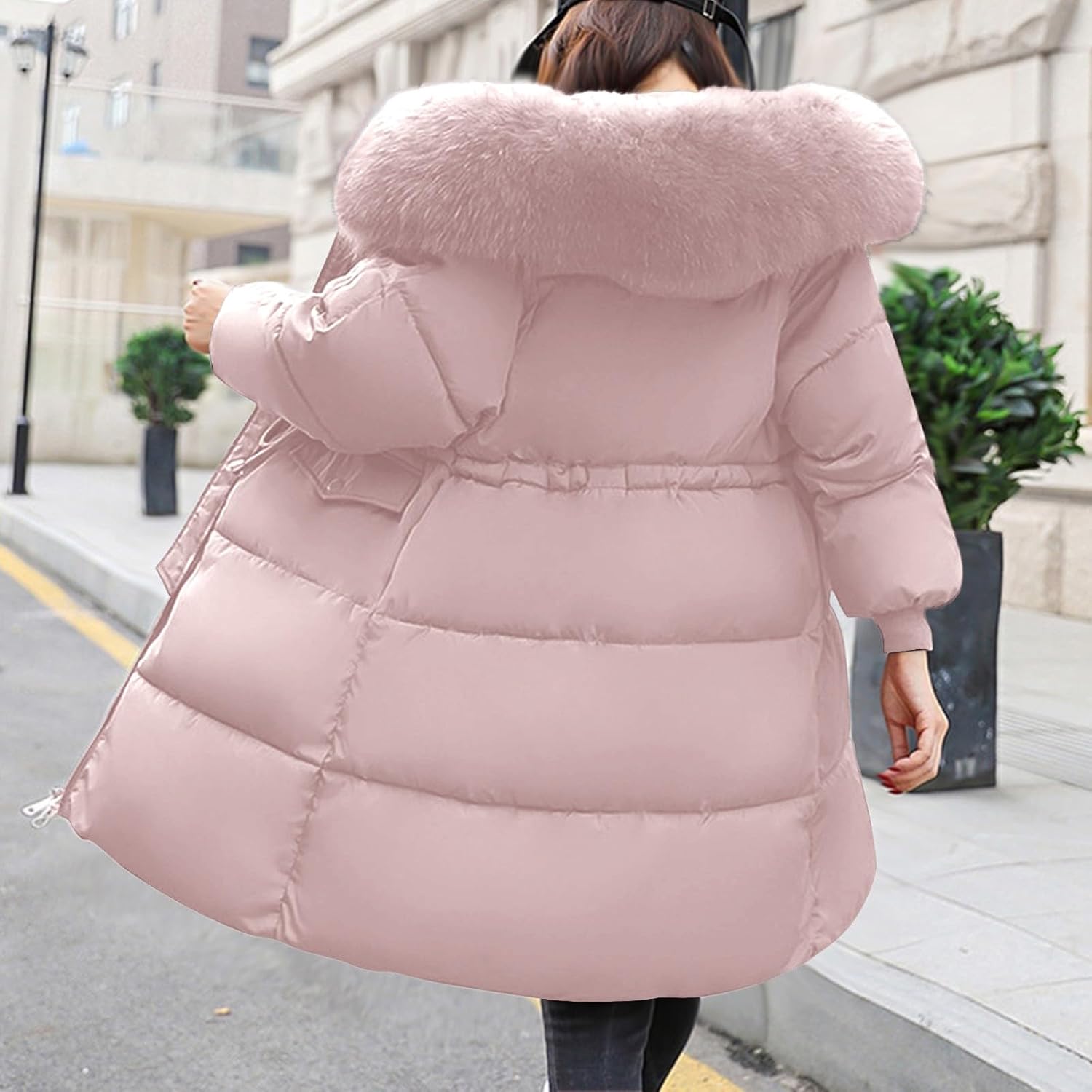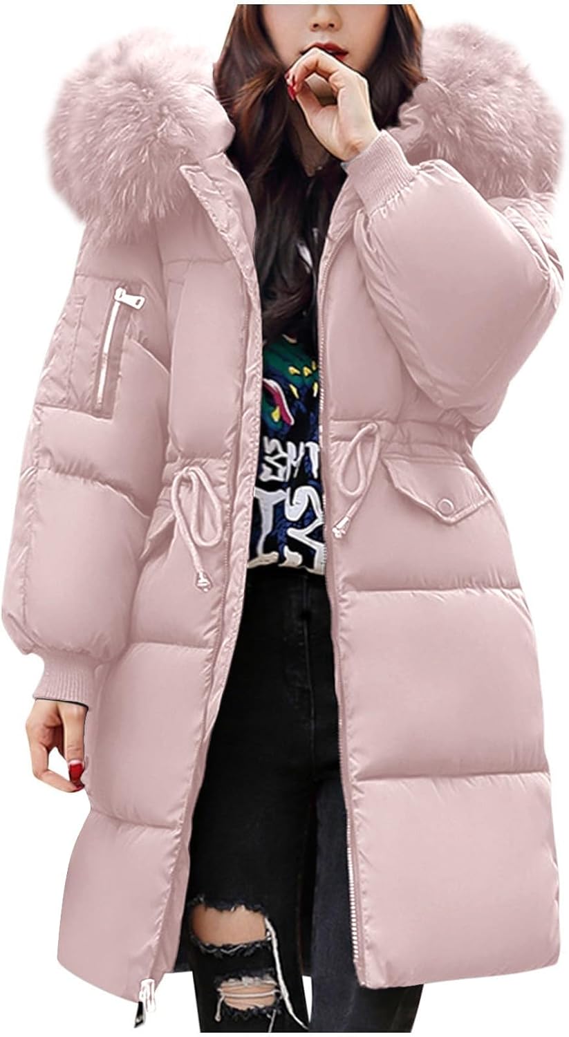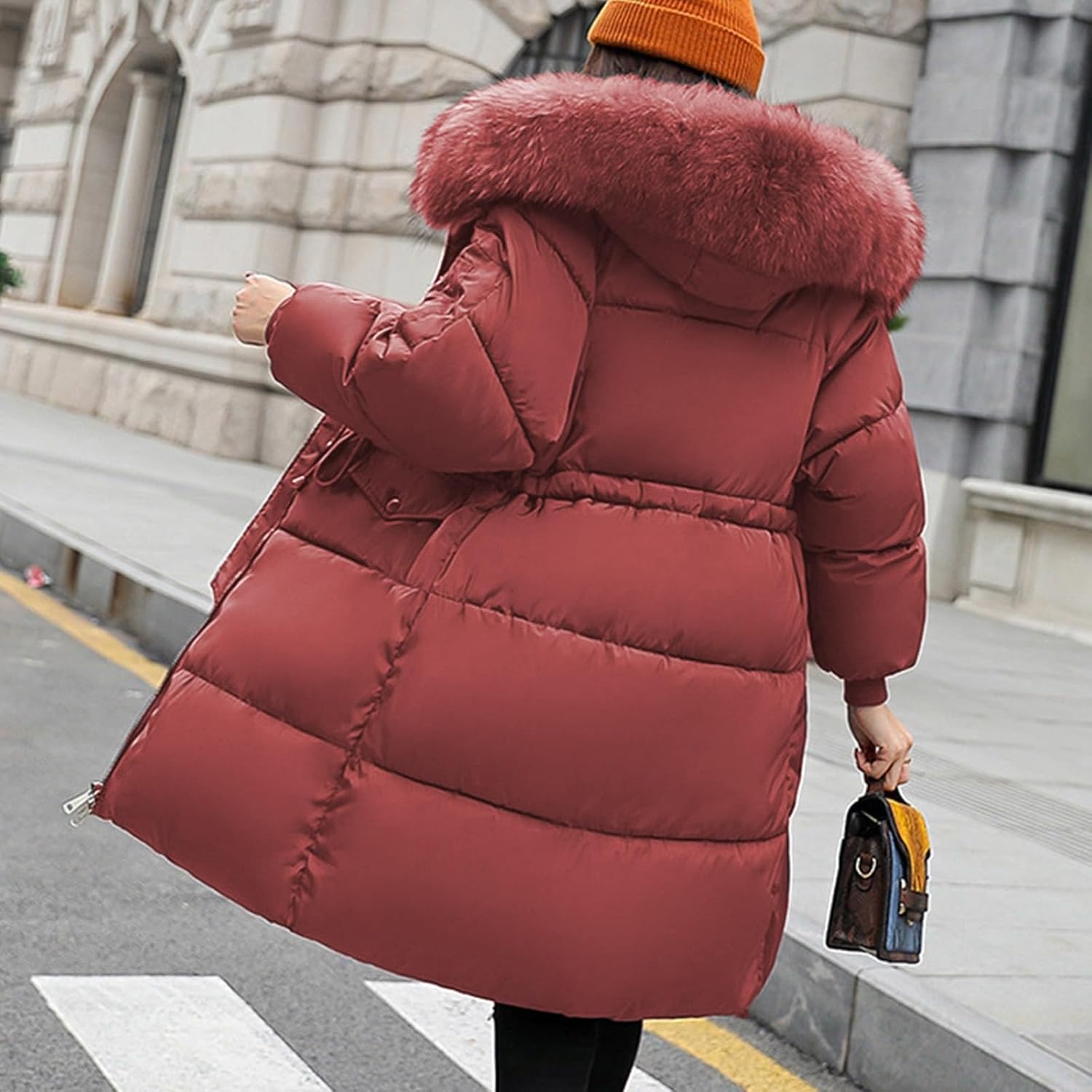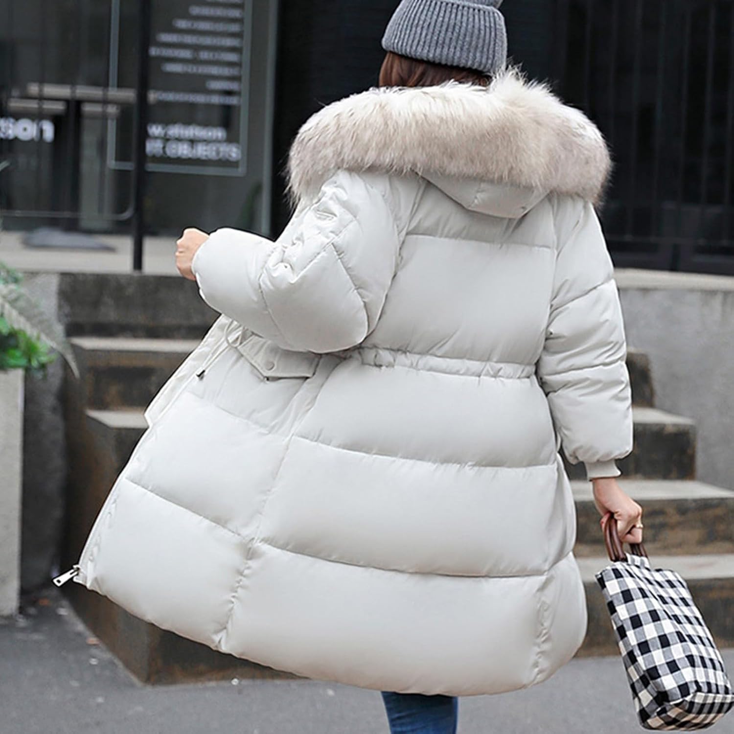 Winter Jackets for Women UK Quilted Down Long-Lenght Puffer Coats Ladies Lightweight Waterproof Jacket with Fur Hood Plus Size Slim Trench Coat Warm Outwear