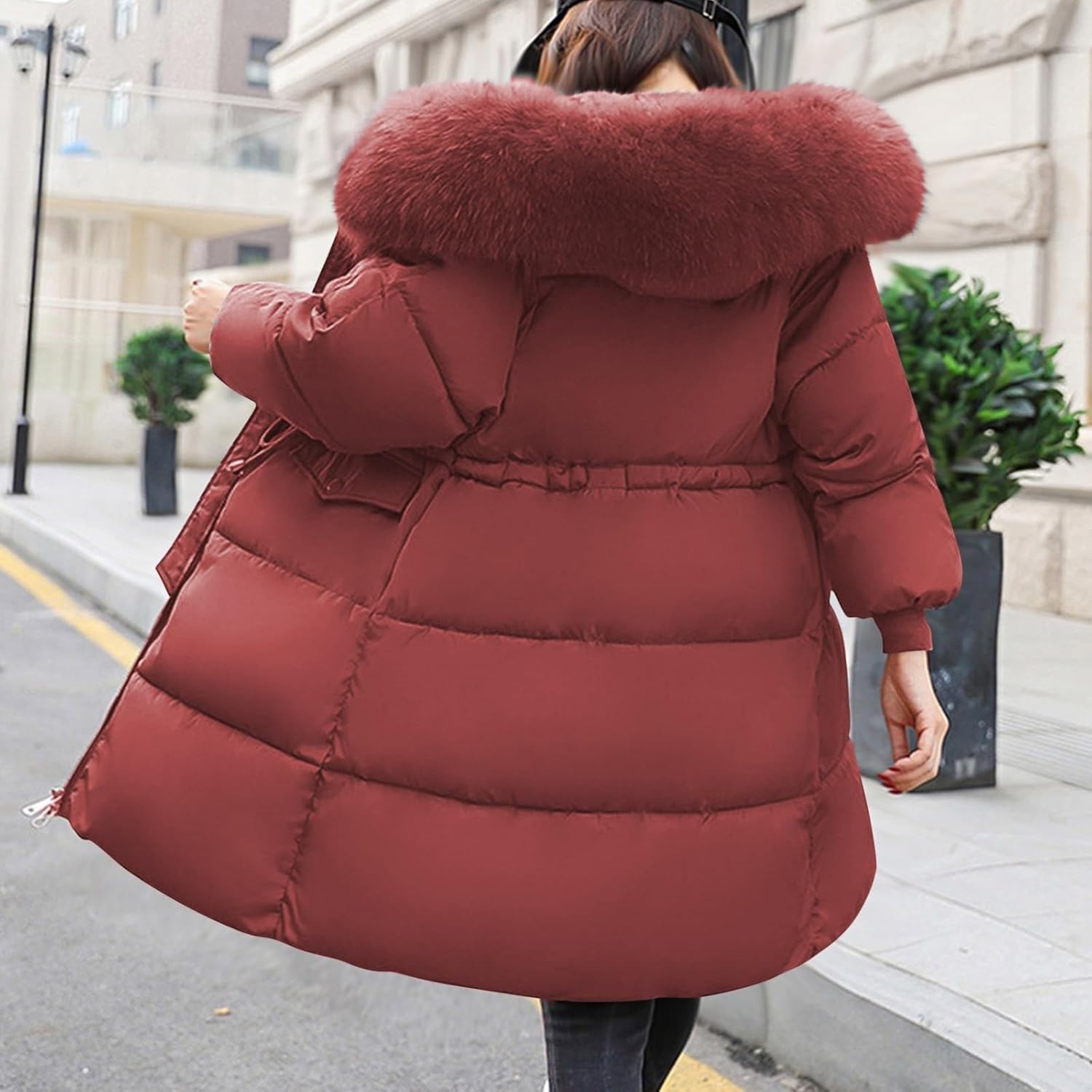 Parka Winter Coats Water Repellent Jacket Fleece Lined Long Jacket Ladies Zipper Hooded Quilted Outwear Coat Windproof Padded Thermal Overcoat with Pockets