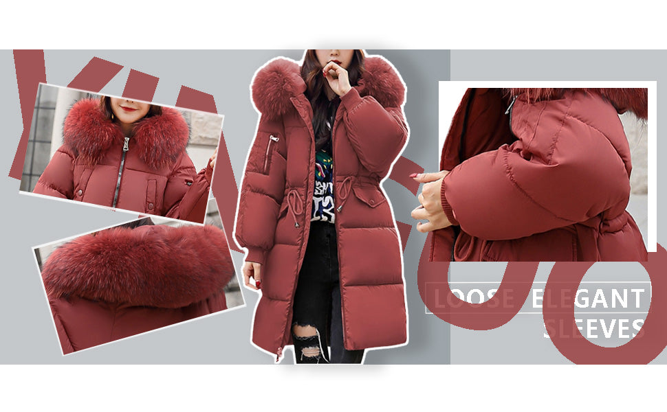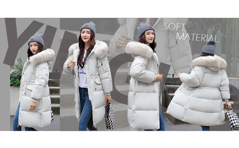 Long Fur Trimmed Hooded Padded Puffer Parka Ladies Winter Jacket Coat