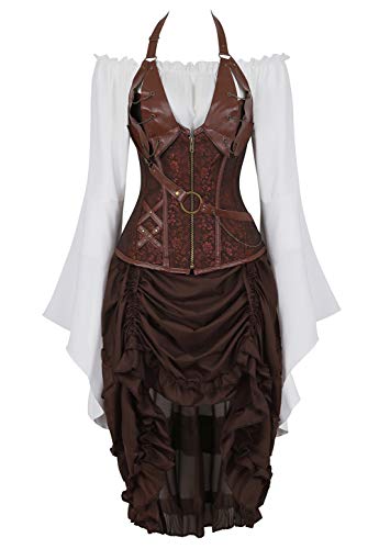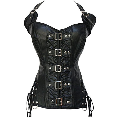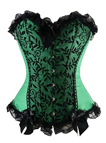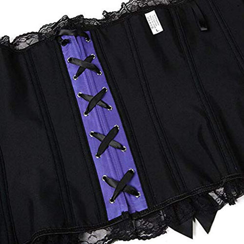 Kelvry Women's Gothic Satin Lace up Boned Bustier Corset Top with Suspenders
