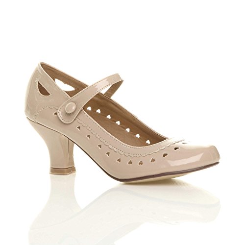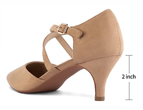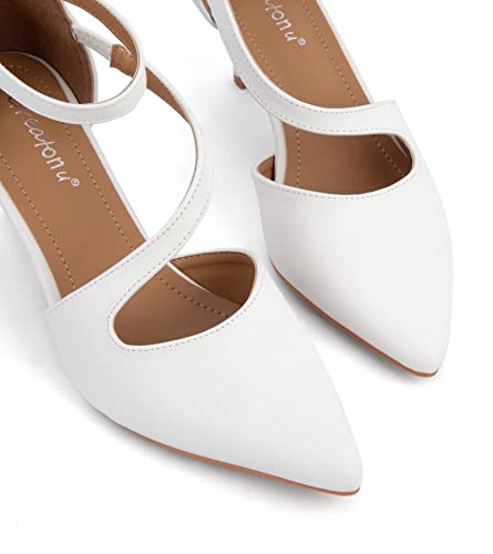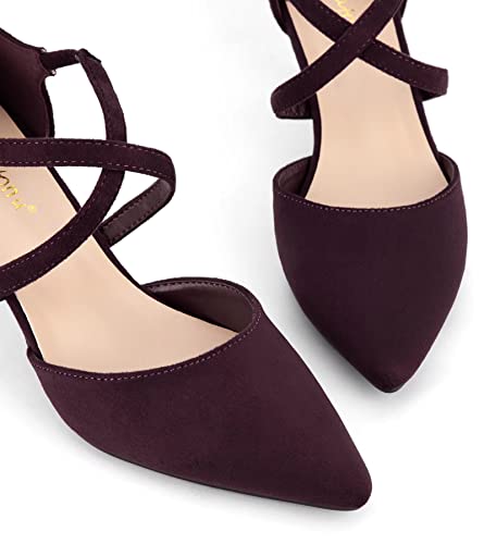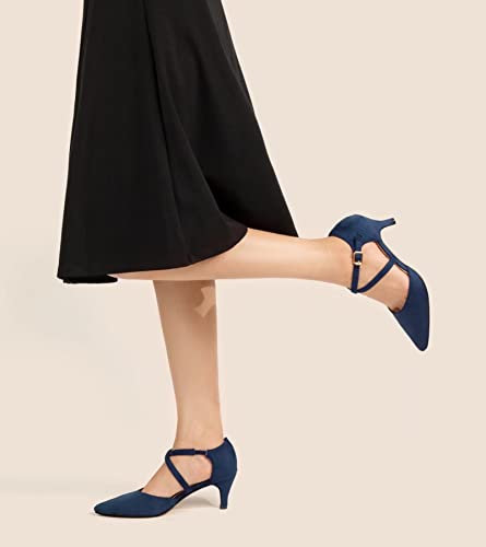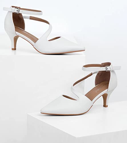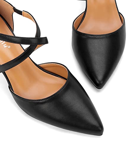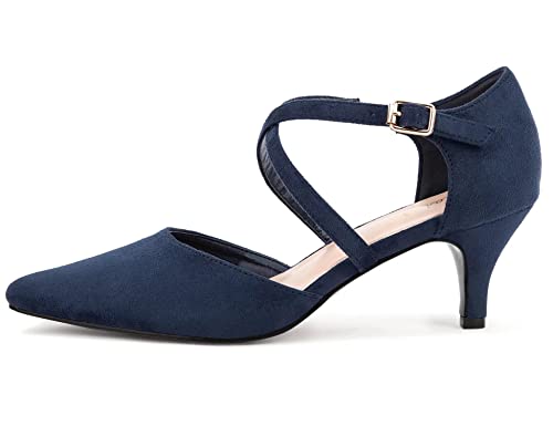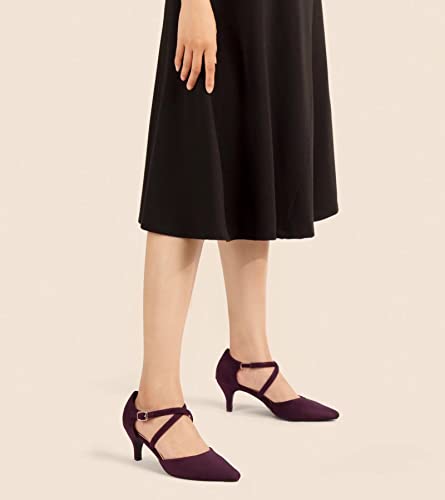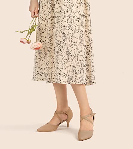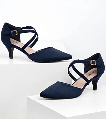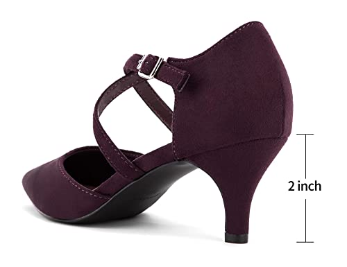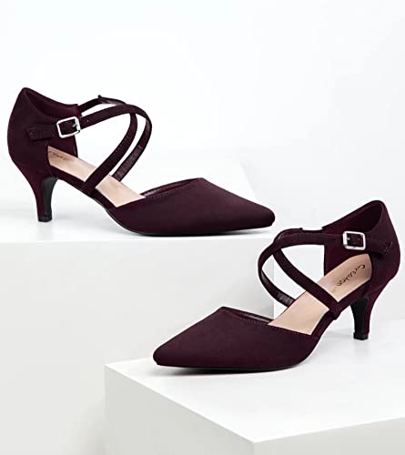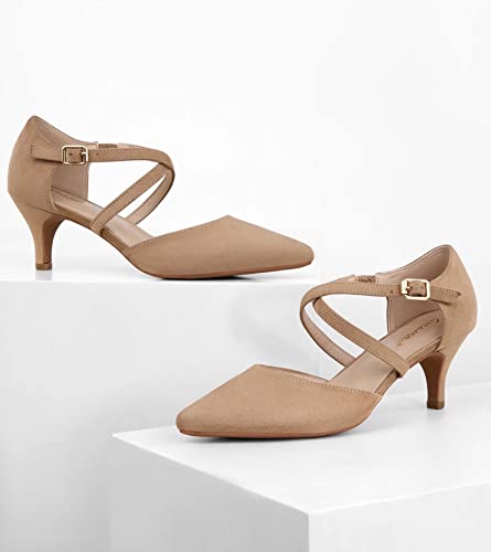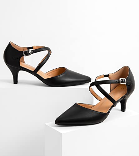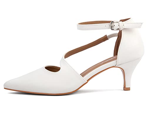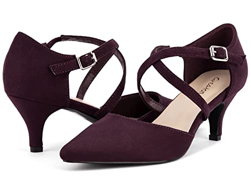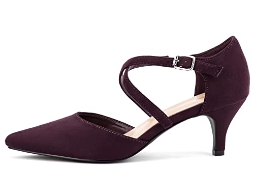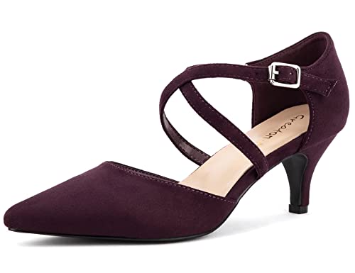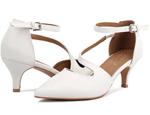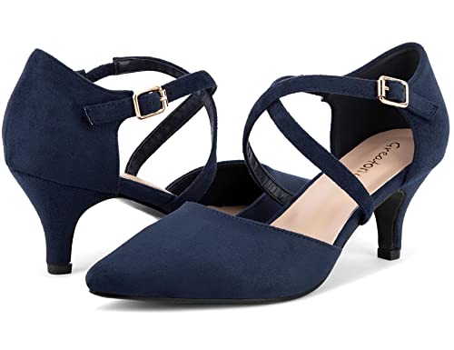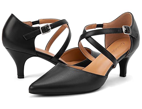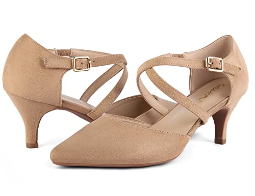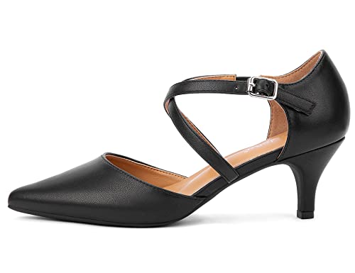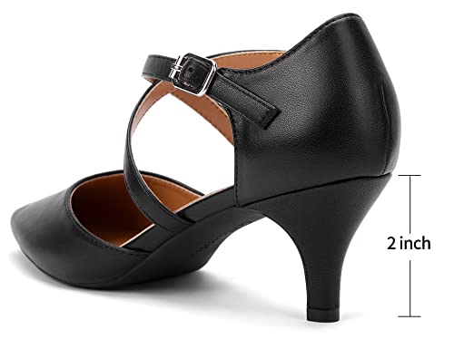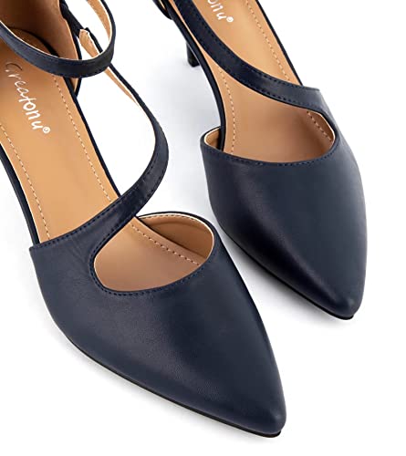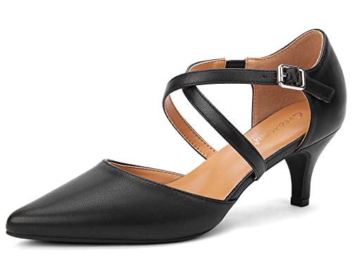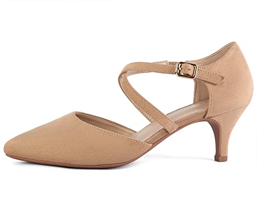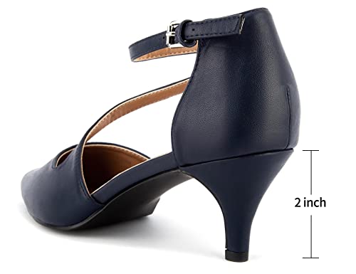 Greatonu Womens Court Shoes D'Orsay Ankle Strap Low Kitten Heel Dress Pumps