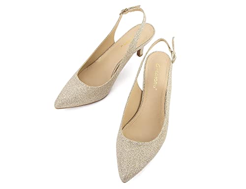 Greatonu Women's Pointed Toe Slingback Dress Court Shoes