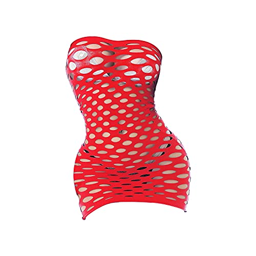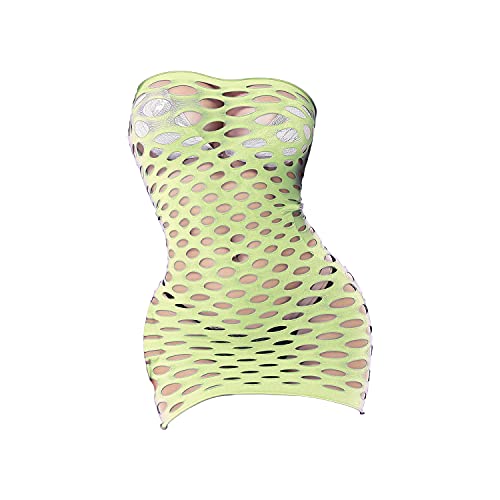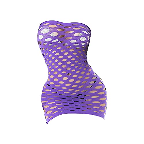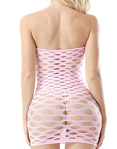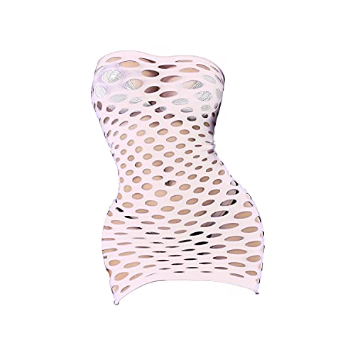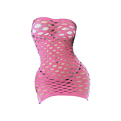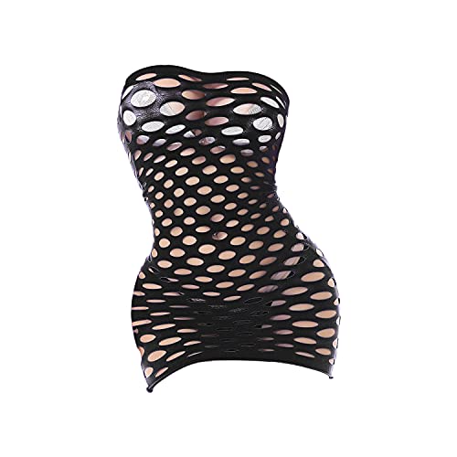 Women's Hollow Sexy Nightdress Fishnet Babydoll Mini Bodysuit Dress Transparent Mesh Solid Stretch One-Piece Dress