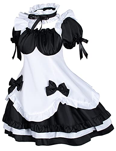 - Material:Polyester,well made, soft and comfy to the touch , cute anime maid outfit look.