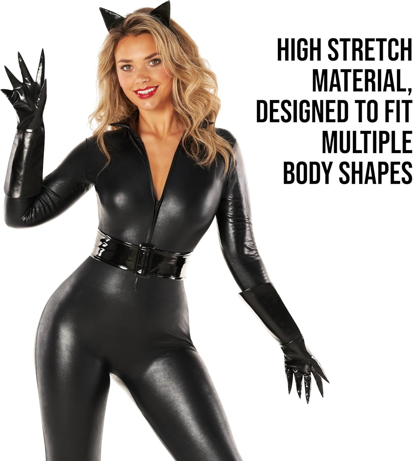 Iconic details included: No extra shopping needed. Each black cat costume women set comes with a comfortable cat-eye mask and claw-like gloves, capturing the essence of a black cat superhero costume in one bold package.