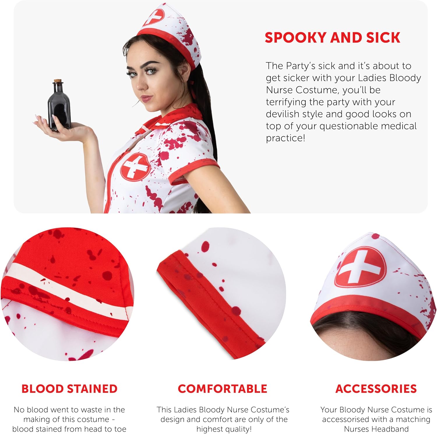 - LADIES BLOODY NURSE COSTUME: The Party’s sick and it’s about to get sicker with your Ladies Bloody Nurse...