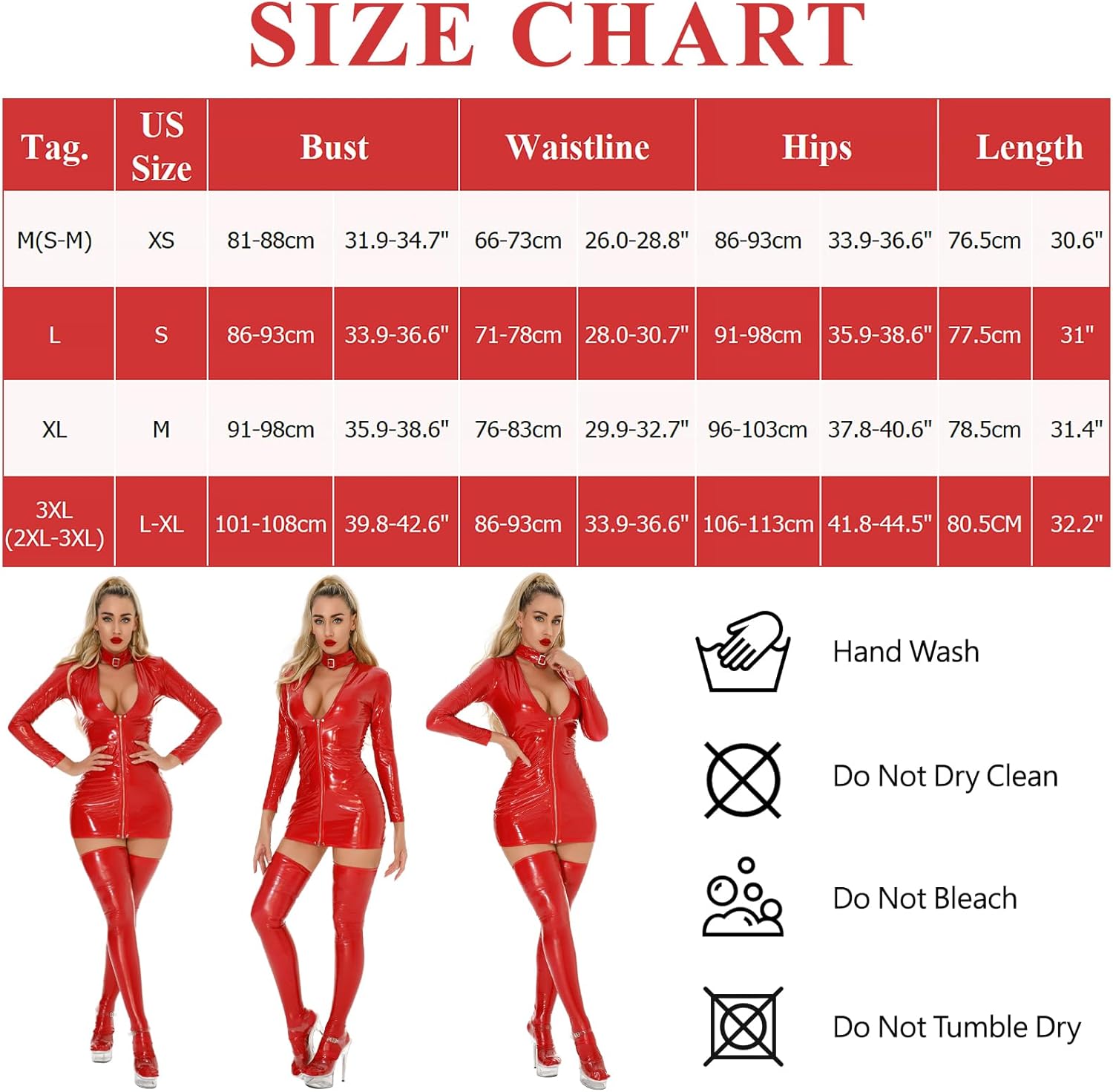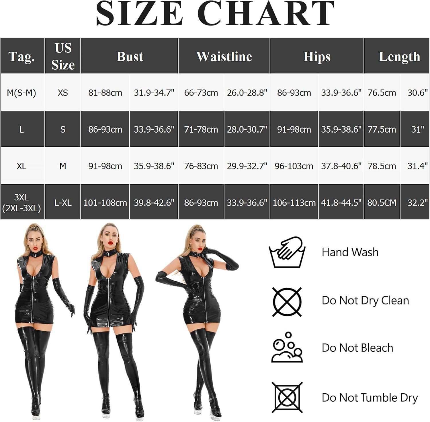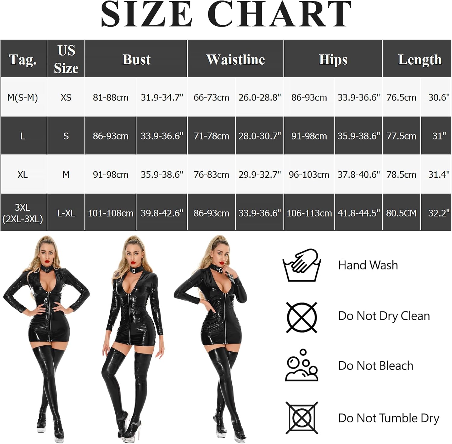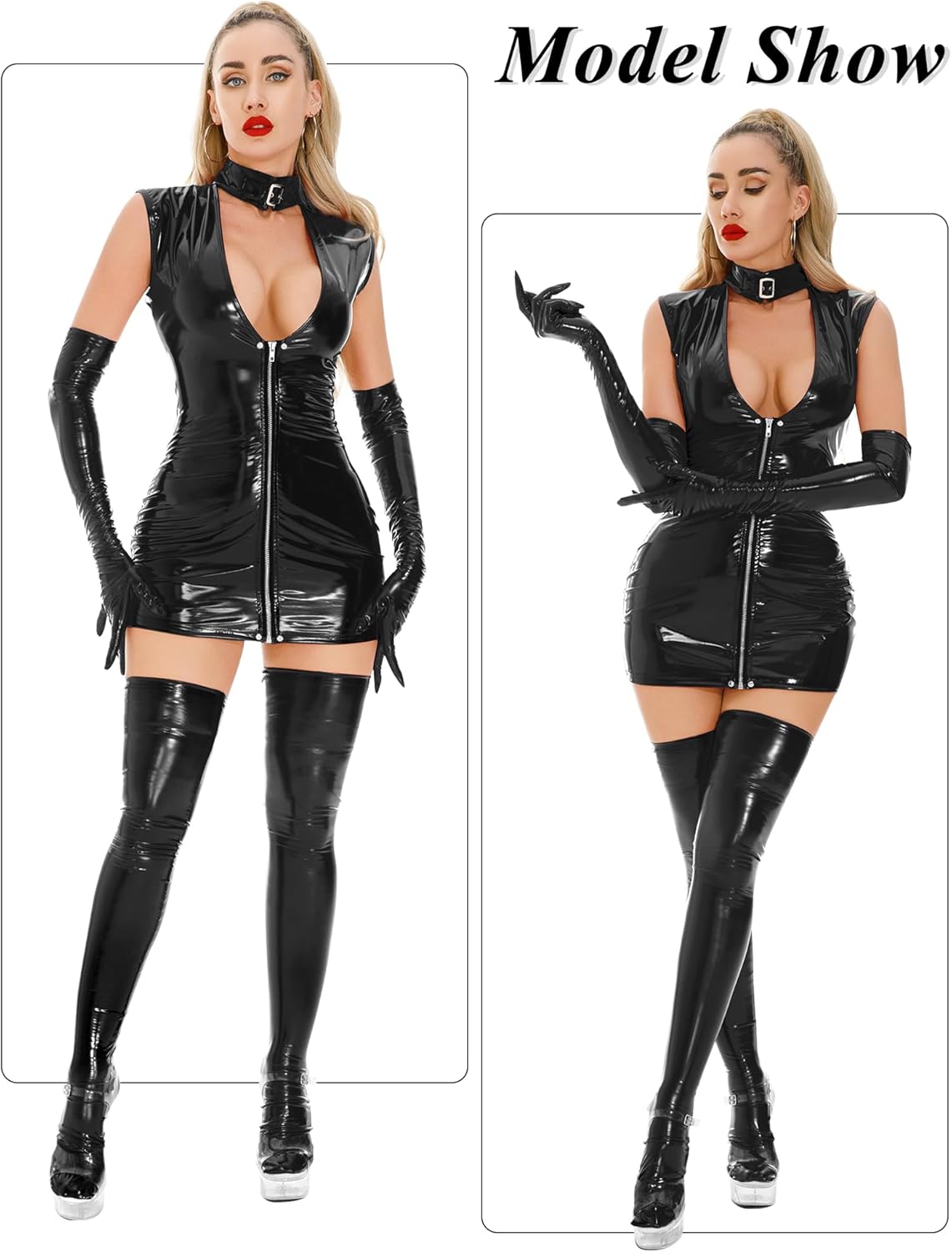 EASY TO WEAR: The convenient zipper closure makes putting on and taking off this faux leather lingerie a breeze, giving you more time to enjoy your evening.