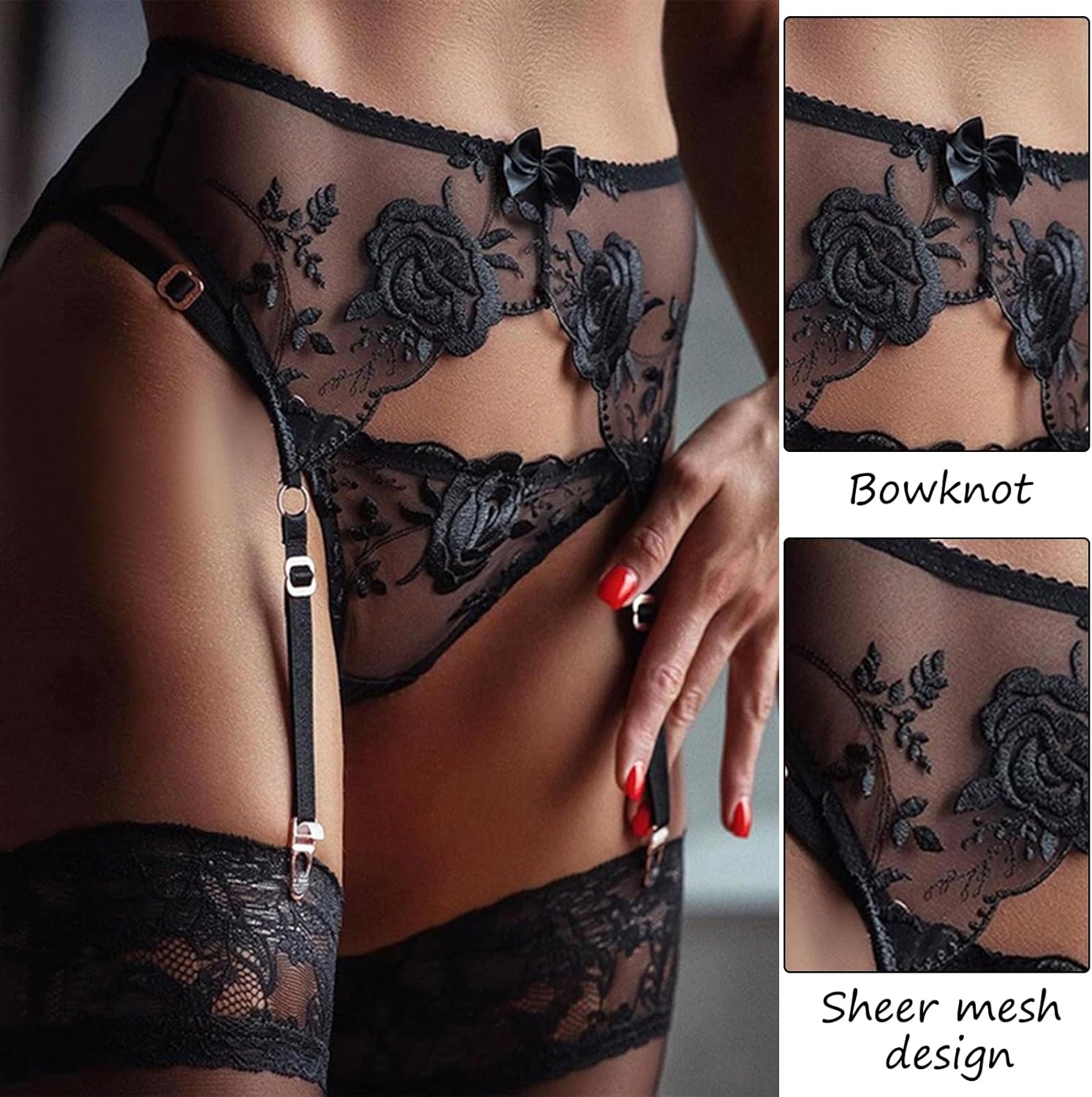 【Sexy Style】: This sexy lingerie for women sets naughty has exquisite lace rose embroidery patterns and cute little bow decorations. It can be easily matched with bras, skirts, jackets, etc. It is cute, sexy, fashionable, makes women irresistible.