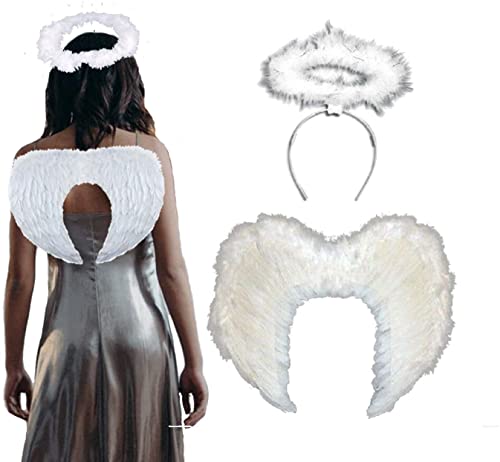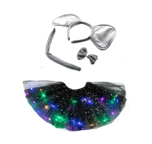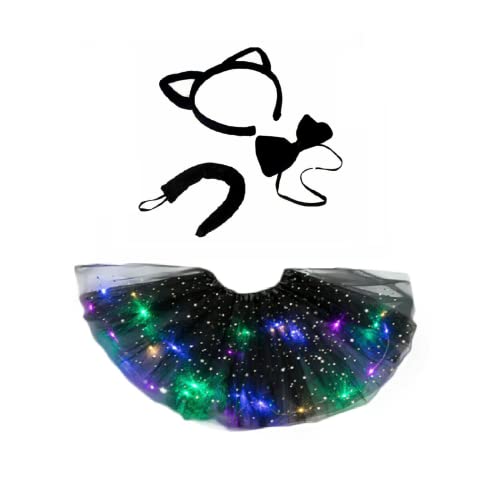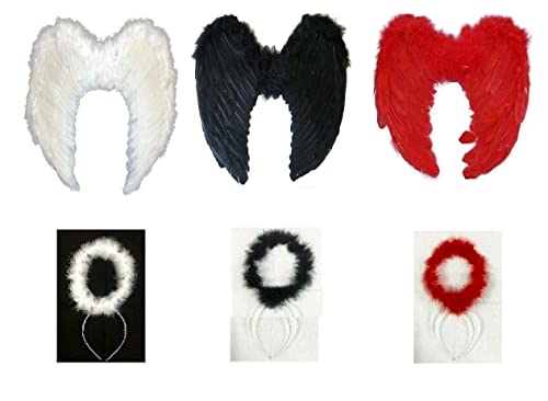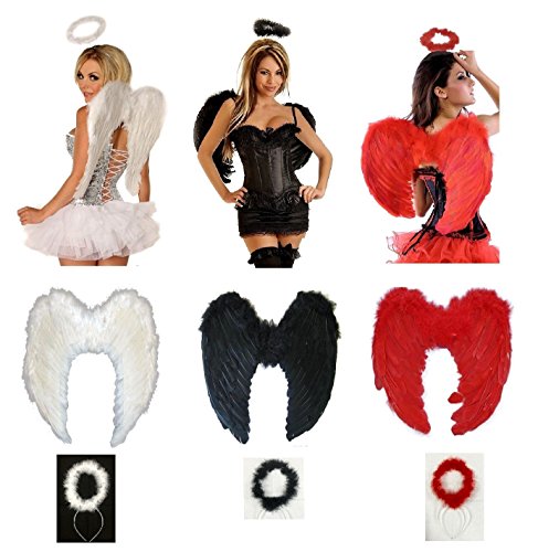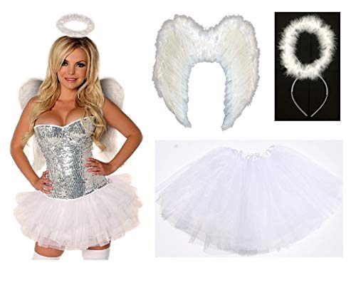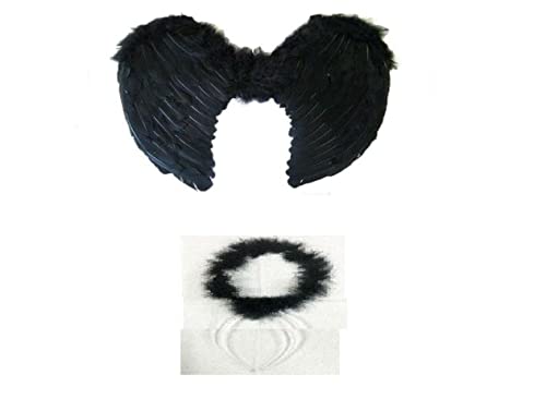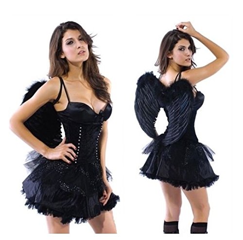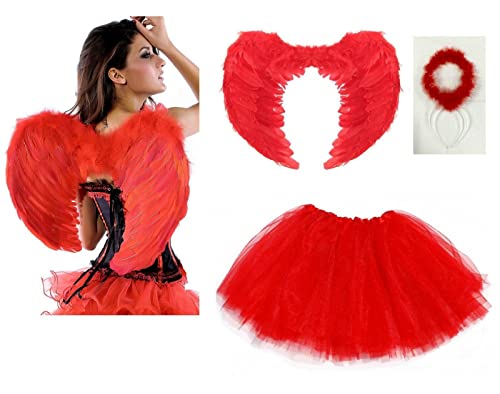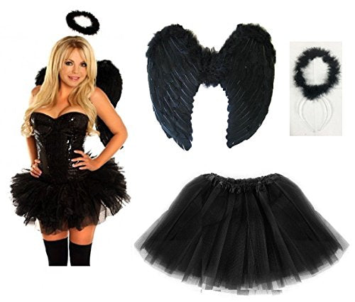 Lizzy Ladies ANIMAL FANCY DRESS TUTU with EARS BOW TAIL SET for Halloween, Hen Party Fancy Outfit Tutu Skirt (Dark Angel Wings Halo Tutu Costume