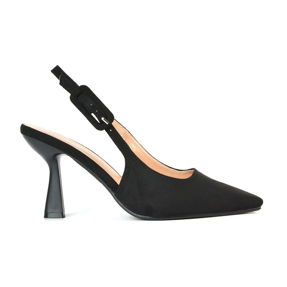 Women's Court Shoes Slingback Ladies Spointed Toe Evening Party Classic Stiletto High Heel Black Faux Suede Closed Toe Pumps