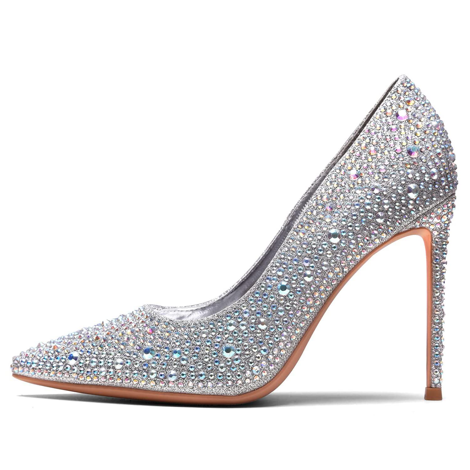 PIZZ ANNU High Heels for Women Diamante Stiletto Heel Sexy Stripper Ladies Sandals Pointed Toe Wedding Shoes for Bride Prom Party