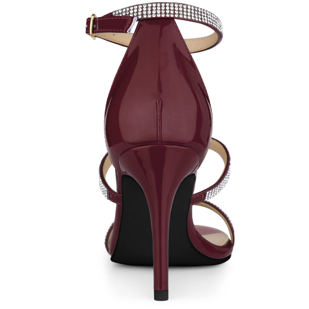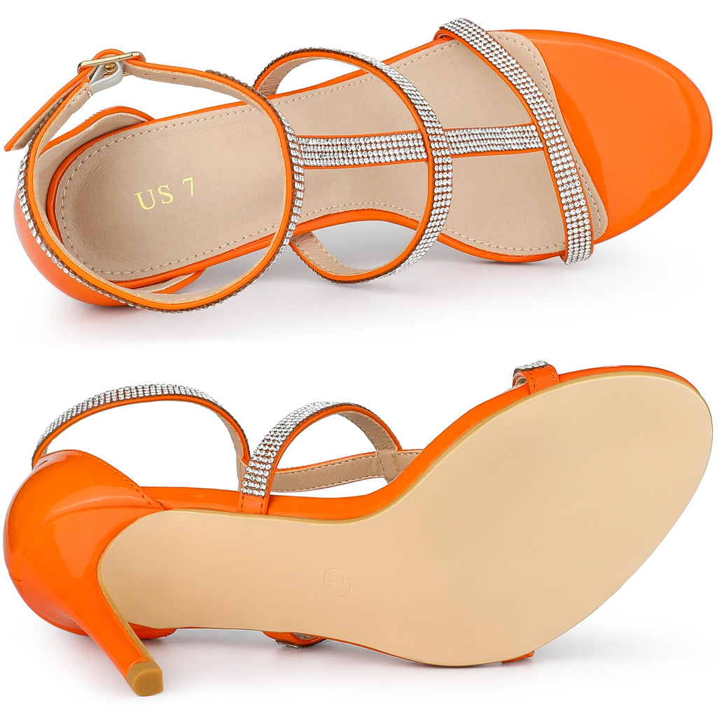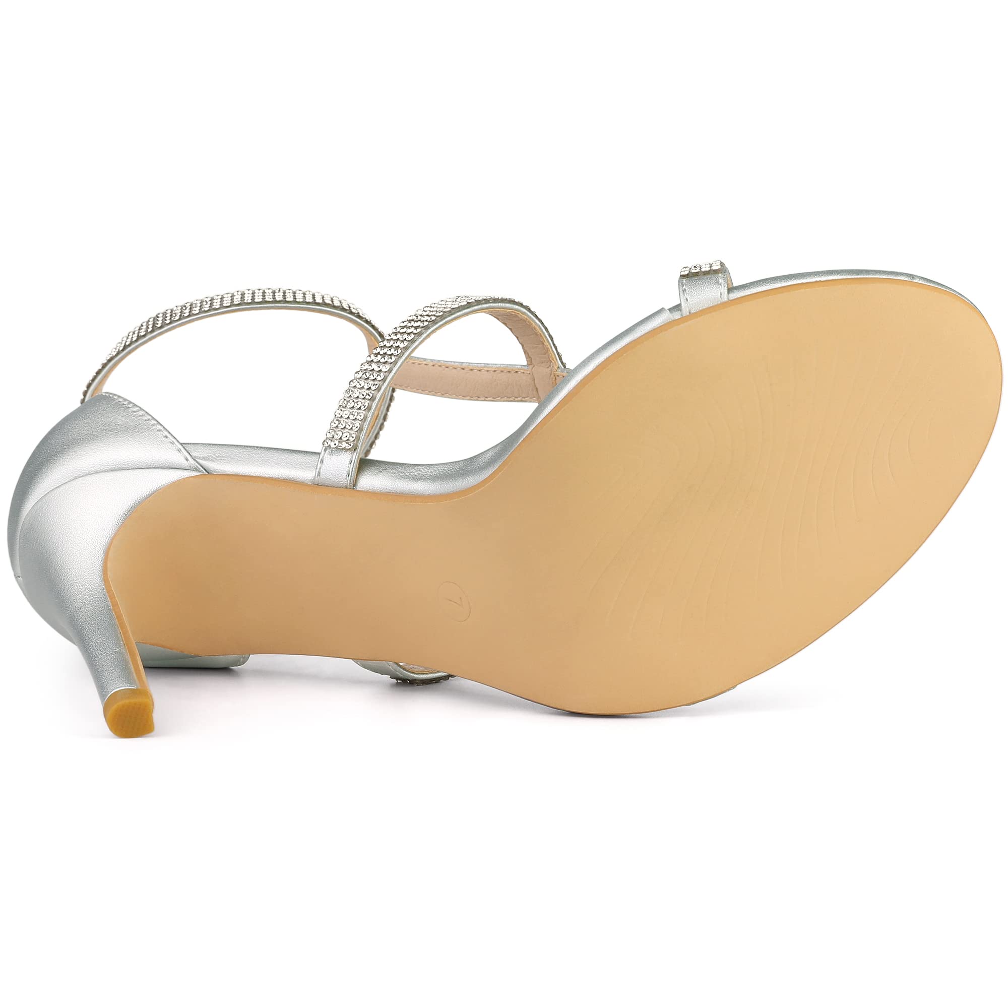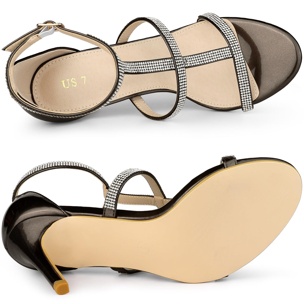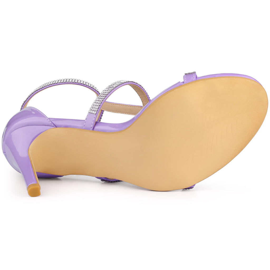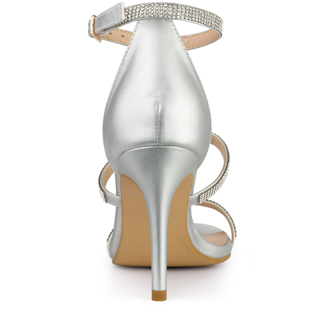 Allegra K Women's Rhinestone Ankle Strap Stiletto High Heel Sandals