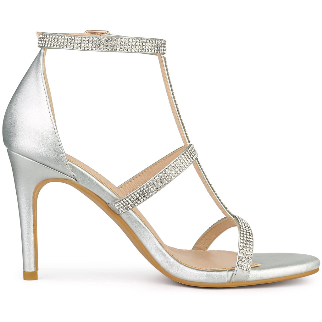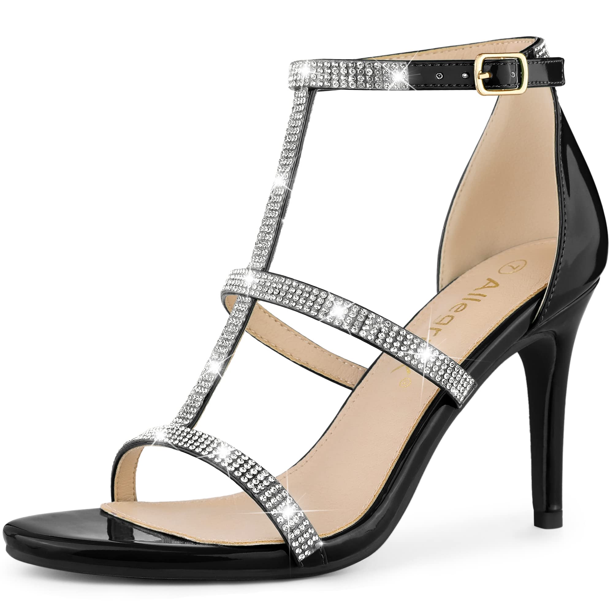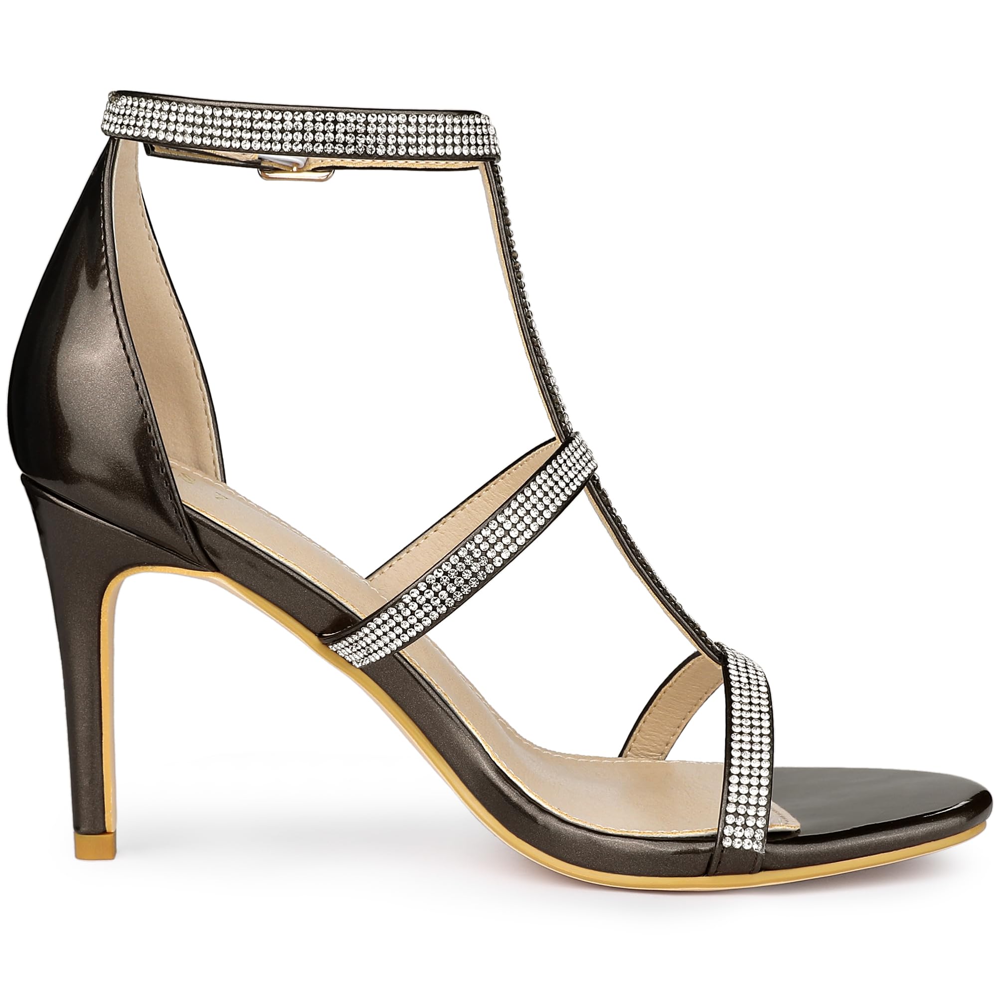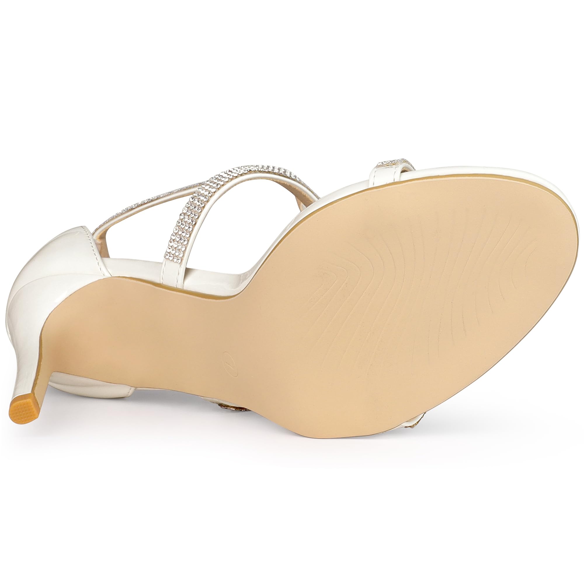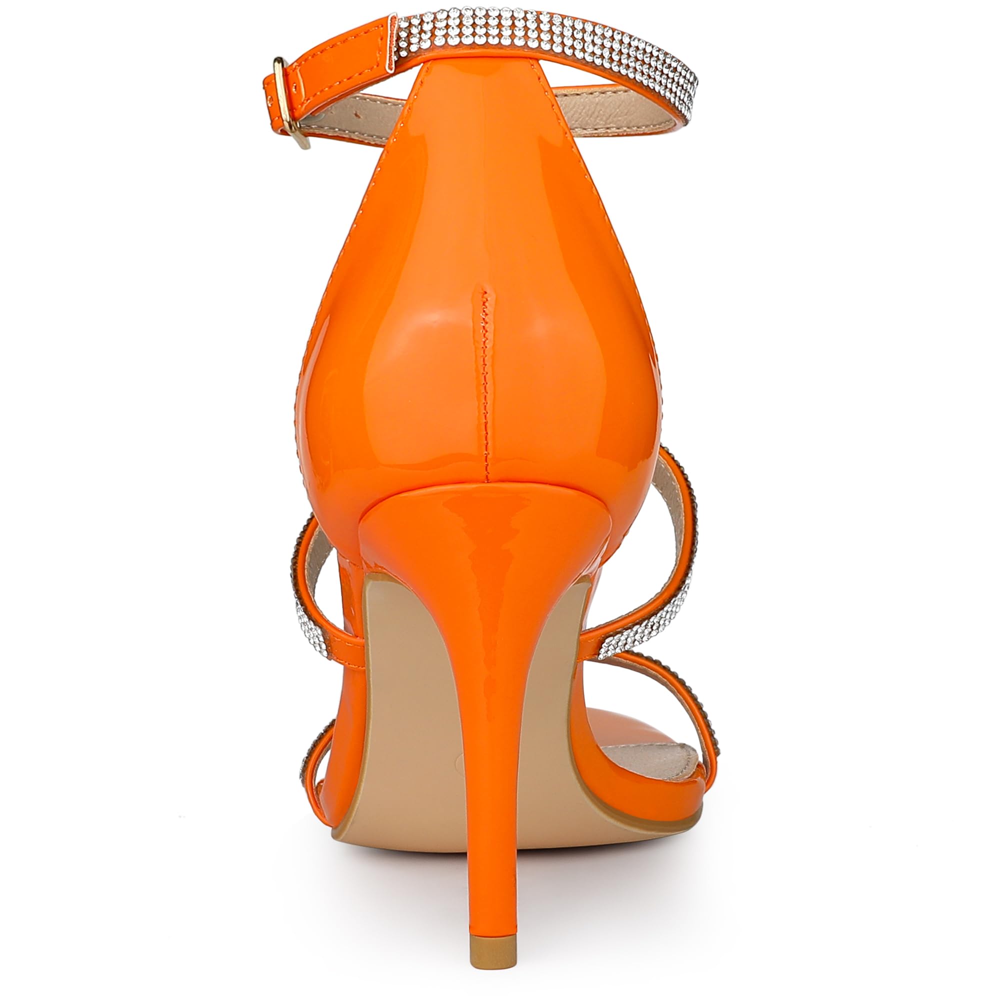 Allegra K Women's Rhinestone Ankle Strap Stiletto High Heel Sandals