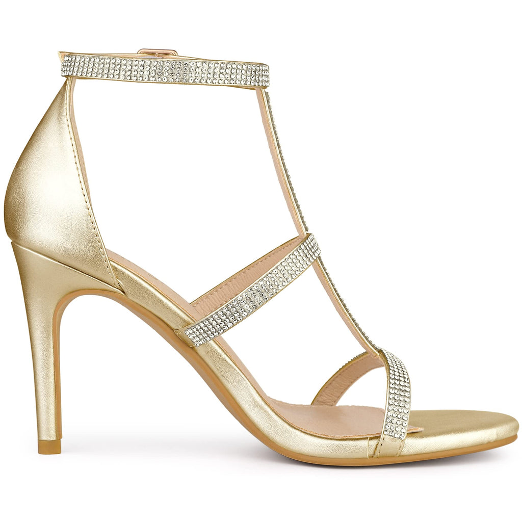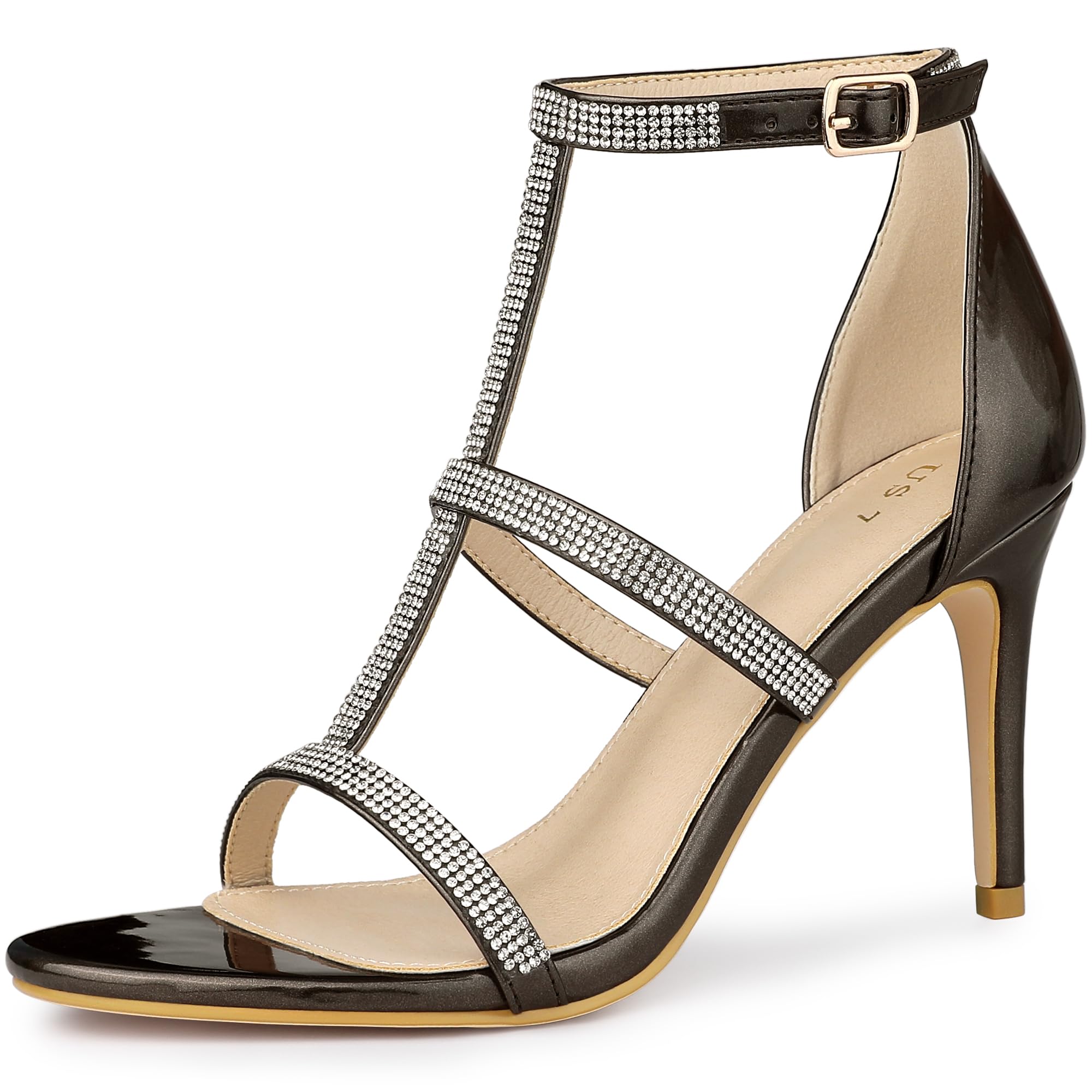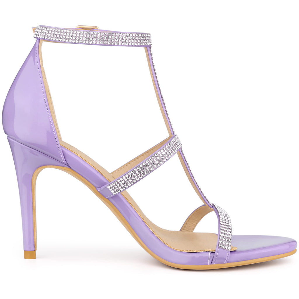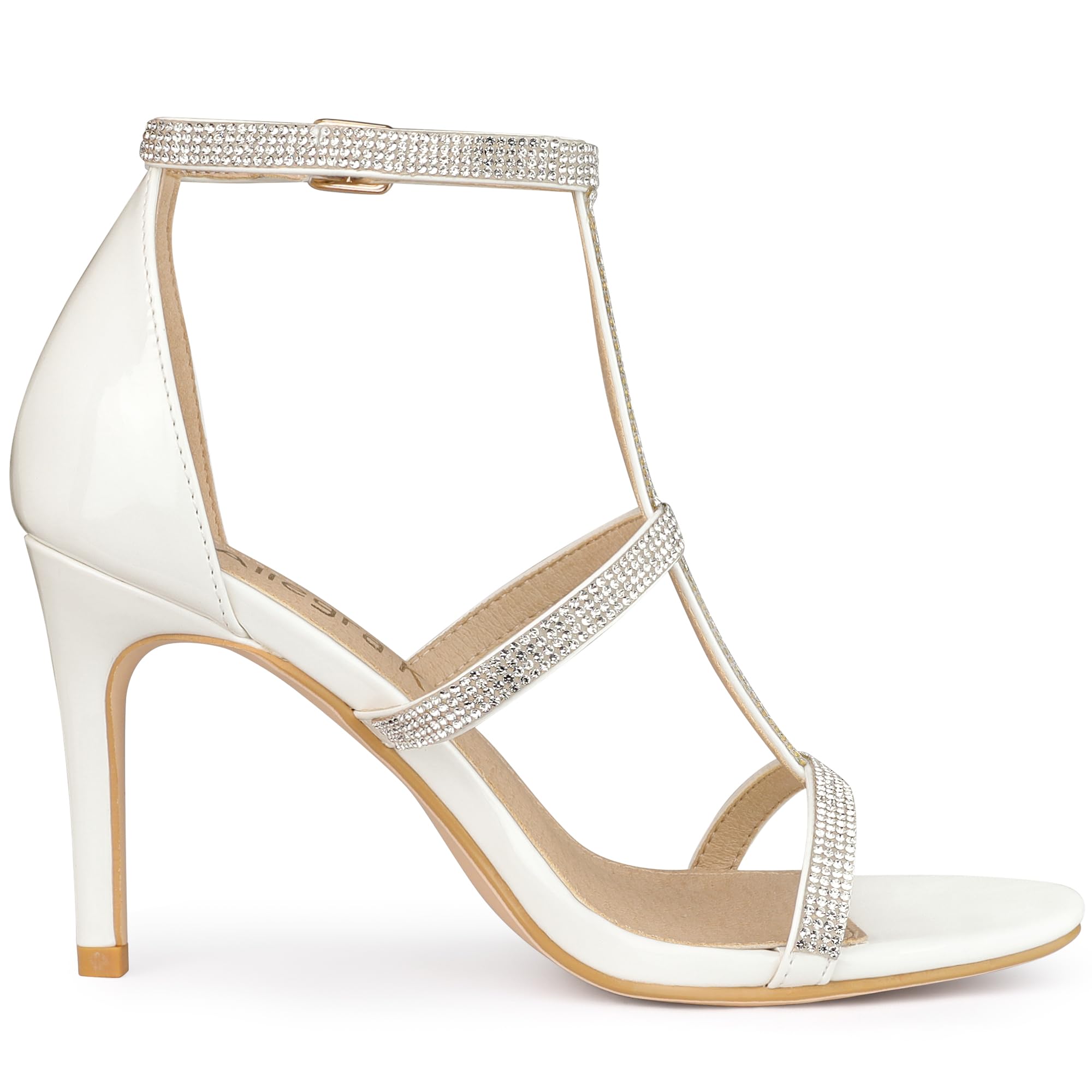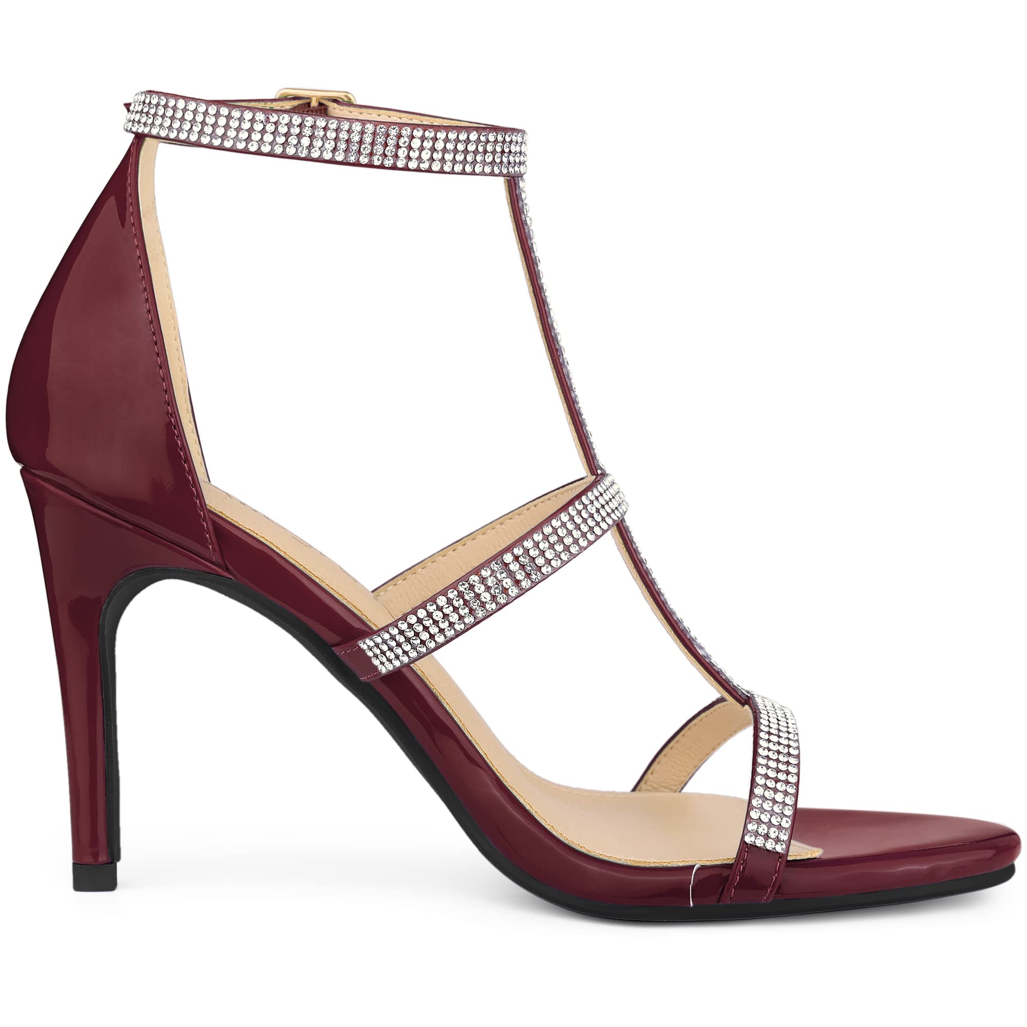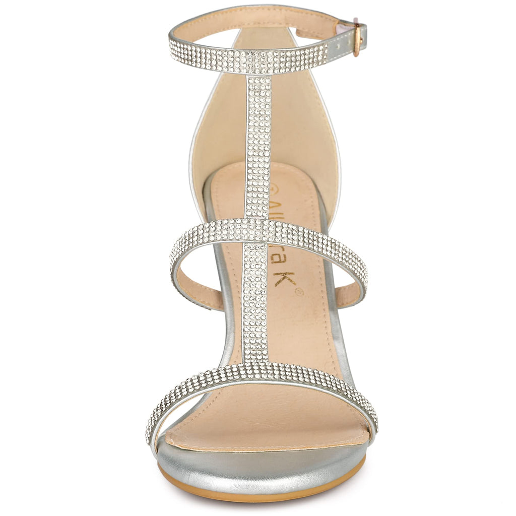Allegra K Women's Rhinestone Ankle Strap Stiletto High Heel Sandals