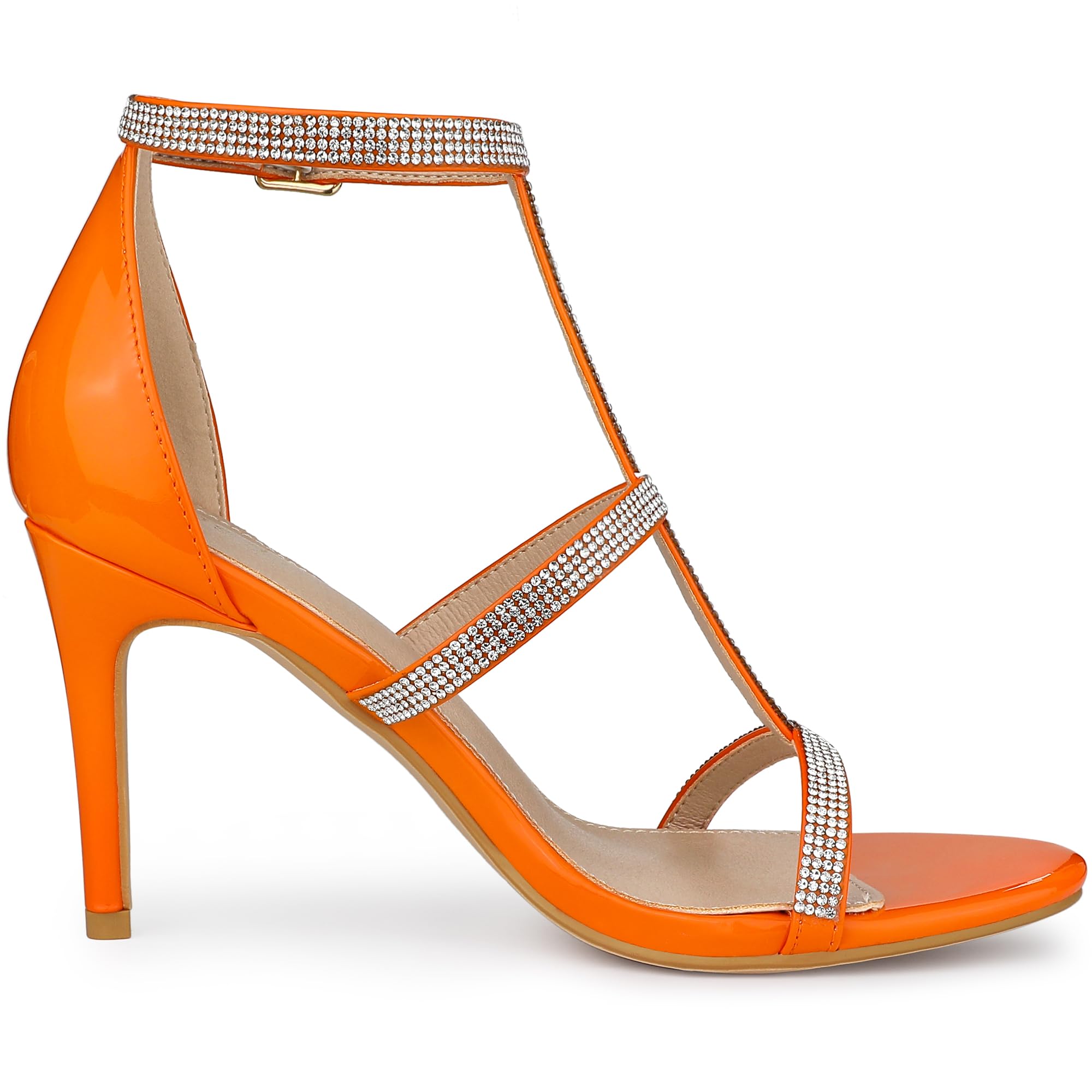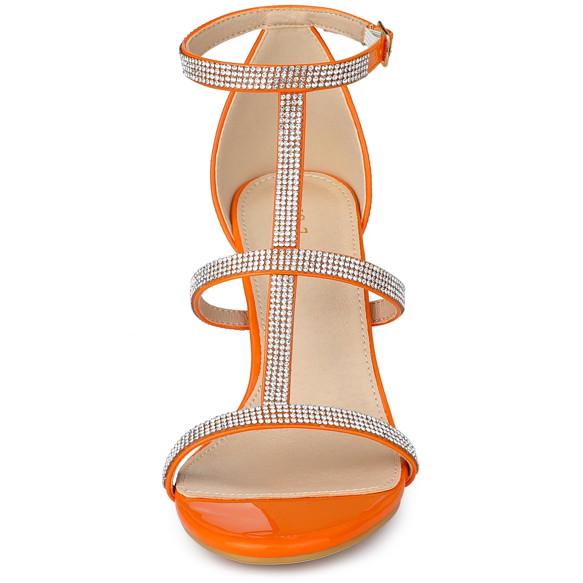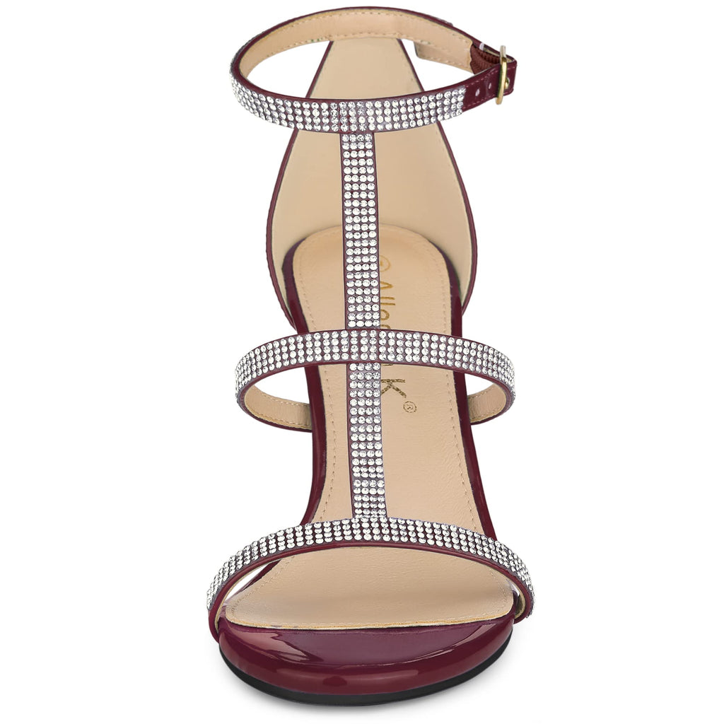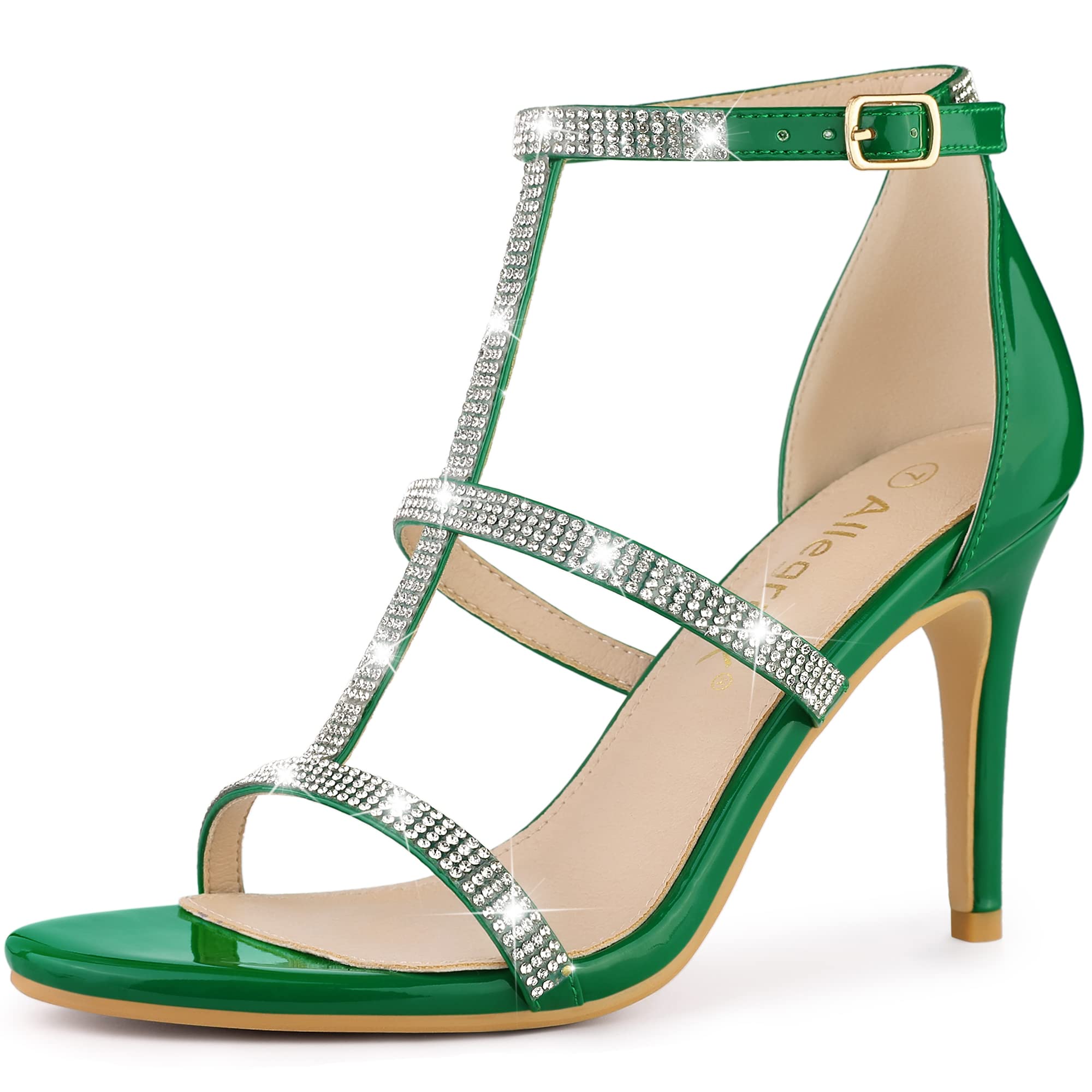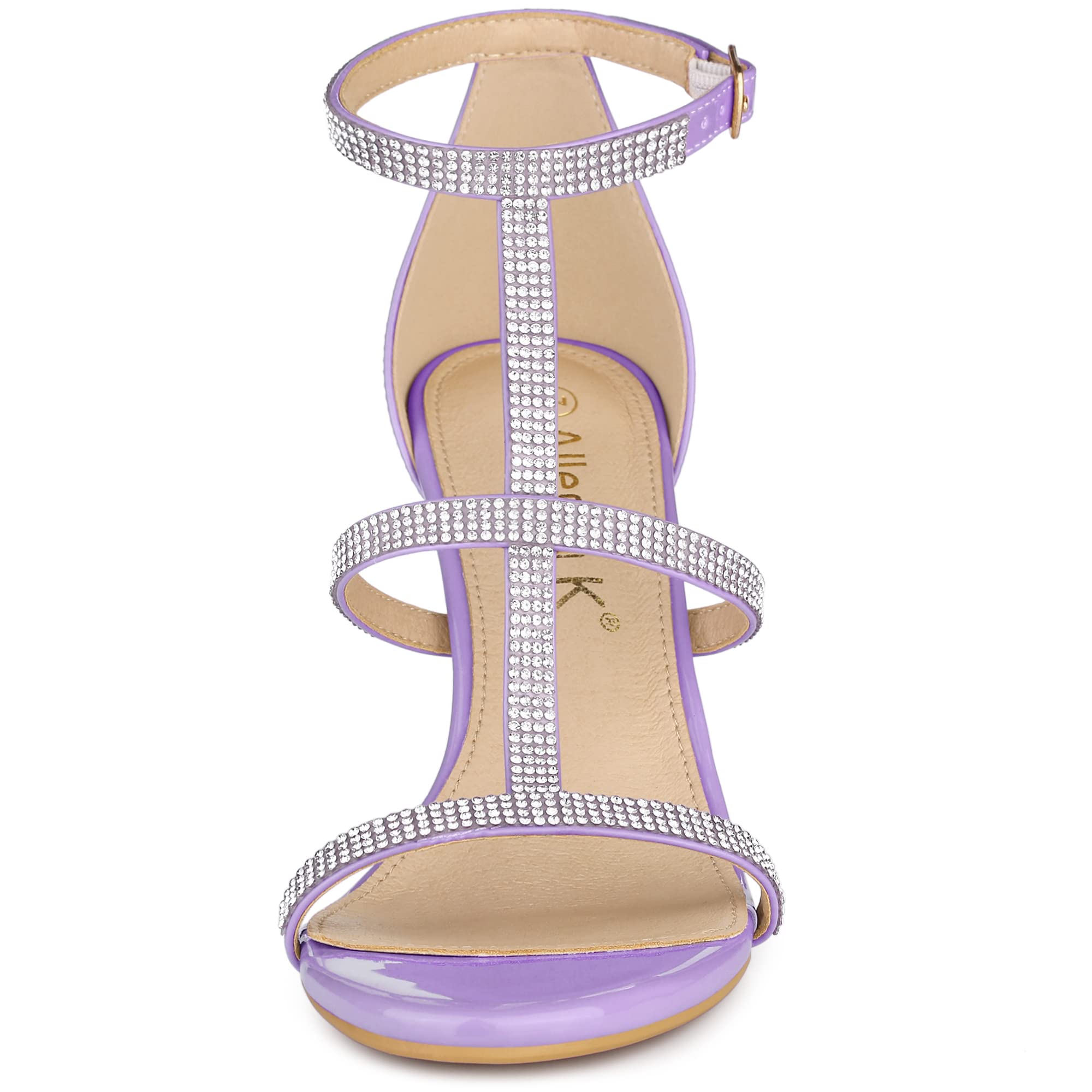 Allegra K Women's Rhinestone Ankle Strap Stiletto High Heel Sandals