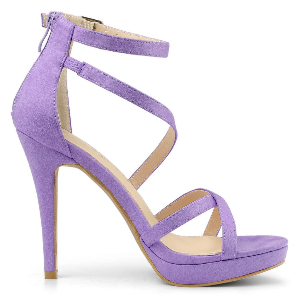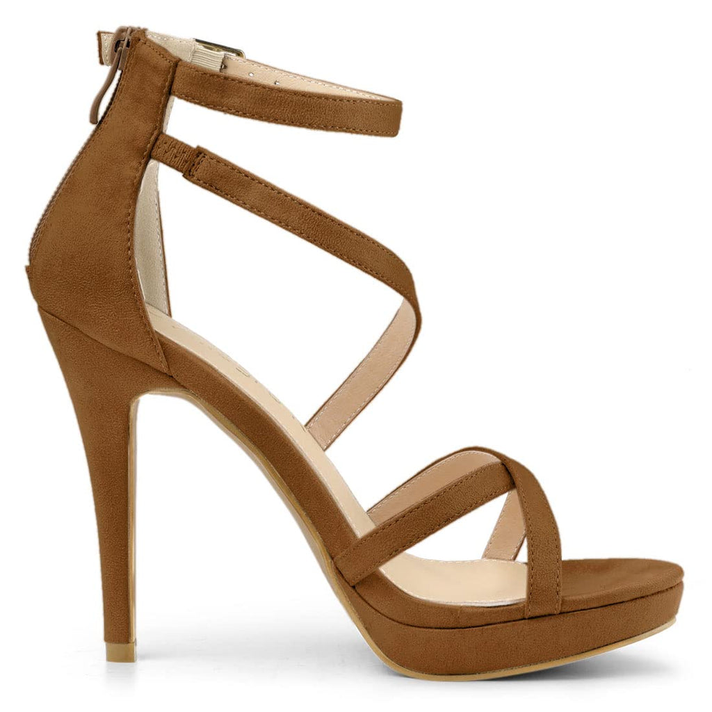 Allegra K Women's Stiletto Heel Zipper Platform Ankle Strap Sandals