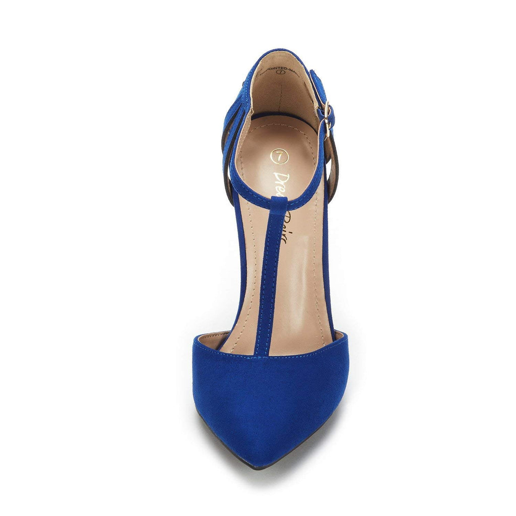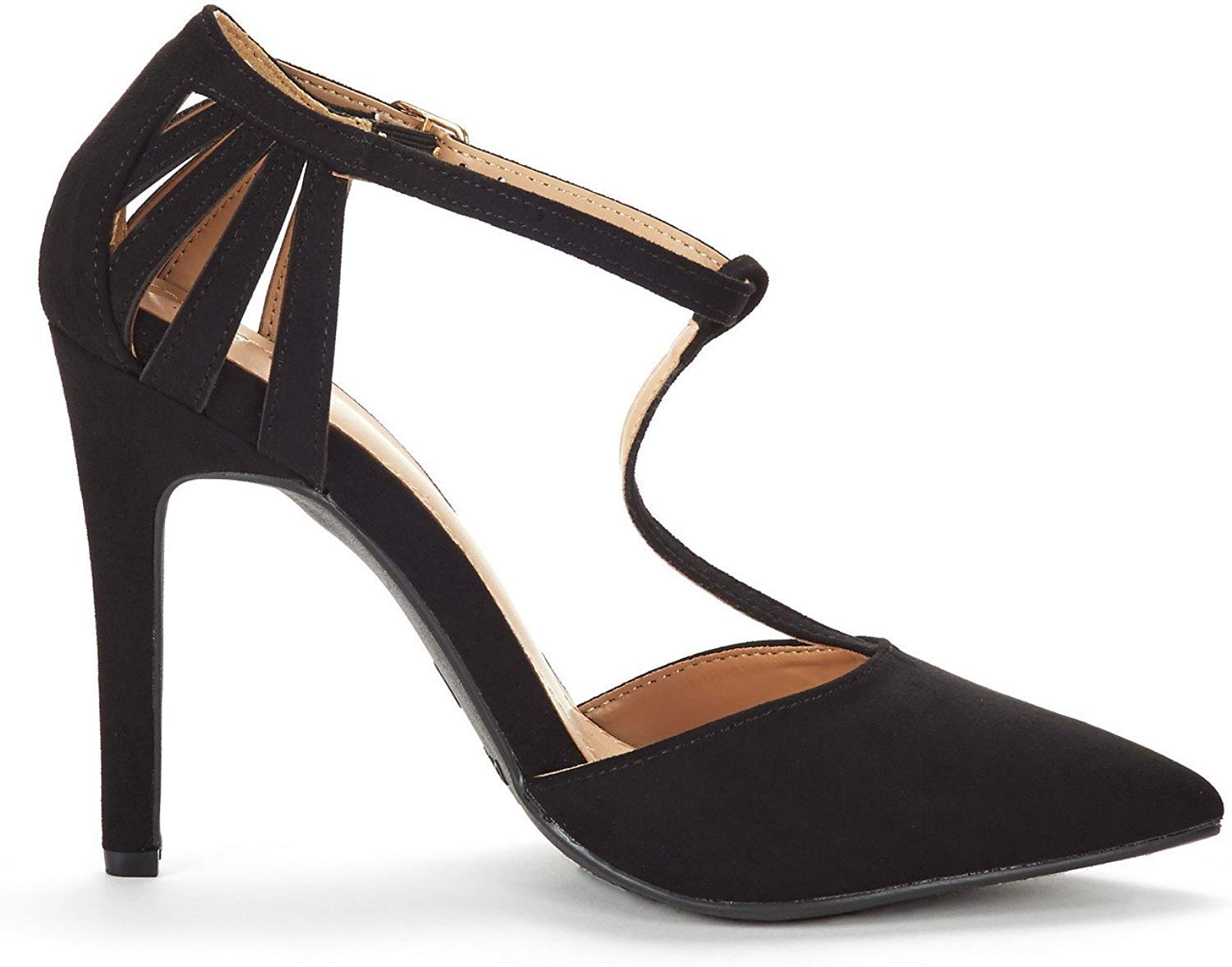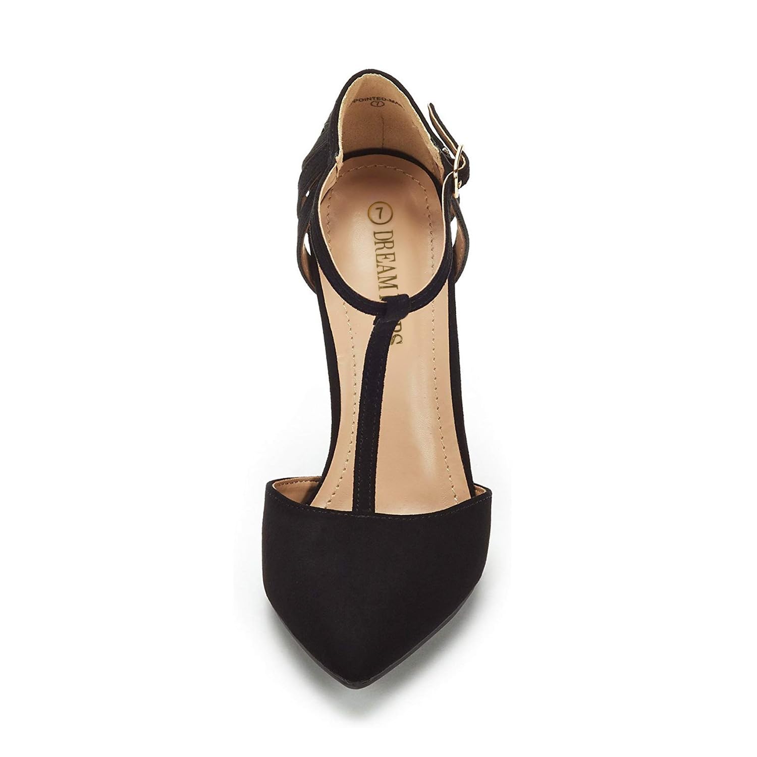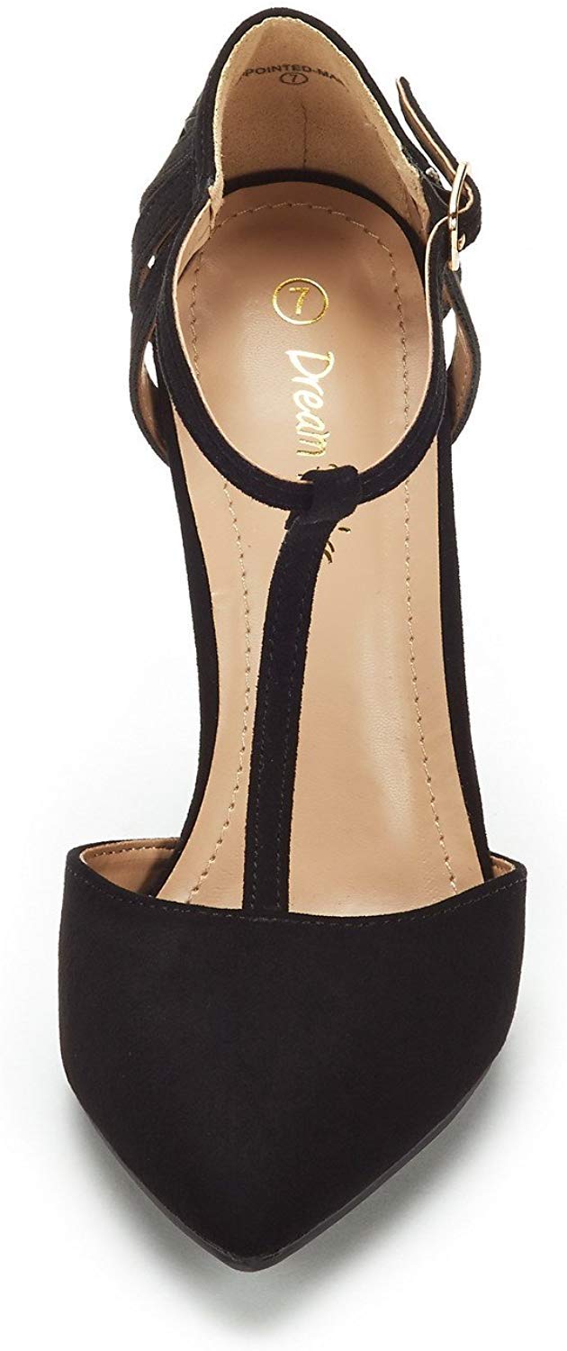 DREAM PAIRS Women's Stiletto High Heels T-Strap Pointed Toe Dress Court Shoes Oppointed_Mary,Size 5,Black/Nubuck,Oppointed_Mary