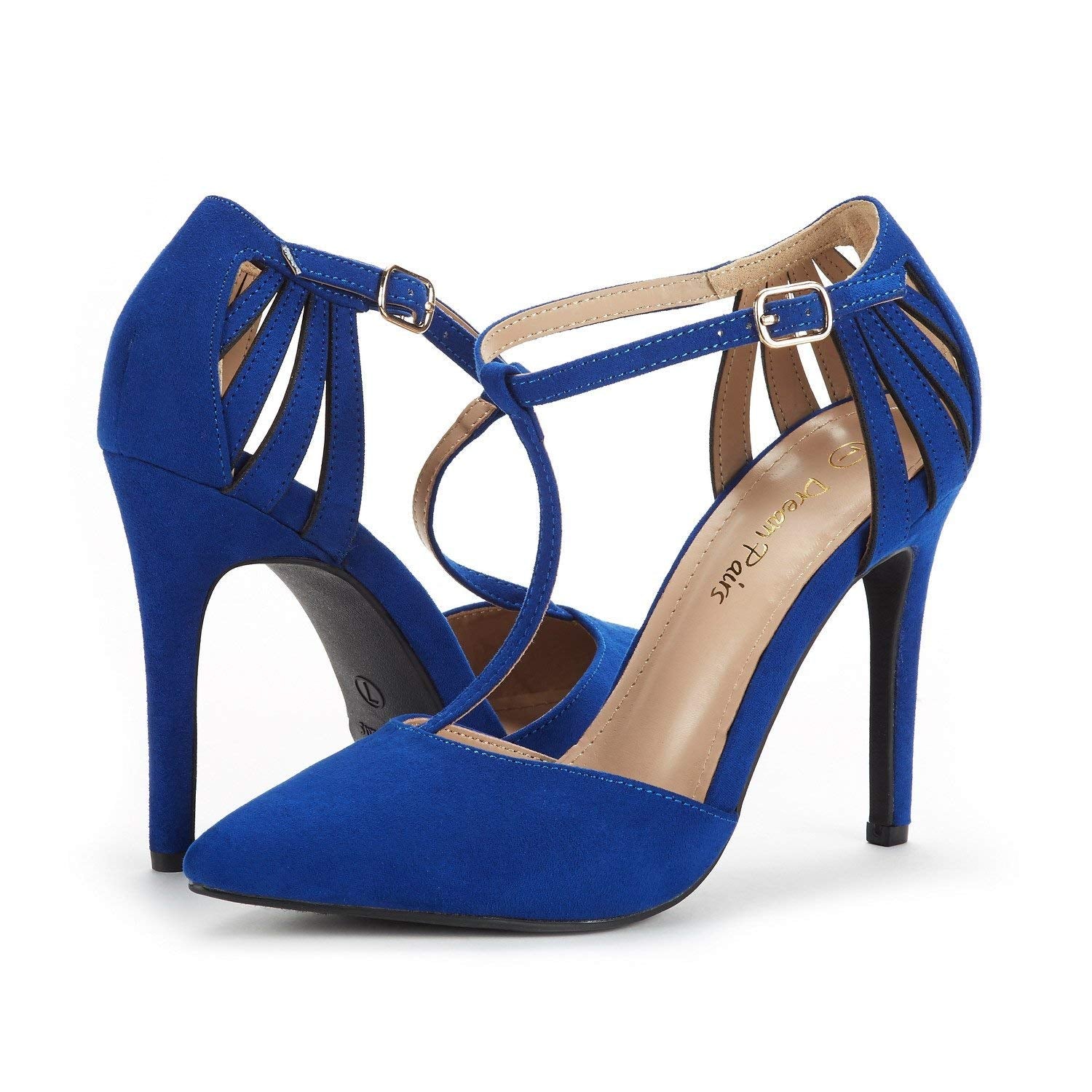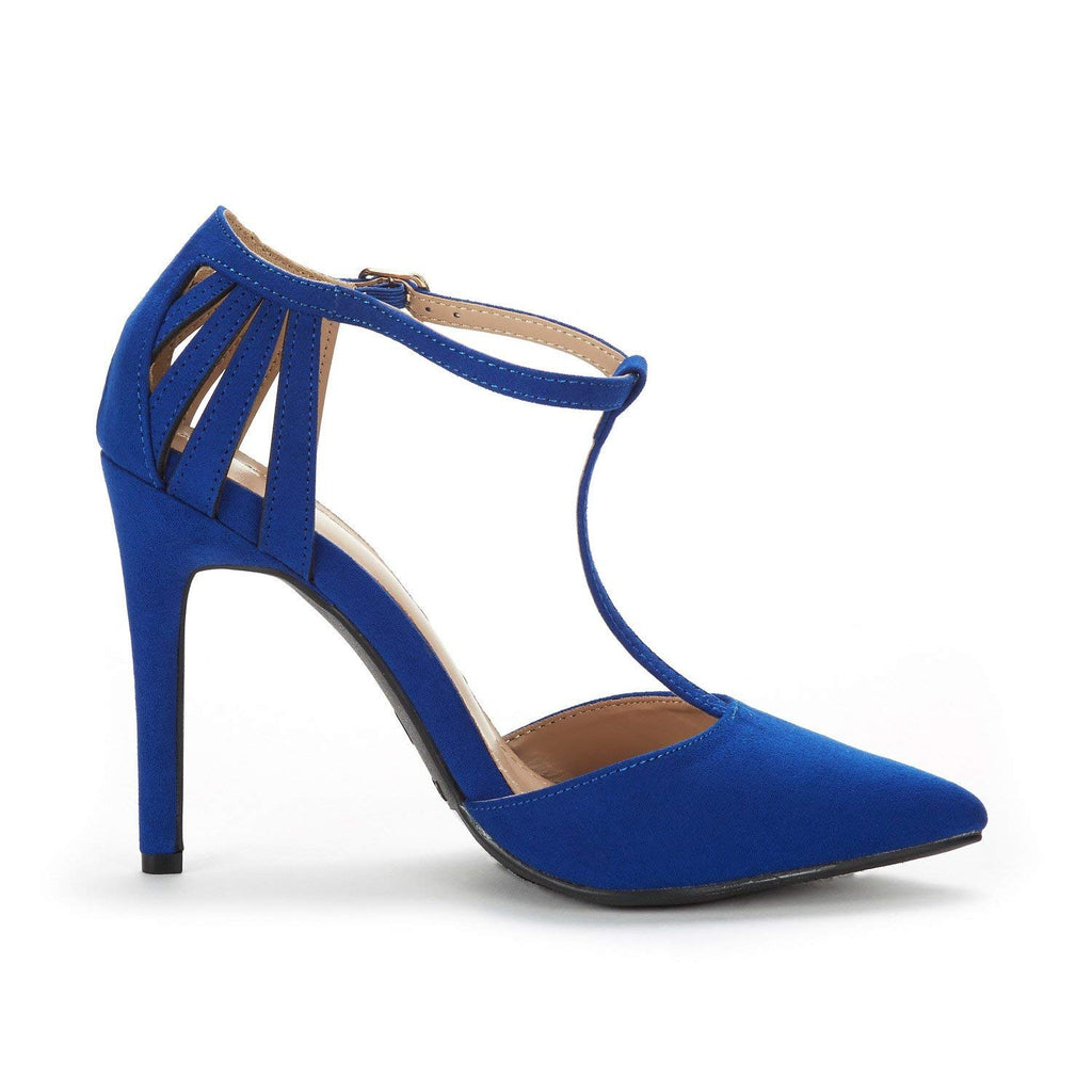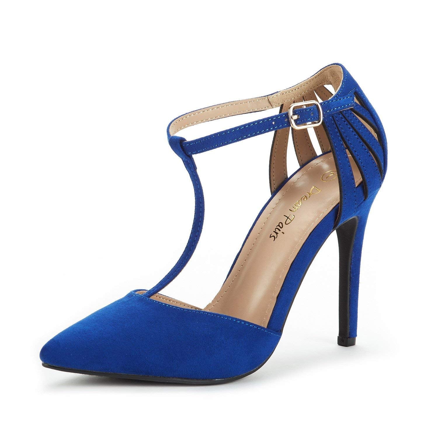 DREAM PAIRS Women's Stiletto High Heels T-Strap Pointed Toe Dress Court Shoes Oppointed_Mary,Size 5,Black/Nubuck,Oppointed_Mary