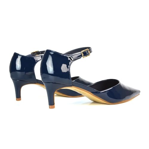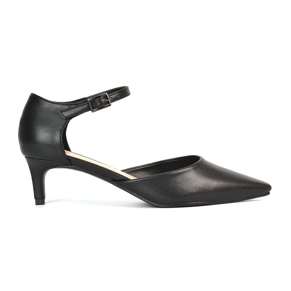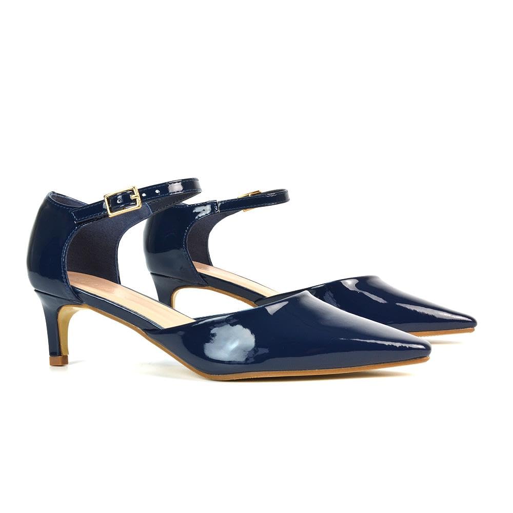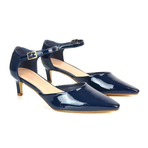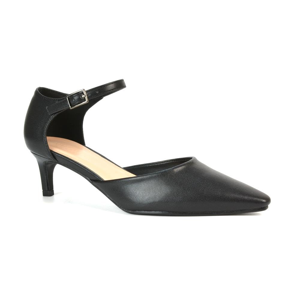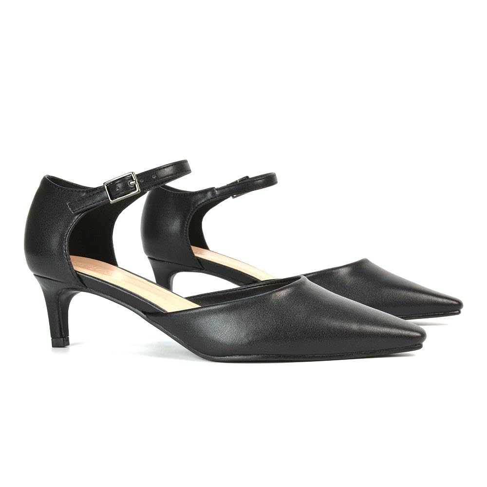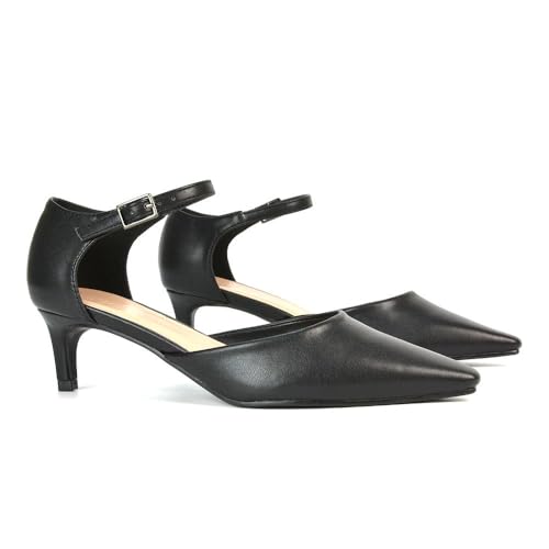 - Step into elegance with these classic low kitten heel court shoes. Featuring a sleek pointed toe, adjustable ankle strap, and a comfortable 2 inch...