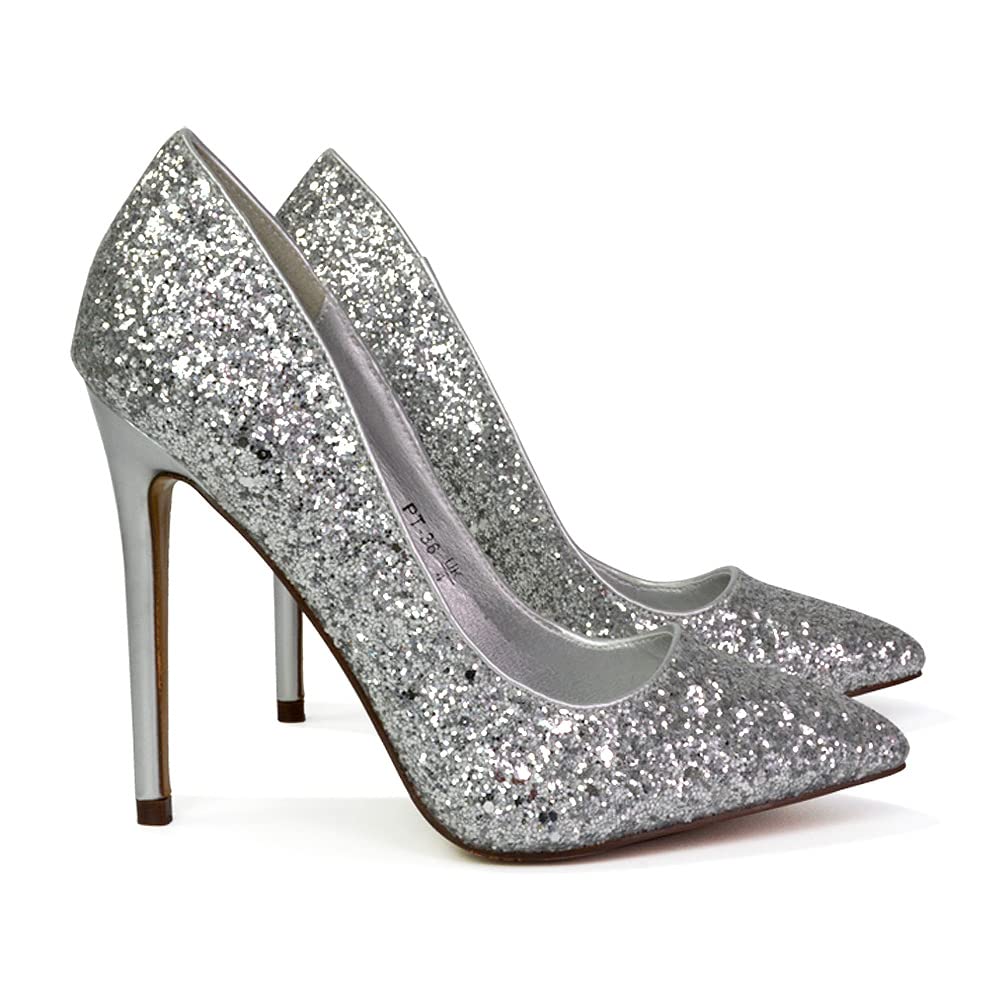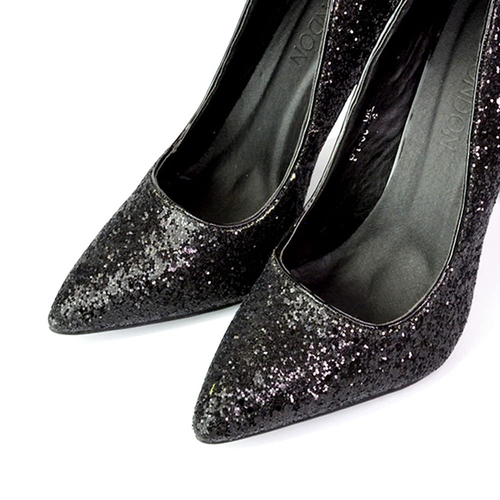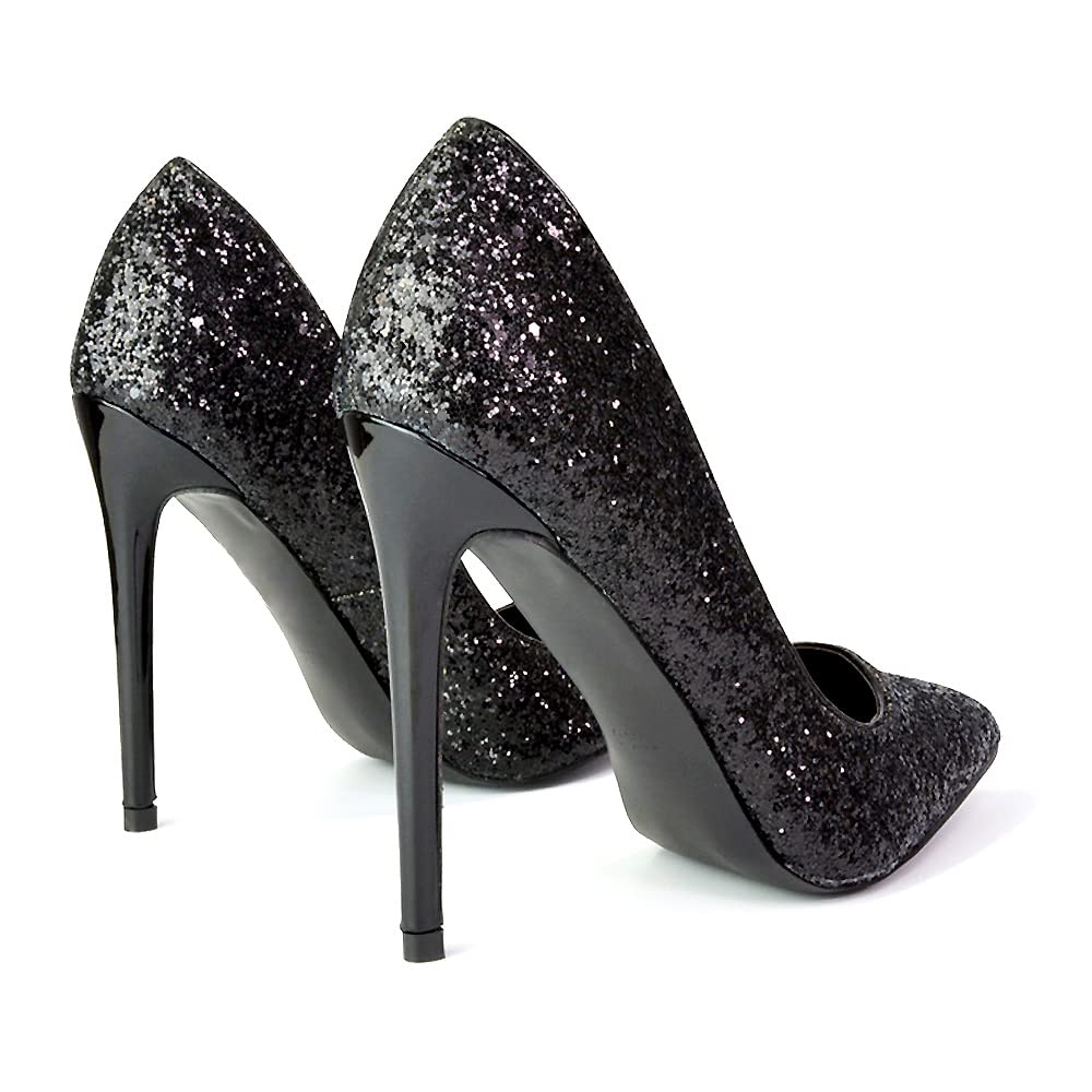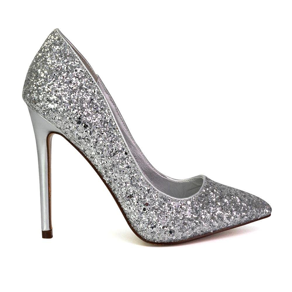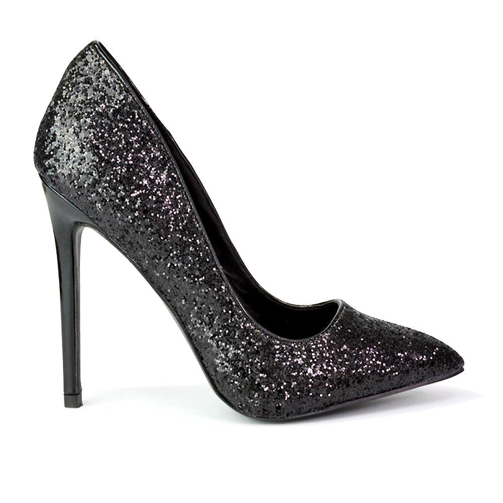 Womens Glitter Stiletto Heel Pointed Toe Ladies Sparkly Party Court Shoes