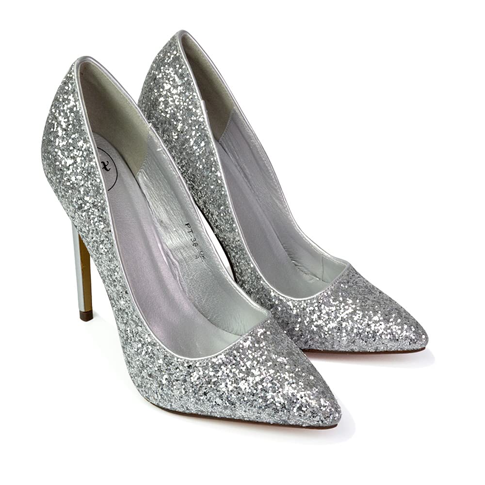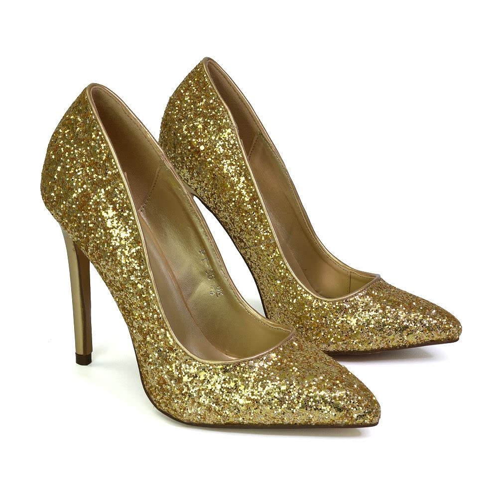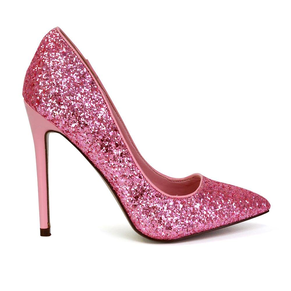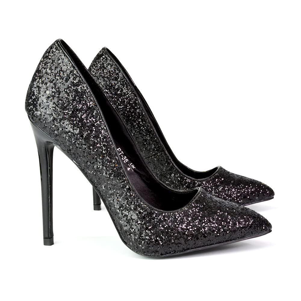 Womens Glitter Stiletto Heel Pointed Toe Ladies Sparkly Party Court Shoes