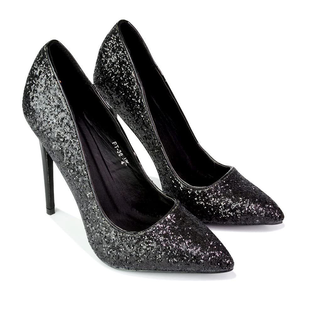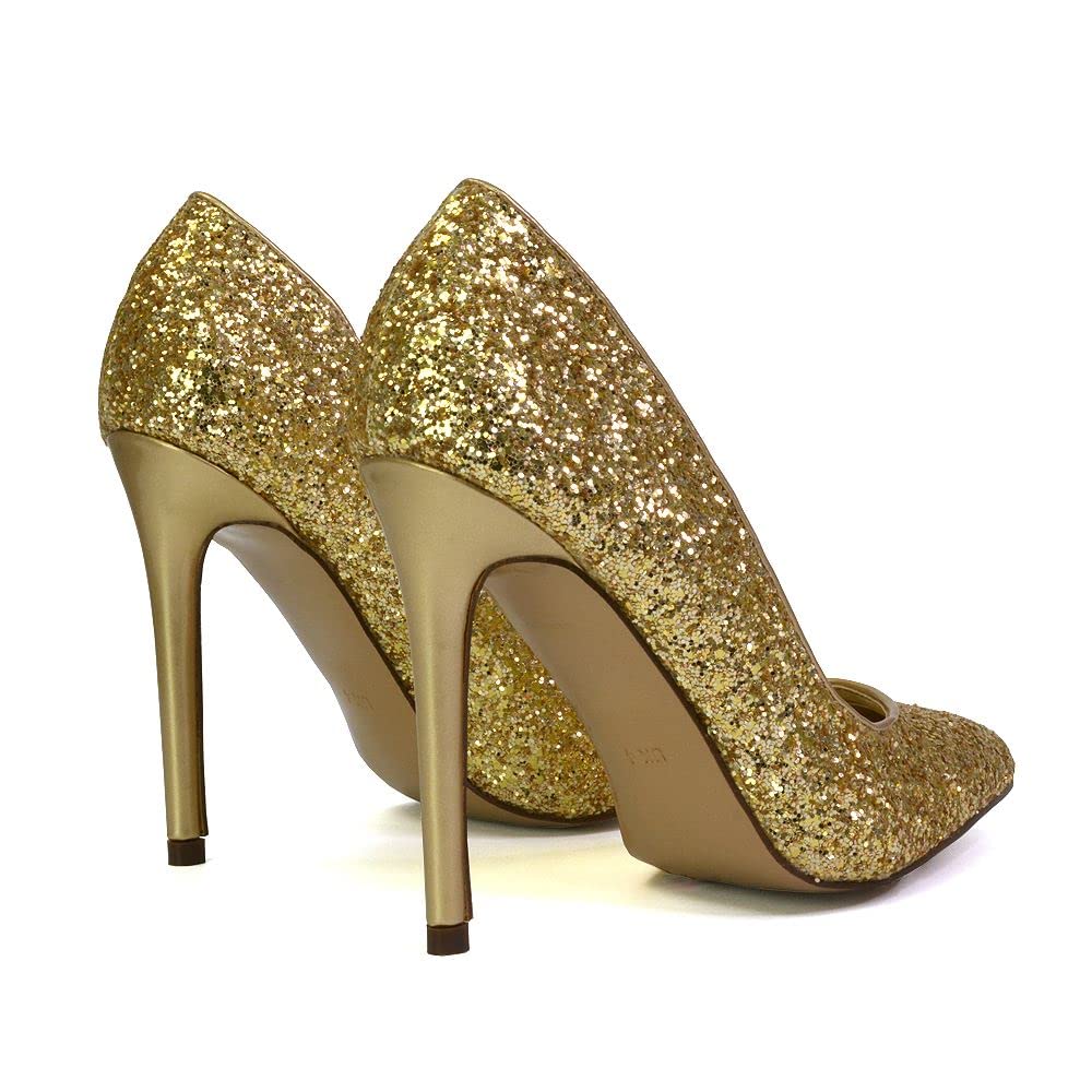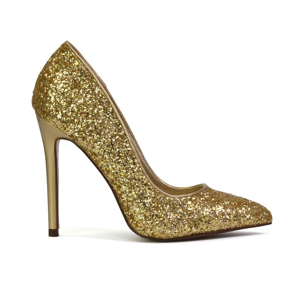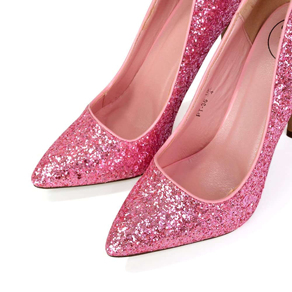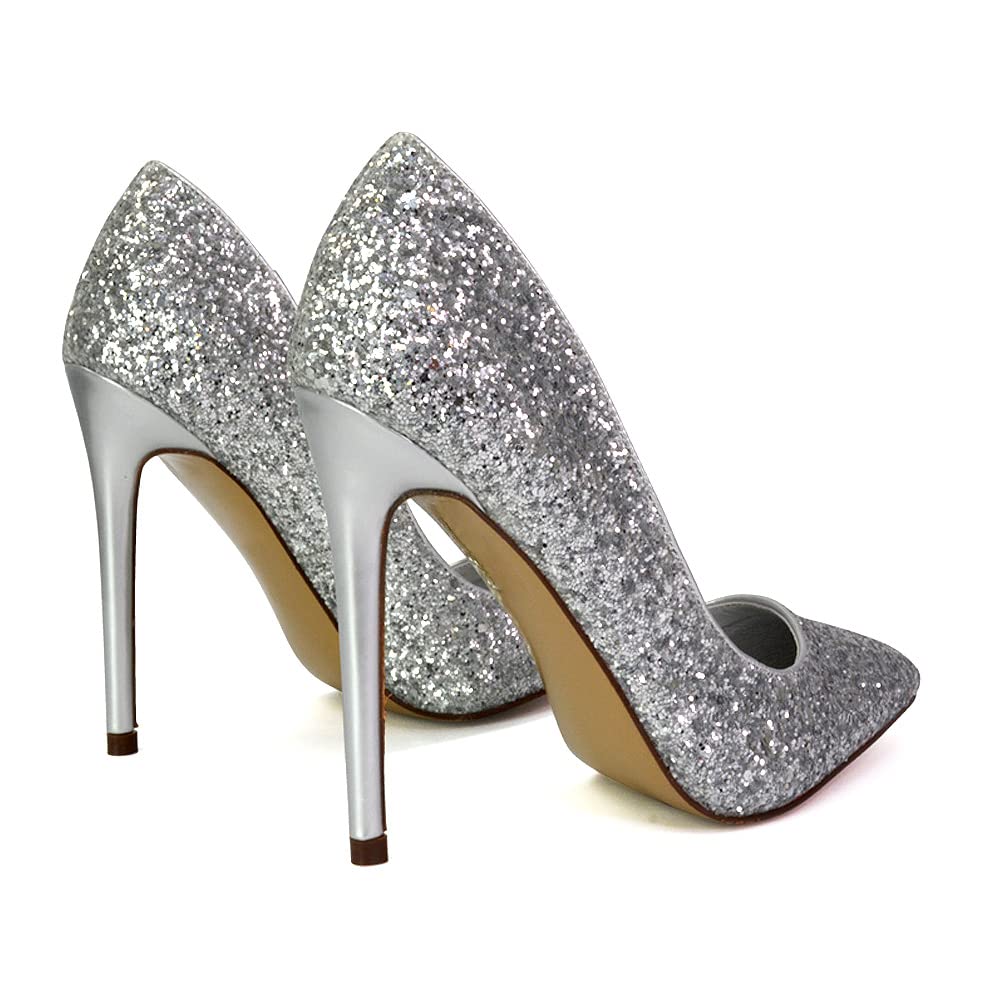 Womens Glitter Stiletto Heel Pointed Toe Ladies Sparkly Party Court Shoes