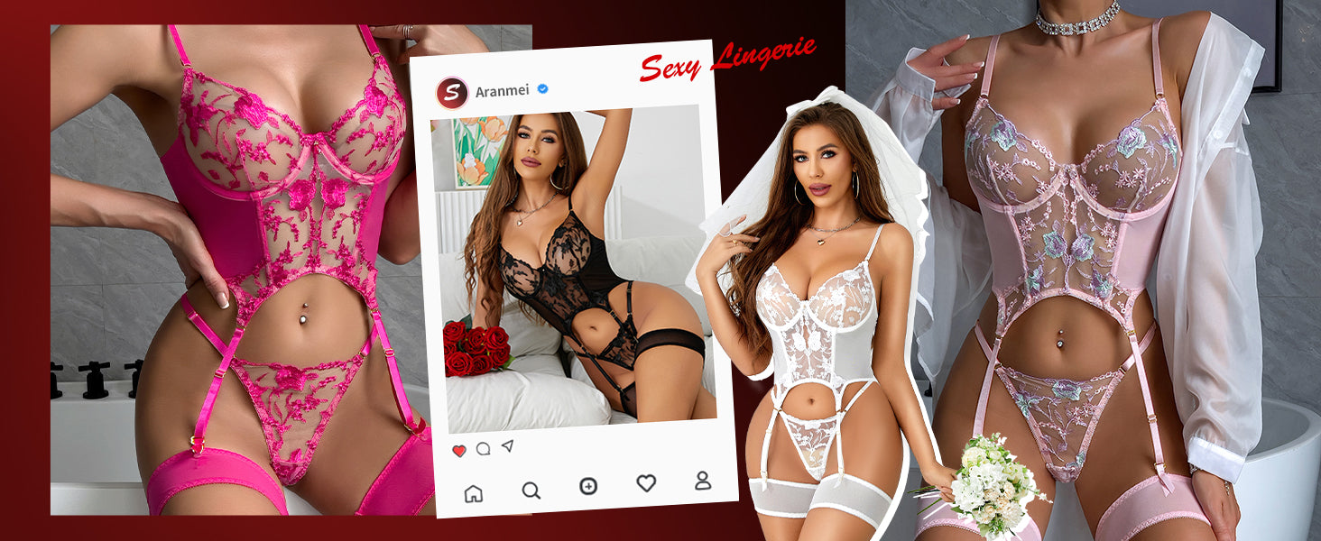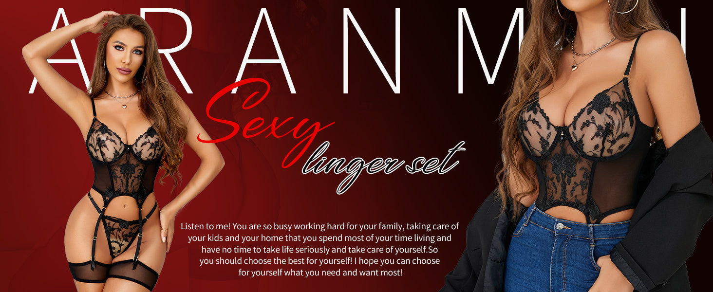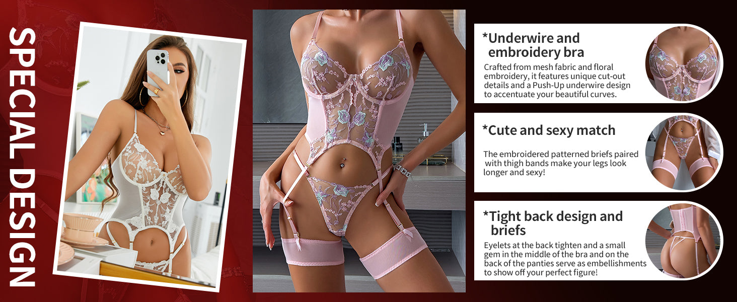 [ PACKAGING ] Choose it and you will get: 1x Sexy Bodysuit Lingerie. 1x Embroidery Panty. 2x Thigh Bands. Make a choice for yourself! Make a change! Show off your perfect body!