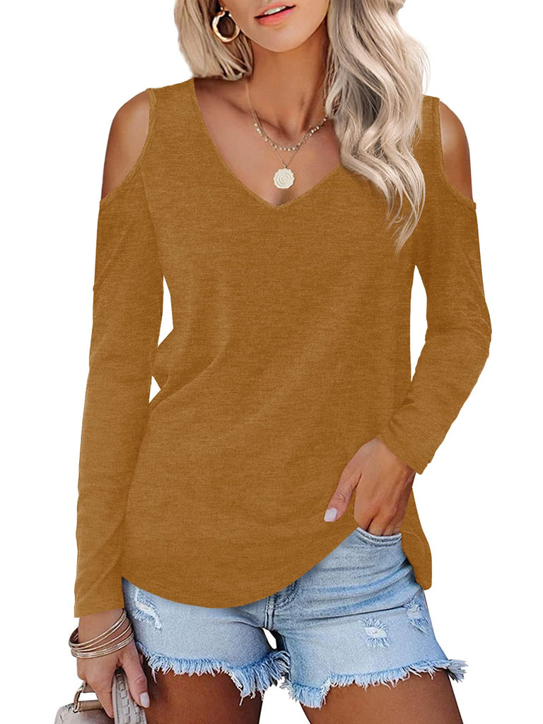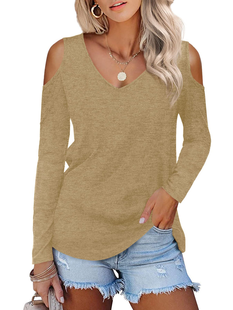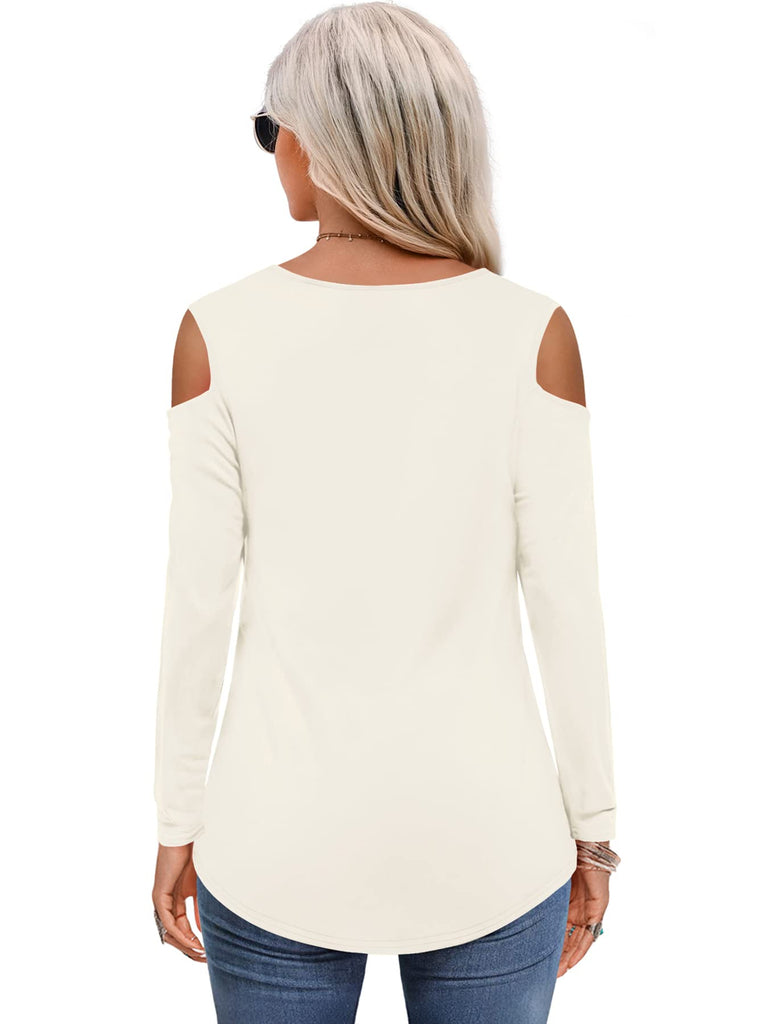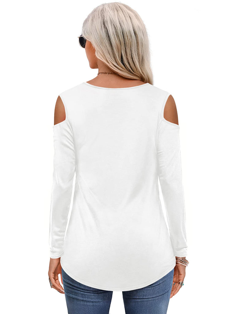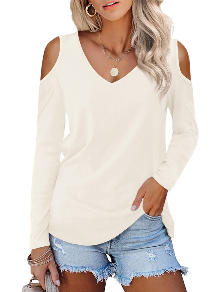 Womens Tops Open Shoulder V Neck T-Shirt Long Sleeved Tee Shirts White Size 16 18